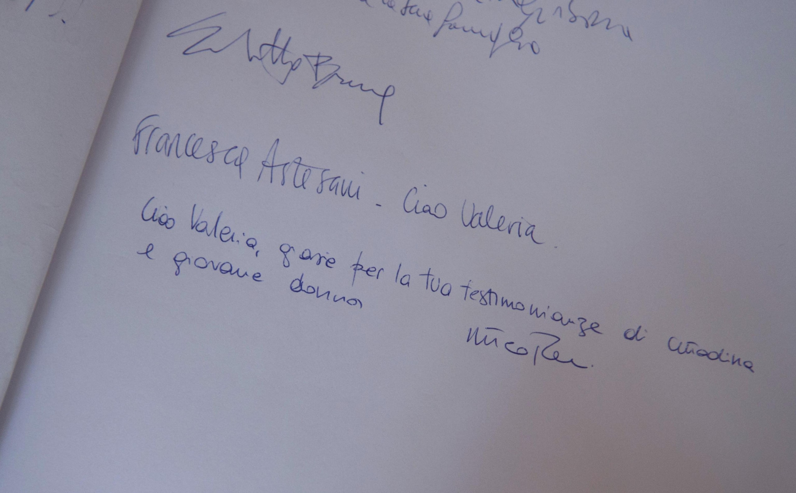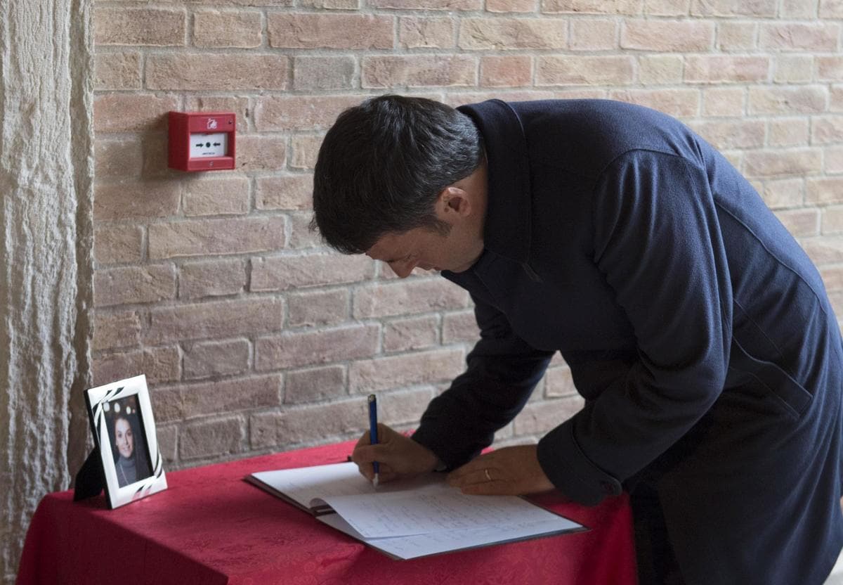 «Ciao Valeria, grazie per la tua testimonianza di cittadina e giovane donna». È la frase che il presidente del Consiglio, Matteo Renzi, ha voluto lasciare nel libro degli ospiti all'ingresso della camera ardente della giovane ricercatrice morta negli attentati di Parigi