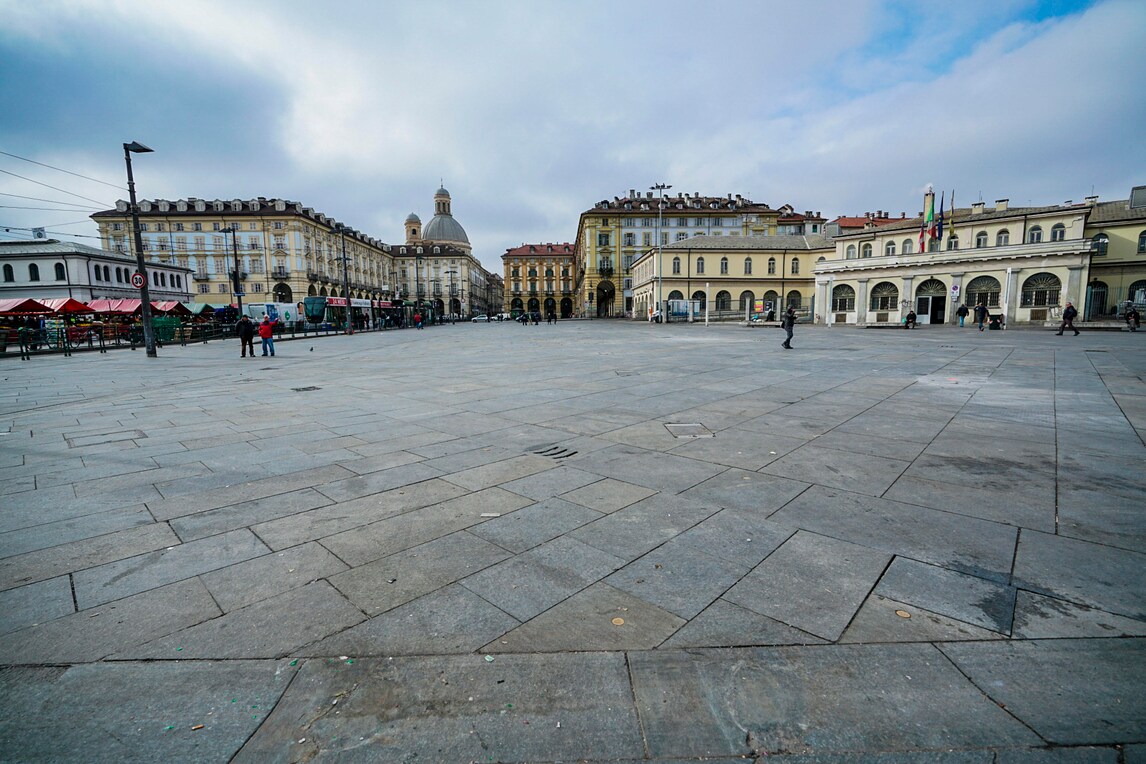 Nel capoluogo piemontese strade deserte e mercati vuoti. Clima spettrale, ma necessario