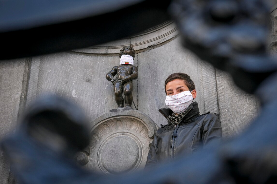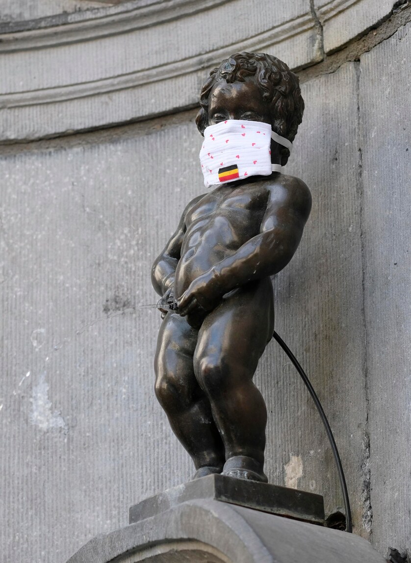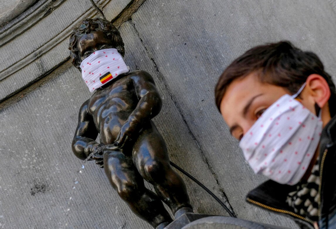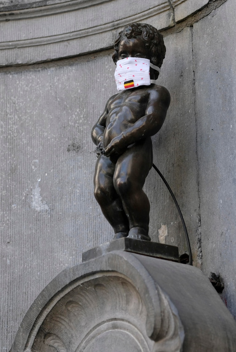 Bruxelles, anche il Manneken-Pis con la mascherina