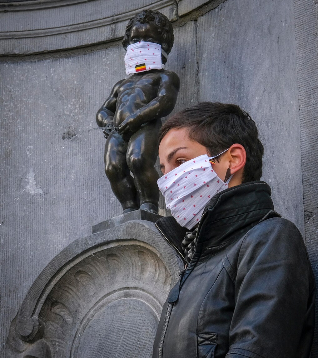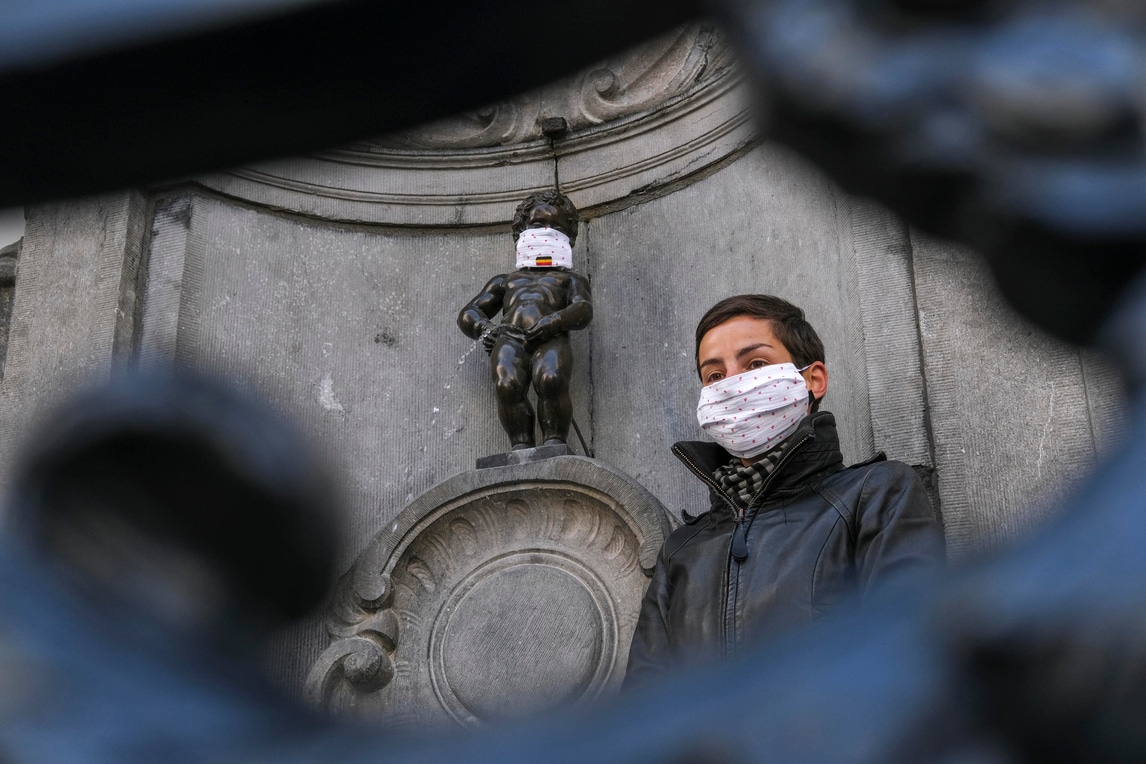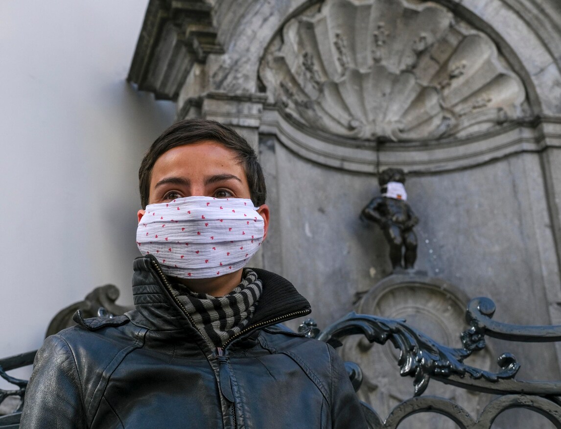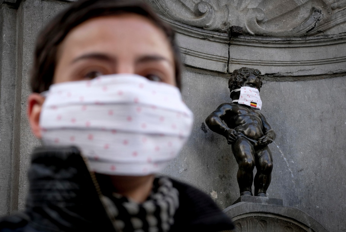 Bruxelles, anche il Manneken-Pis con la mascherina
