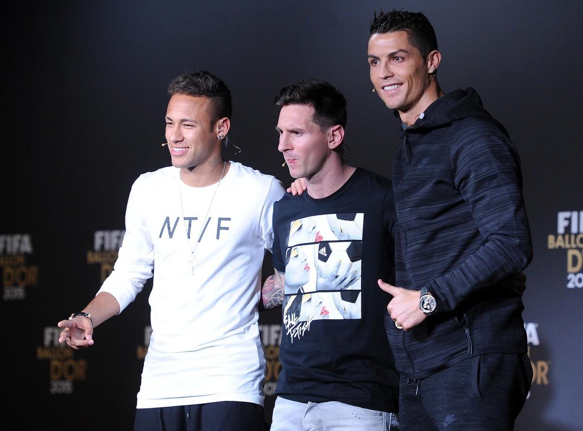 Messi, Ronaldo e Neymar sul palco insieme prima della cerimonia di premiazione