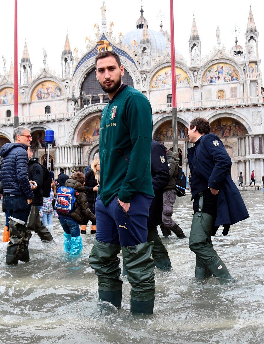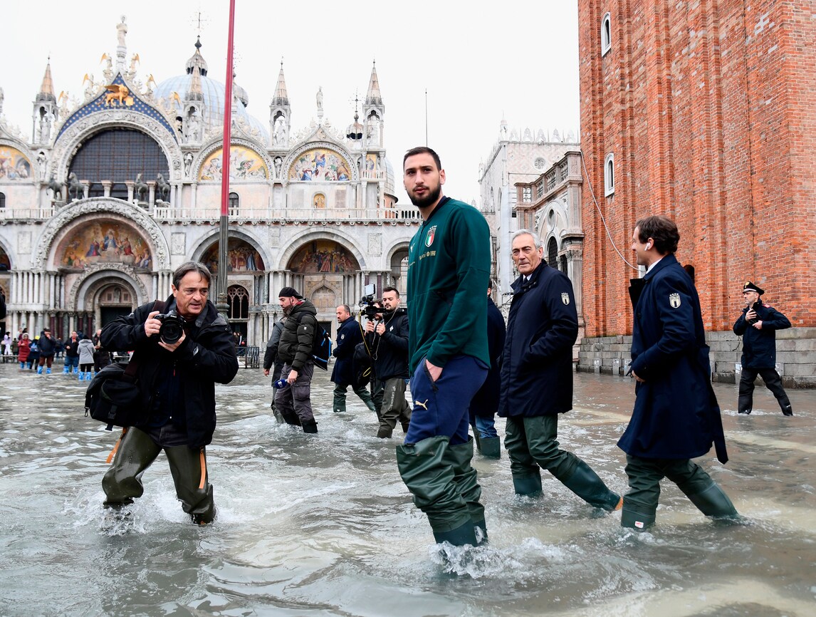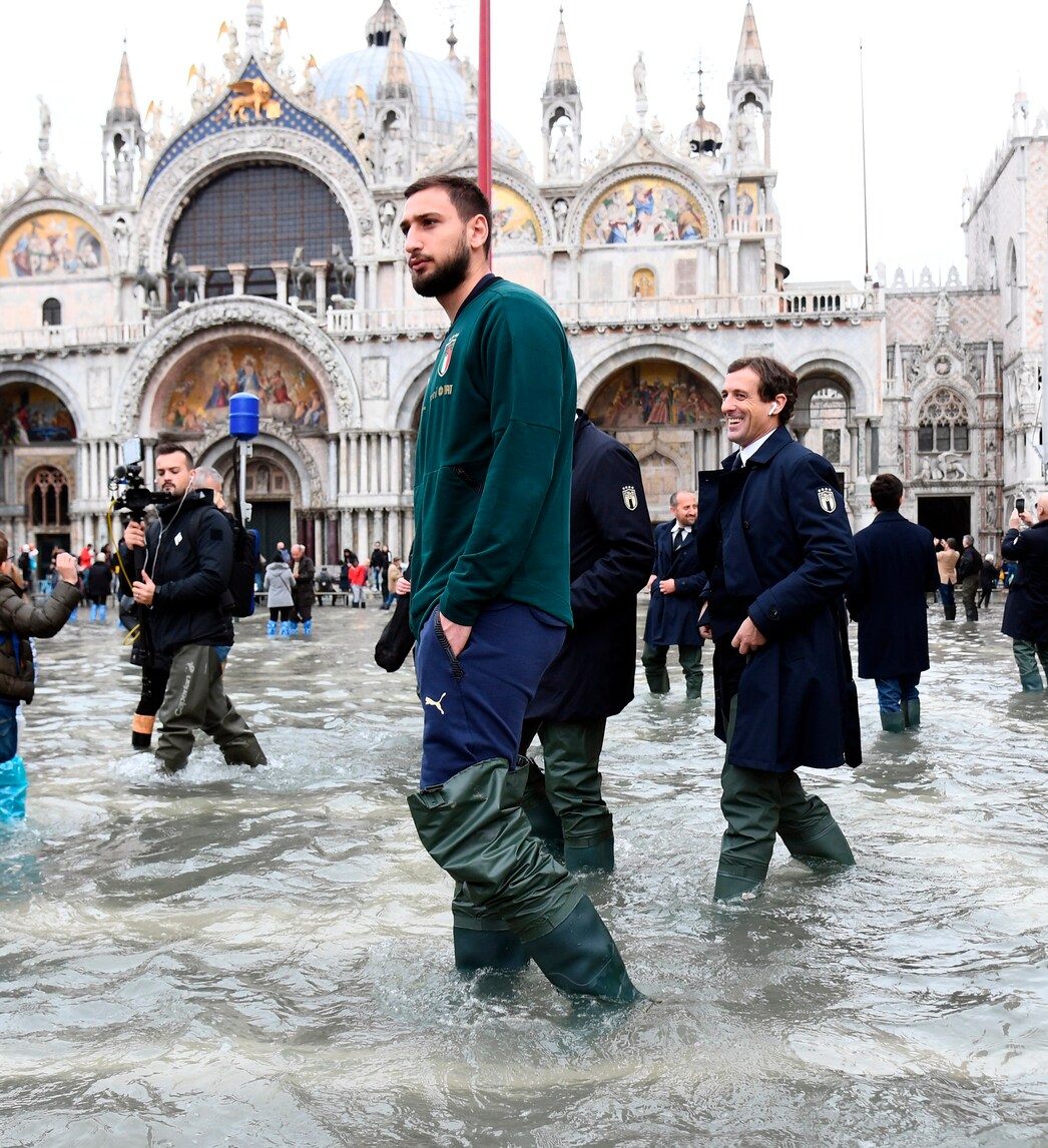 Vialli e Donnarumma nell'acqua alta di Venezia