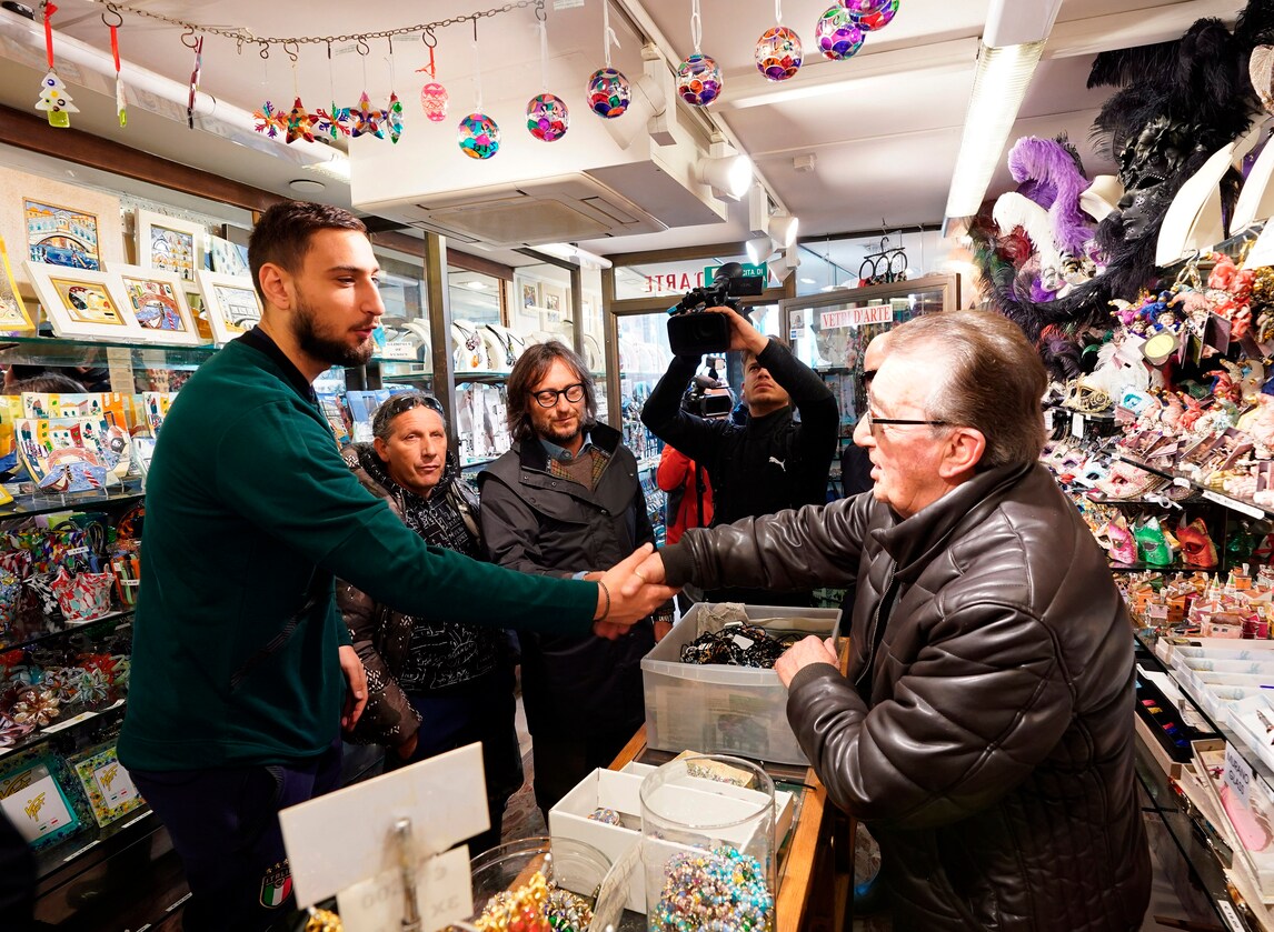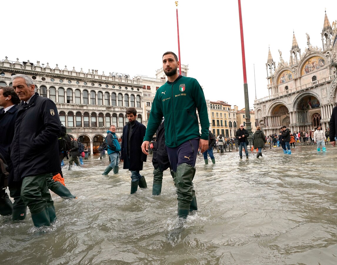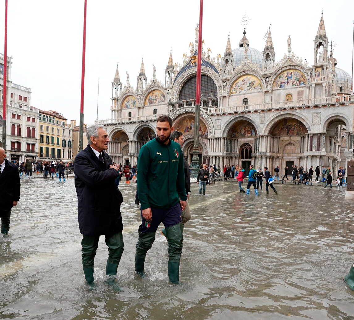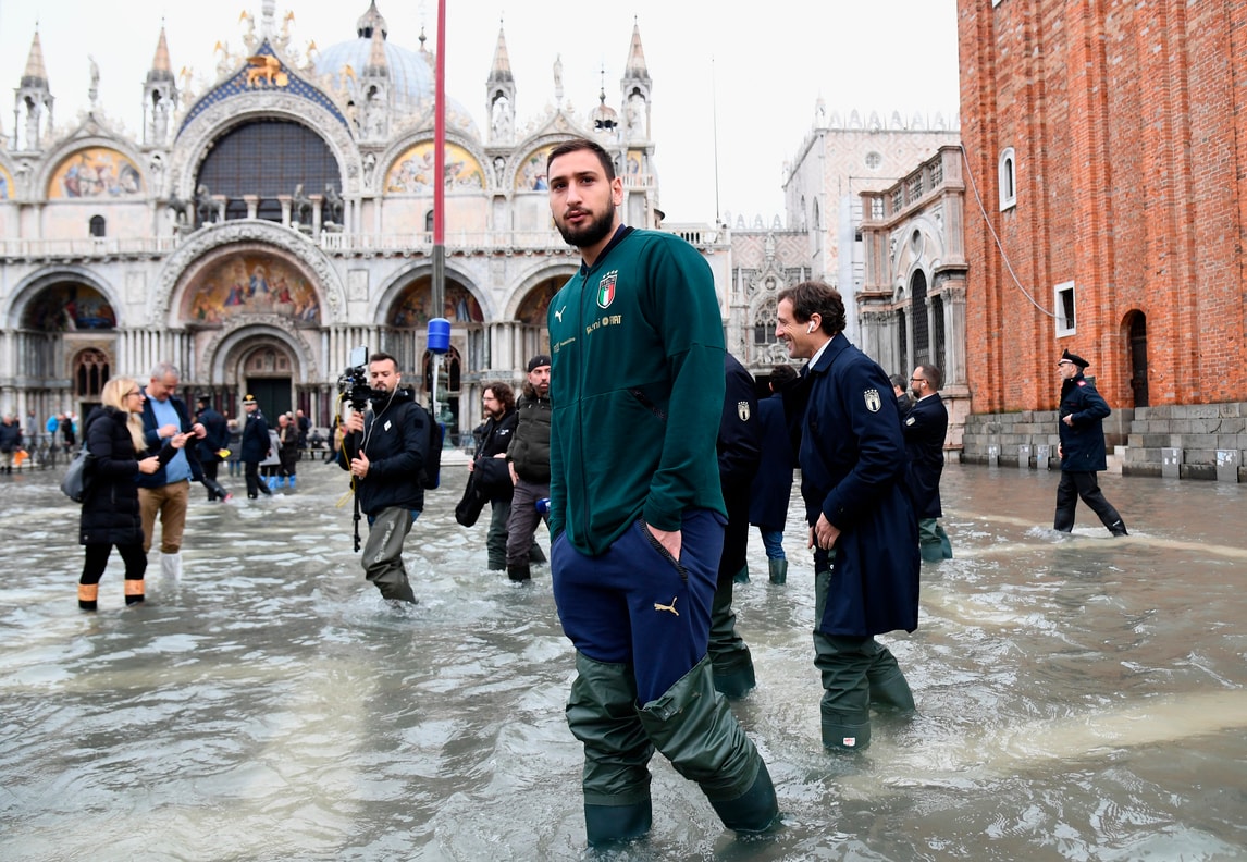 Vialli e Donnarumma nell'acqua alta di Venezia