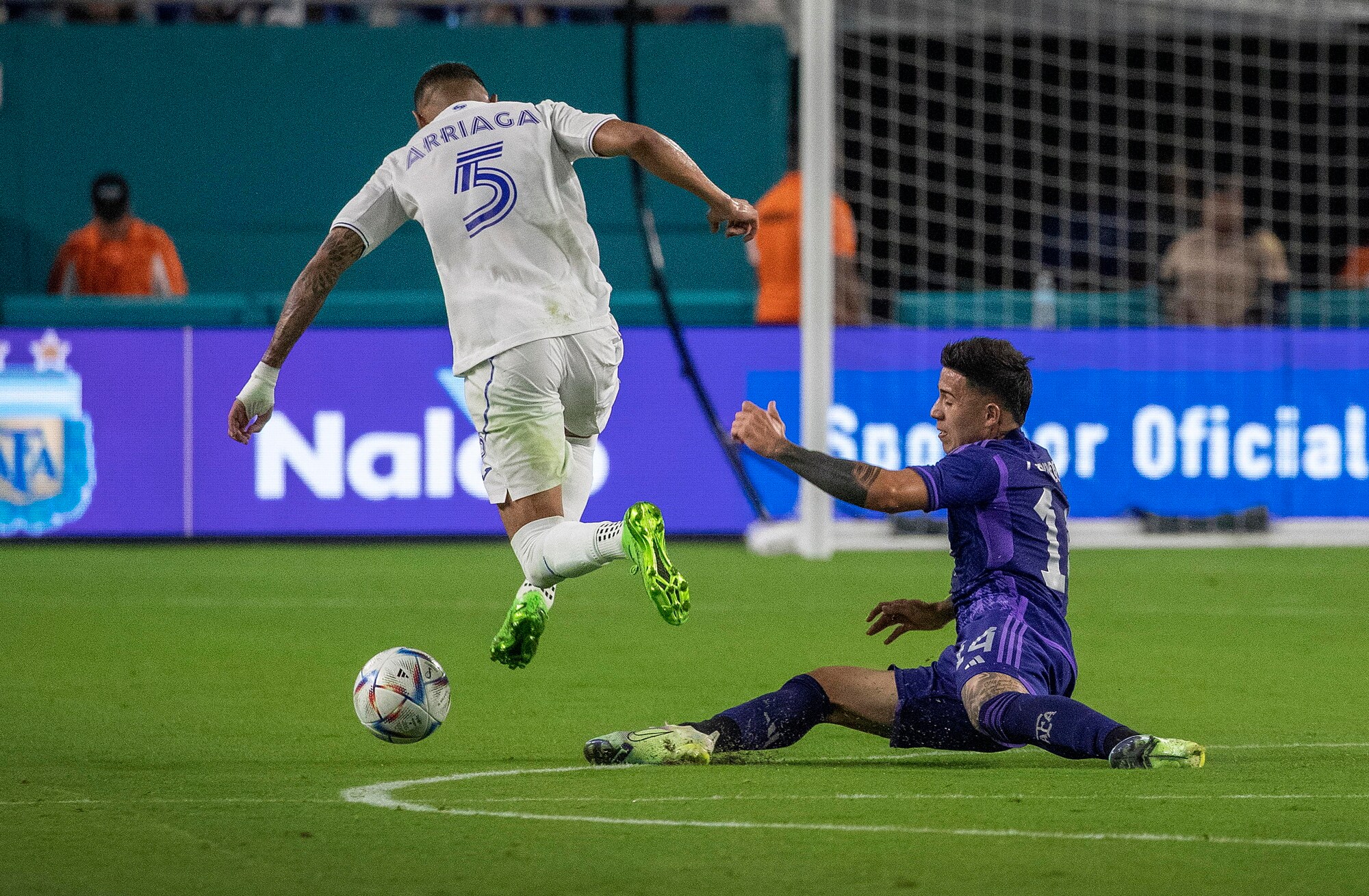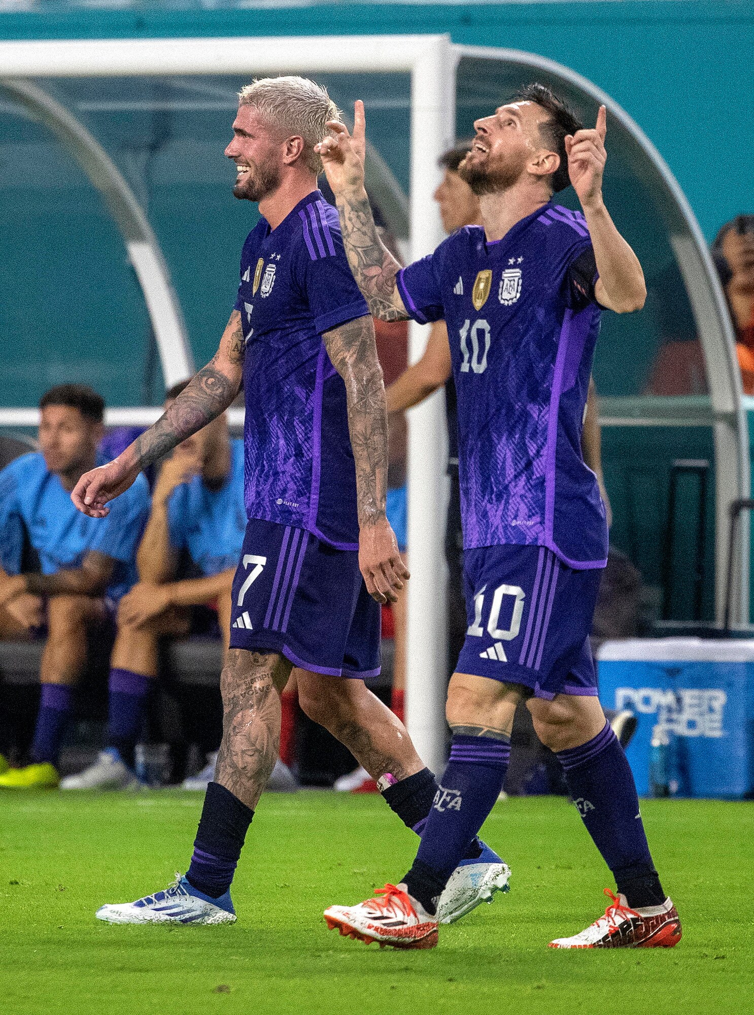 Doppietta per l'attaccante del Paris Saint Germain. In rete anche l'interista, nel 3-0 per gli uomini di Scaloni
