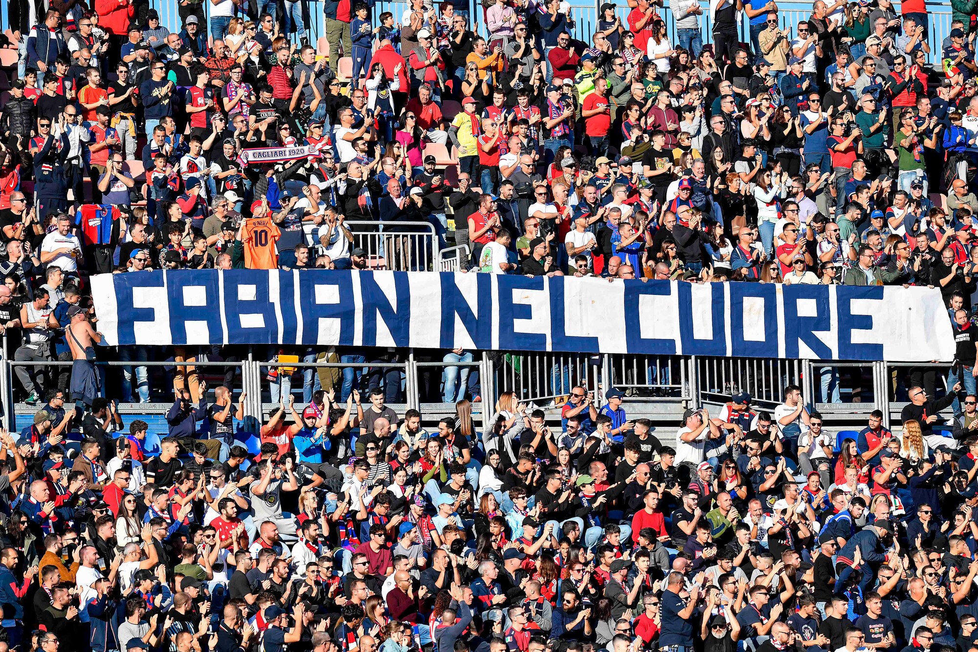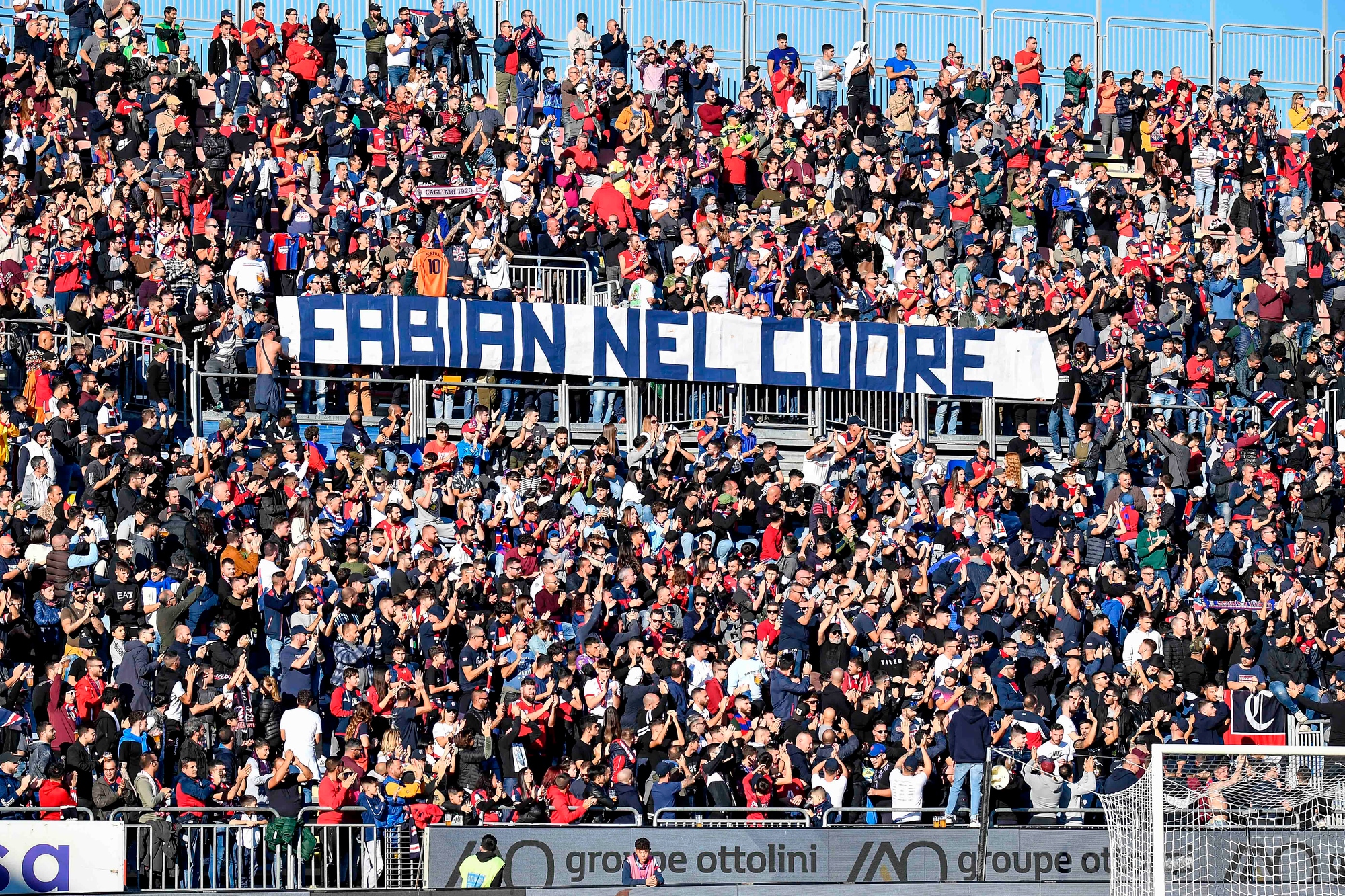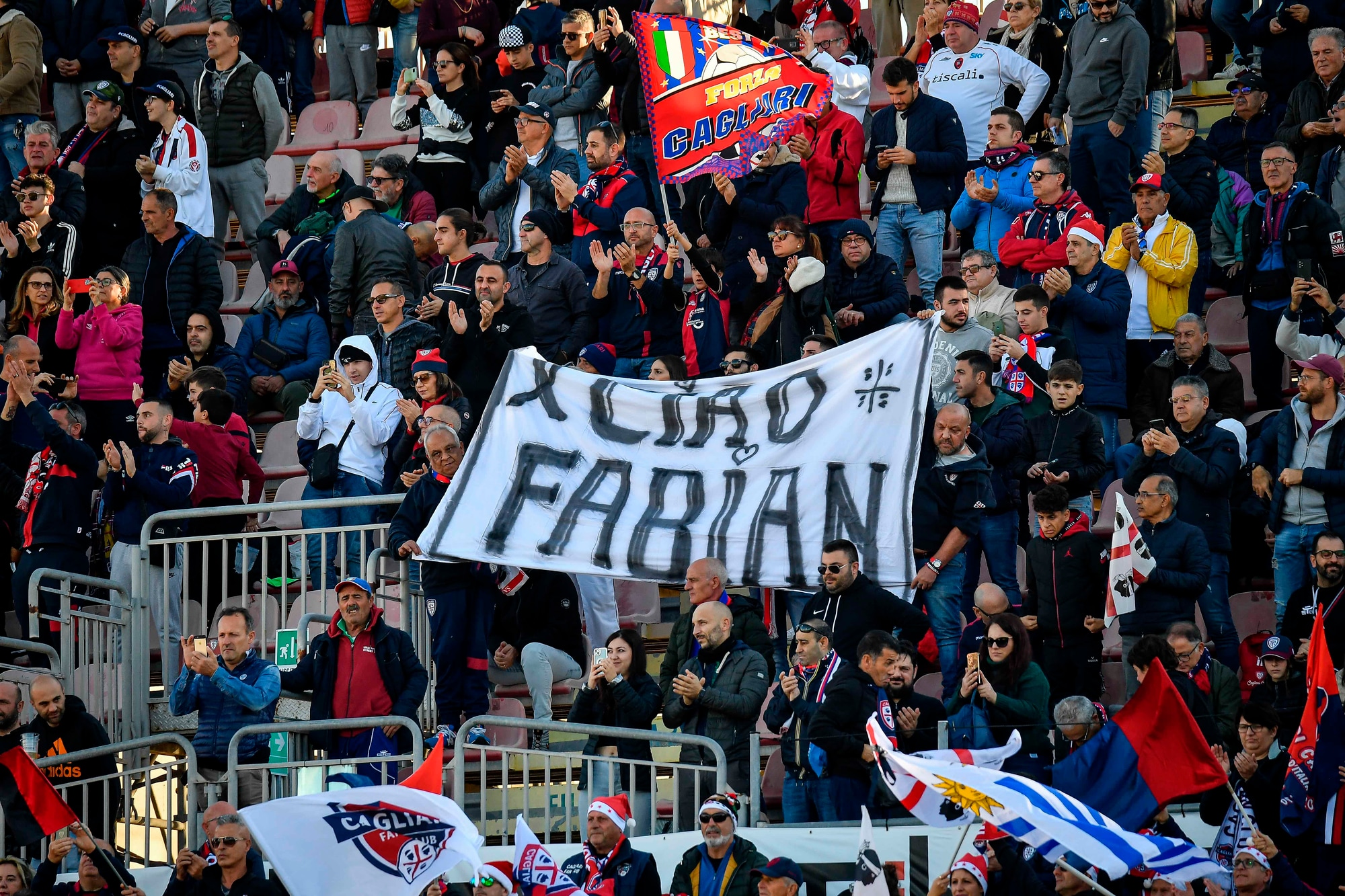 Prima della sfida contro il Cosenza, sugli spalti sono apparsi striscioni e bandiere per l'ex calciatore rossoblu scomparso il giorno di Natale
