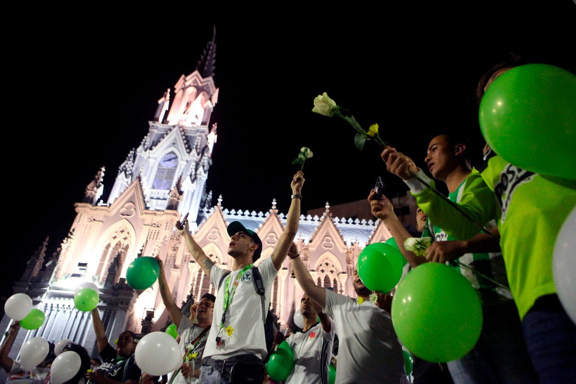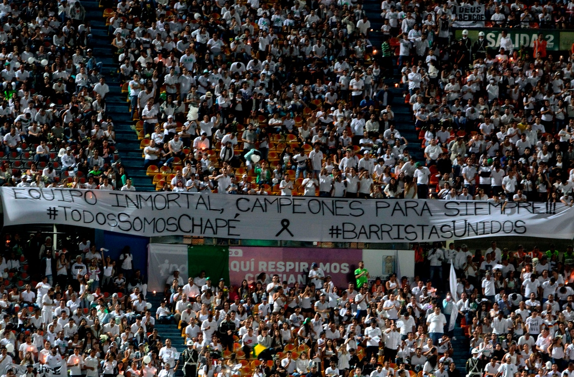 Volano 71 colombe a Medellin, tante quanti i morti della tragedia aerea: ieri si sarebbe dovuta svolgere l'andata della finale di Copa Sudamericana. Oltre 100 mila persone hanno reso omaggio alla squadra brasiliana