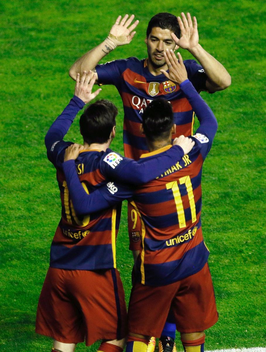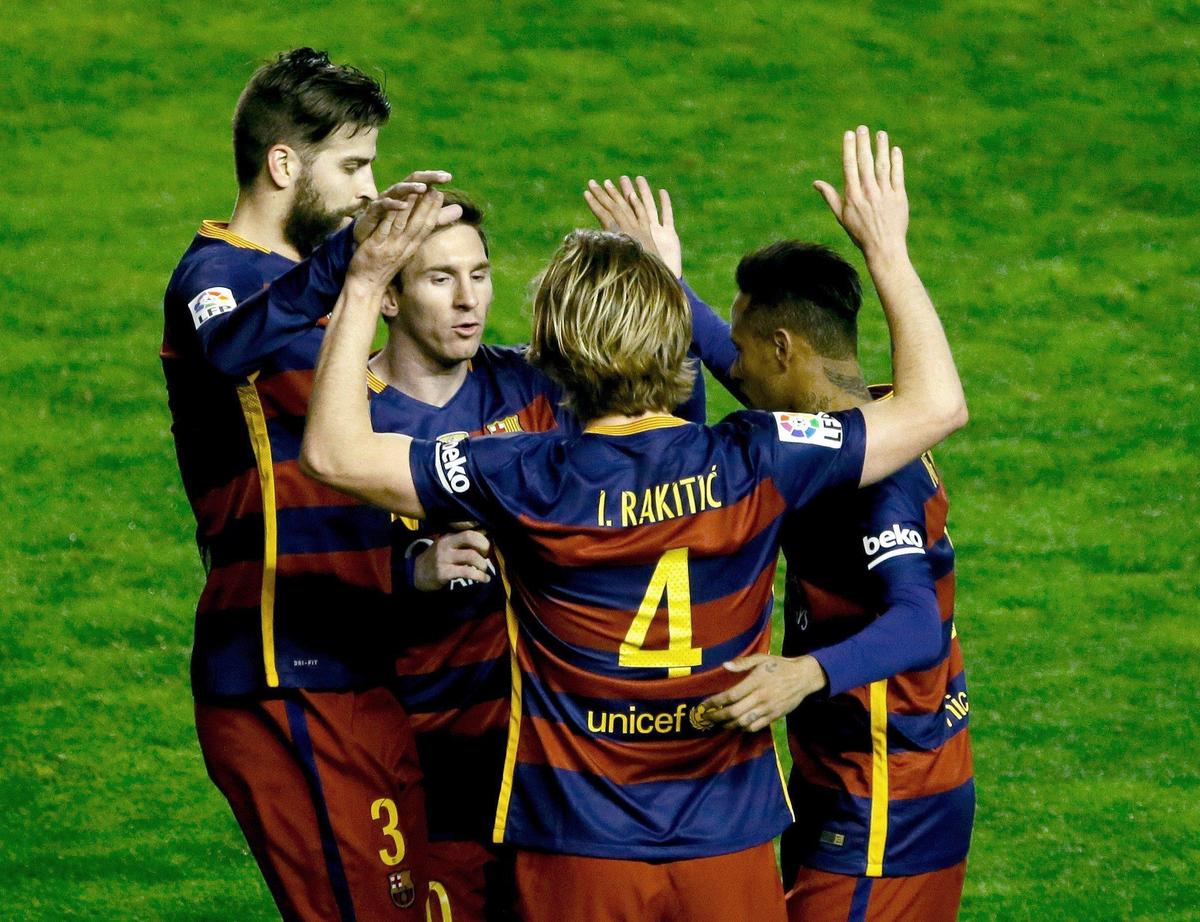 Vittoria in trasferta grazie a tre reti della Pulce, a un gol di Rakitic e a uno di Arda Turan. Suarez sbaglia un rigore. Manucho accorcia le distanze per poco.