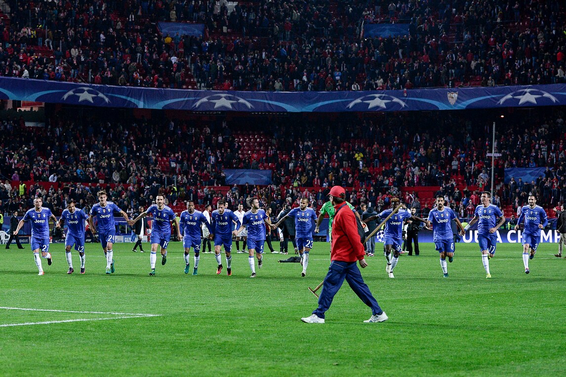 Le immagini più belle dallo stadio Sanchez-Pizjuan dove la squadra di Allegri conquista il passaggio del turno