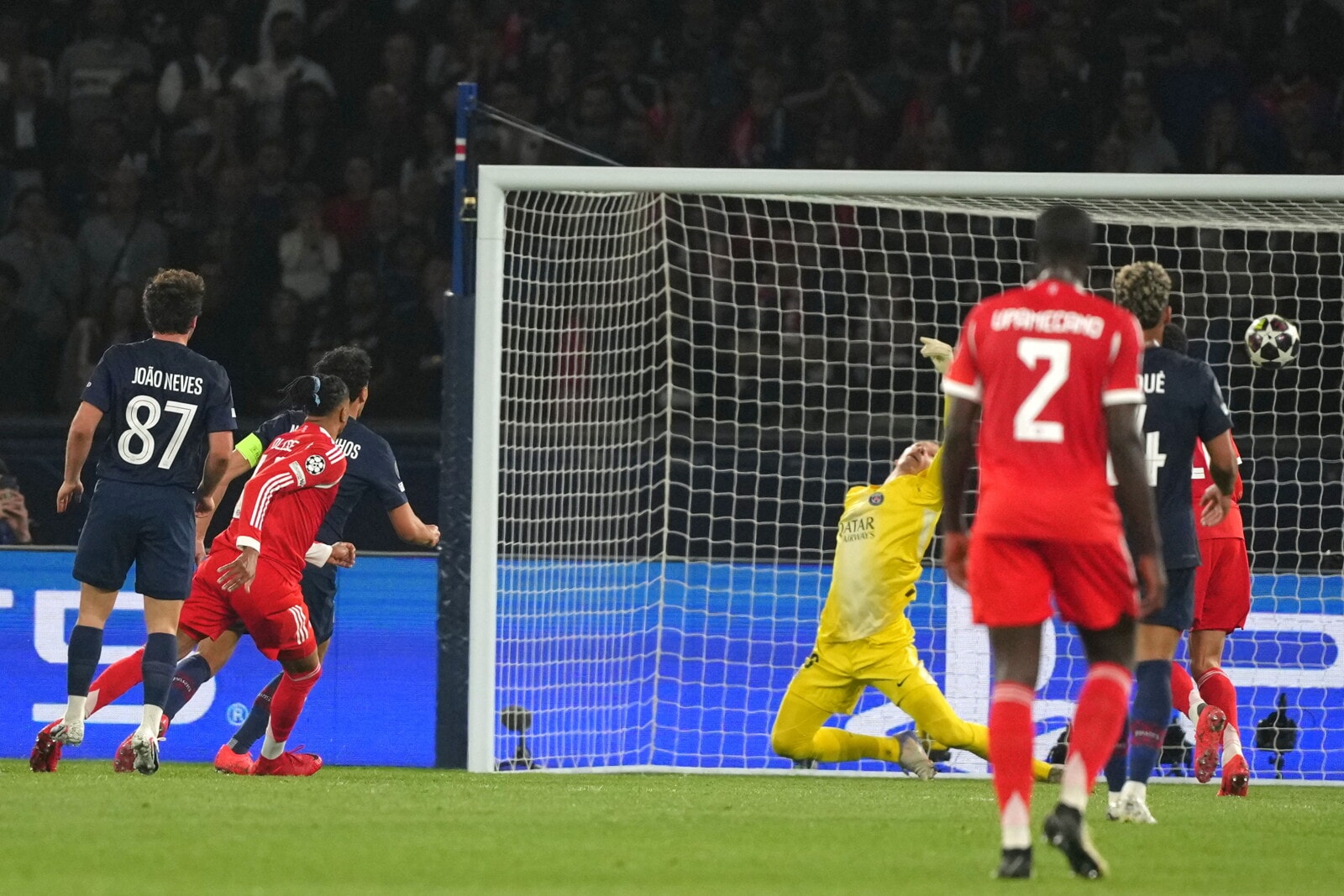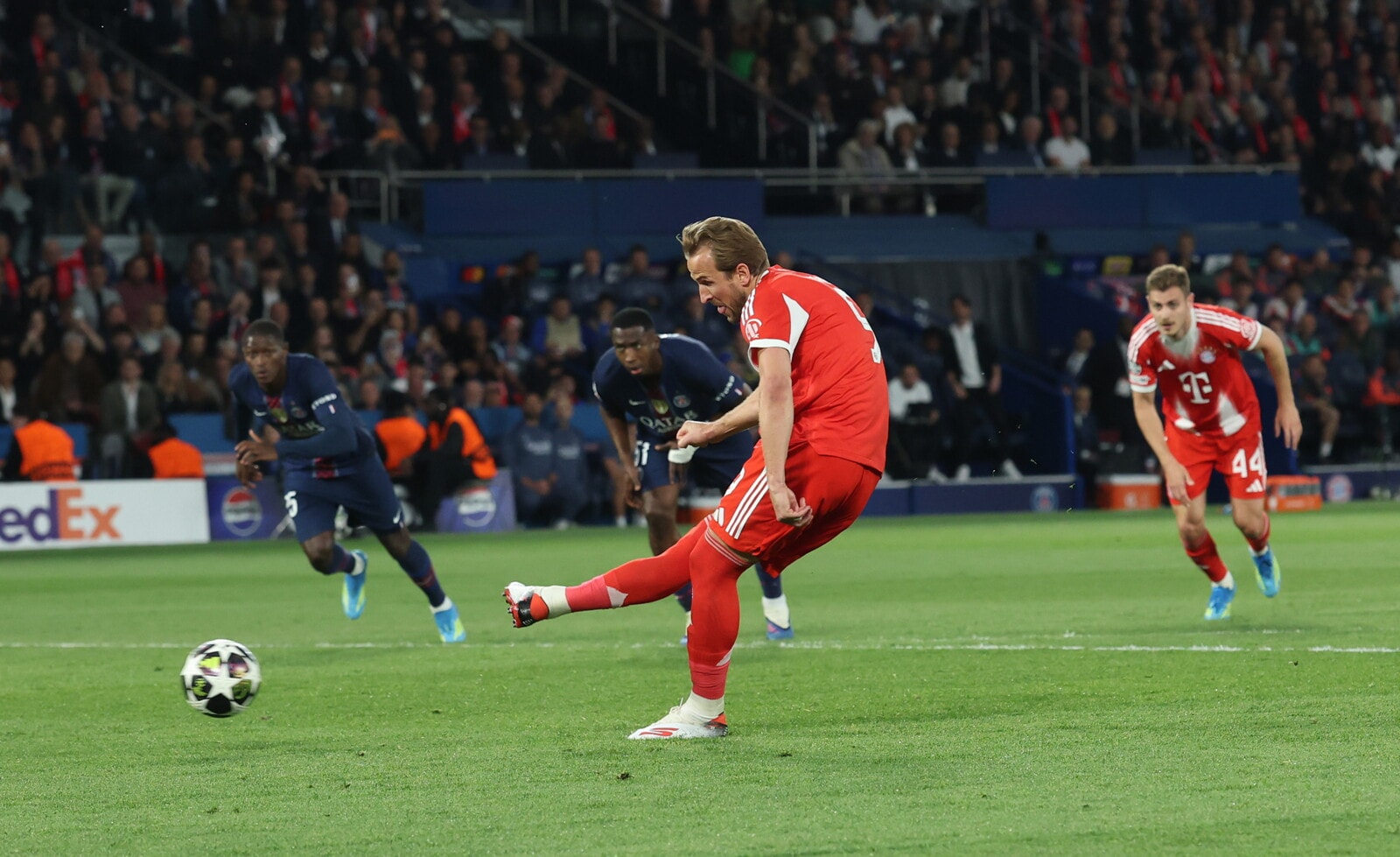 La squadra di Luis Enrique si fa rimontare parzialmente dalle reti di Kane, Olise e Upamecano; per i parigini in gol anche Joao Neves