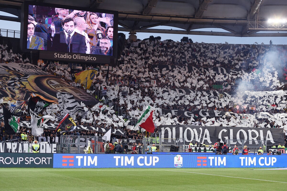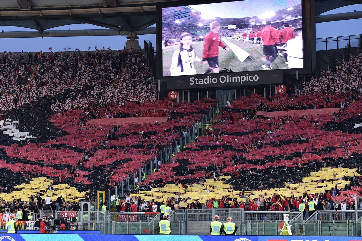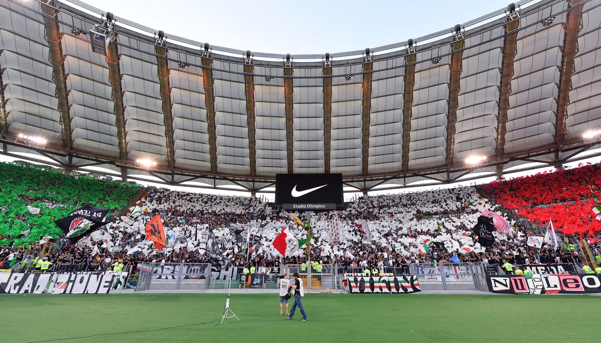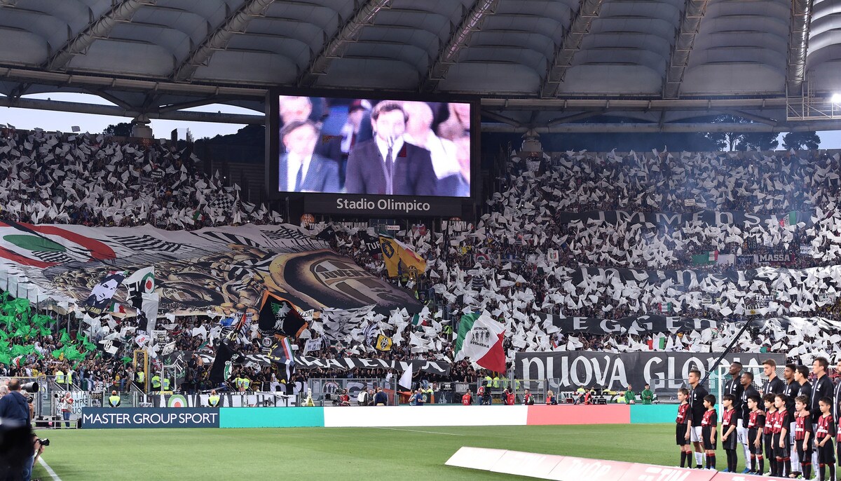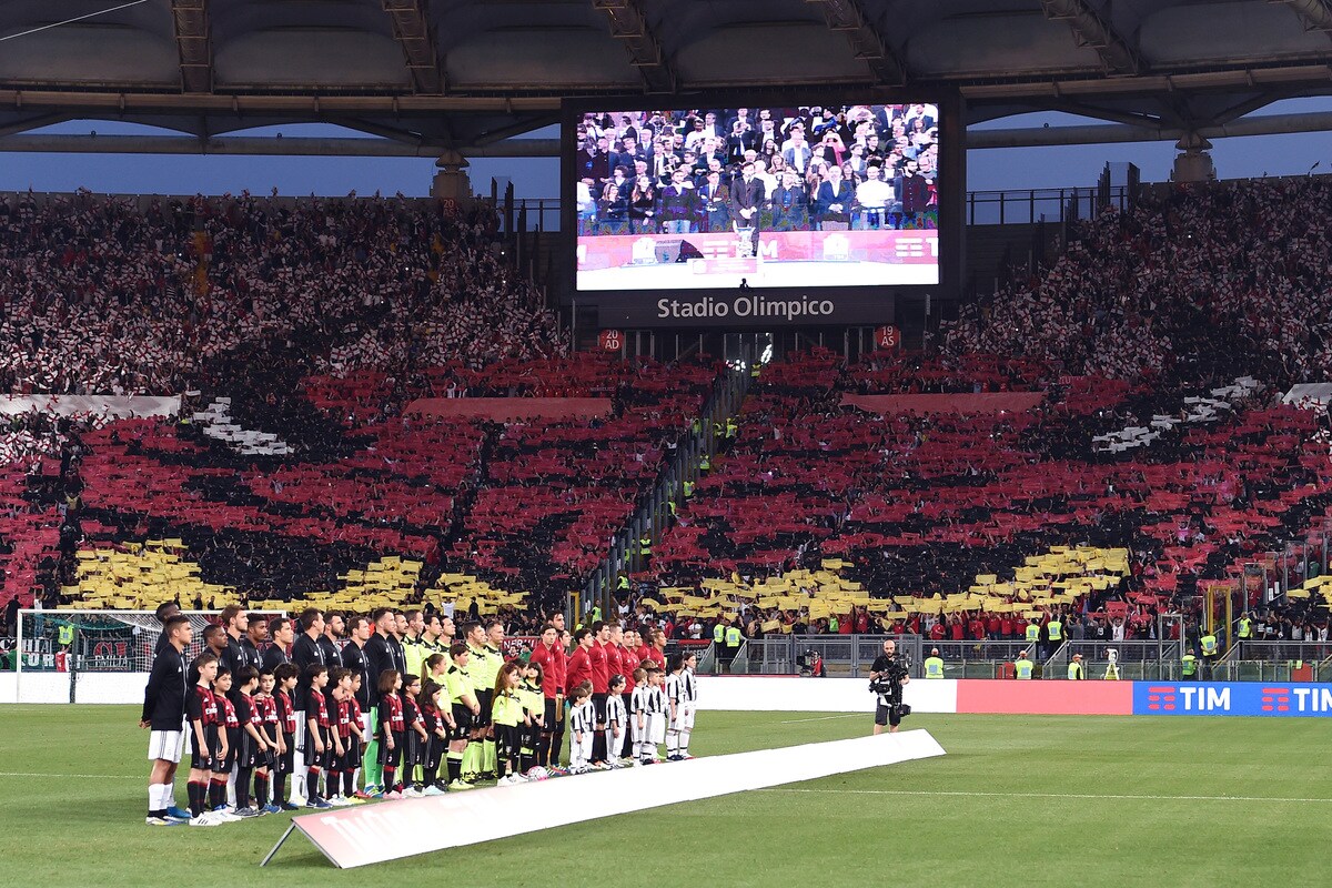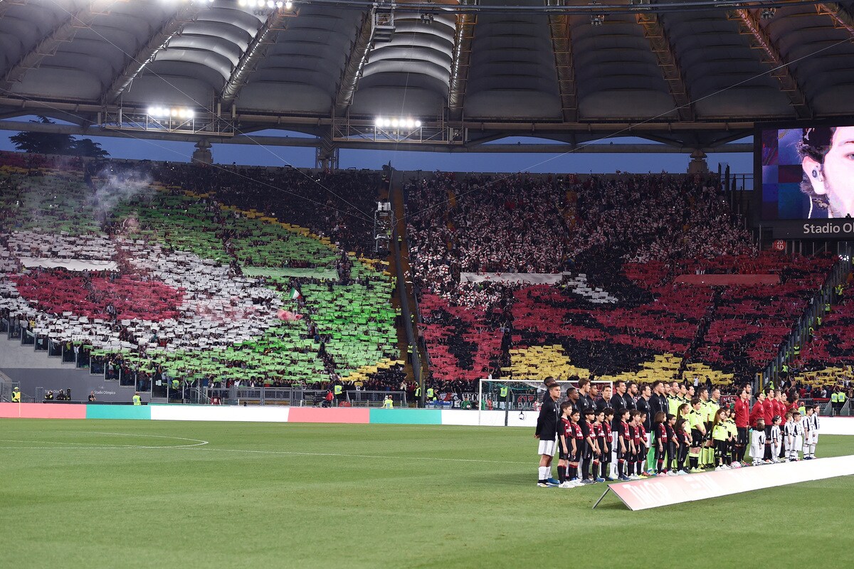 Le foto più belle delle coreografie dello stadio Olimpico durante la sfida tra i rossoneri e i bianconeri