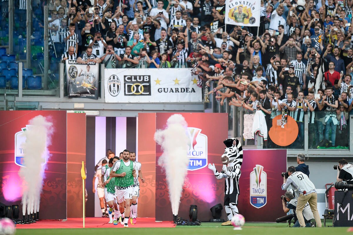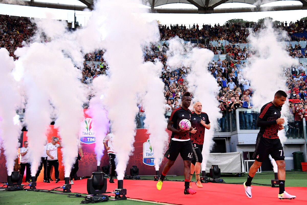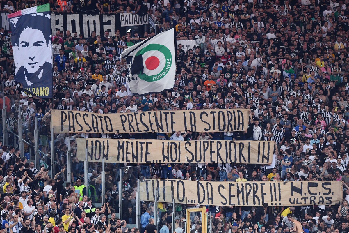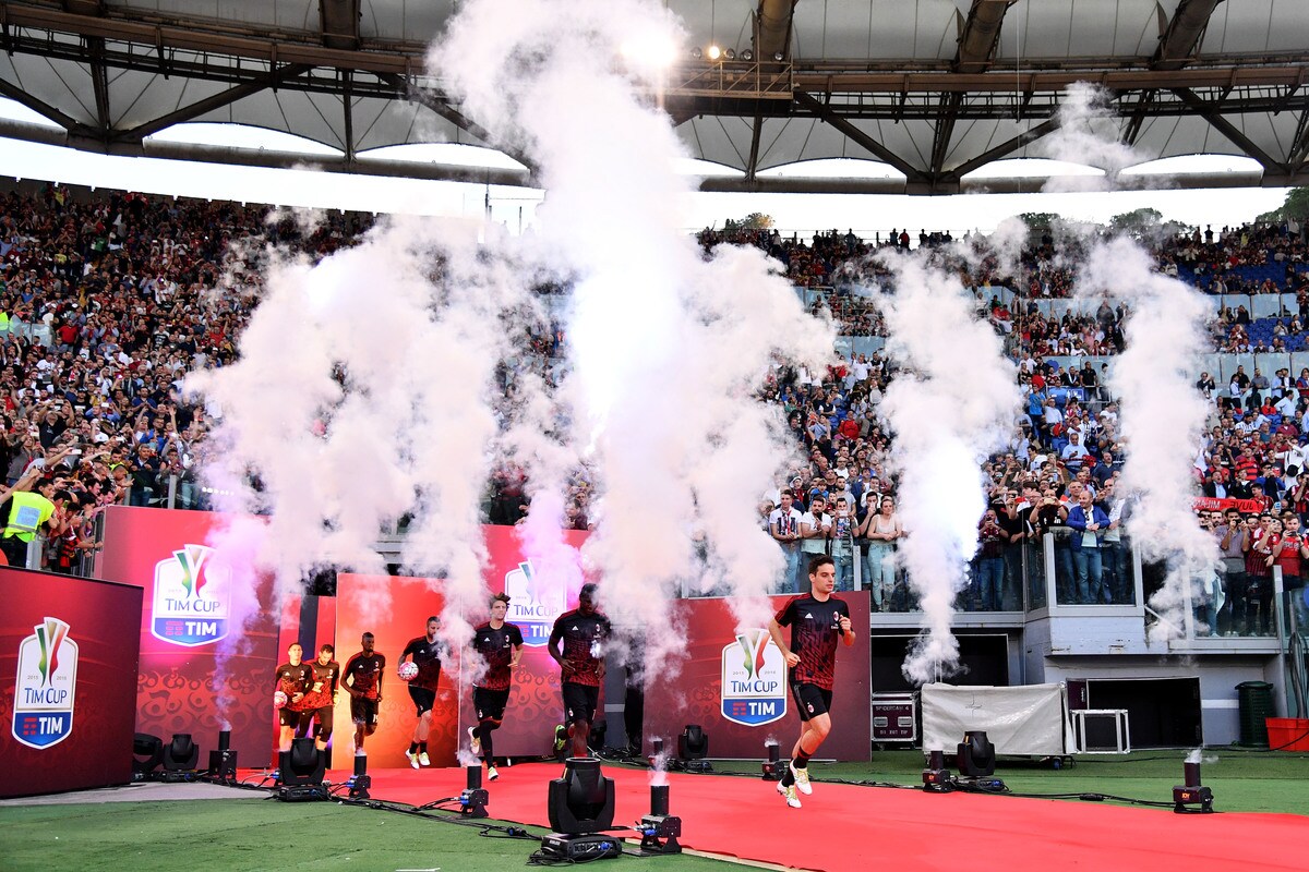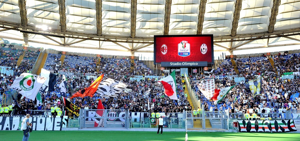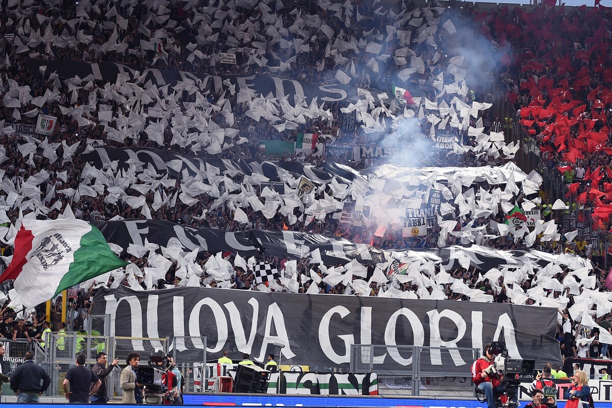 Le foto più belle delle coreografie dello stadio Olimpico durante la sfida tra i rossoneri e i bianconeri