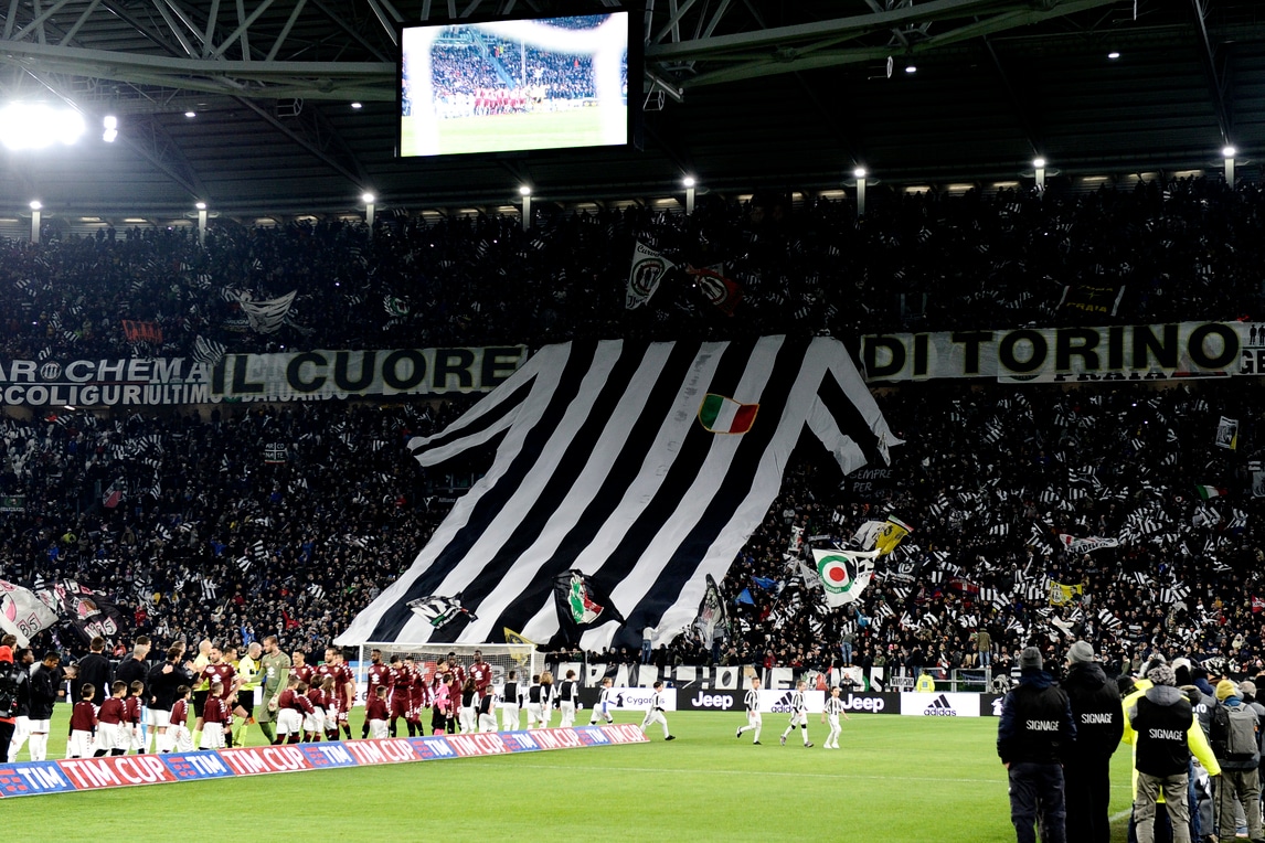 I tifosi juventini accolgono così le squadre all'ingresso in campo poco prima della sfida dei quarti di finale di Coppa Italia