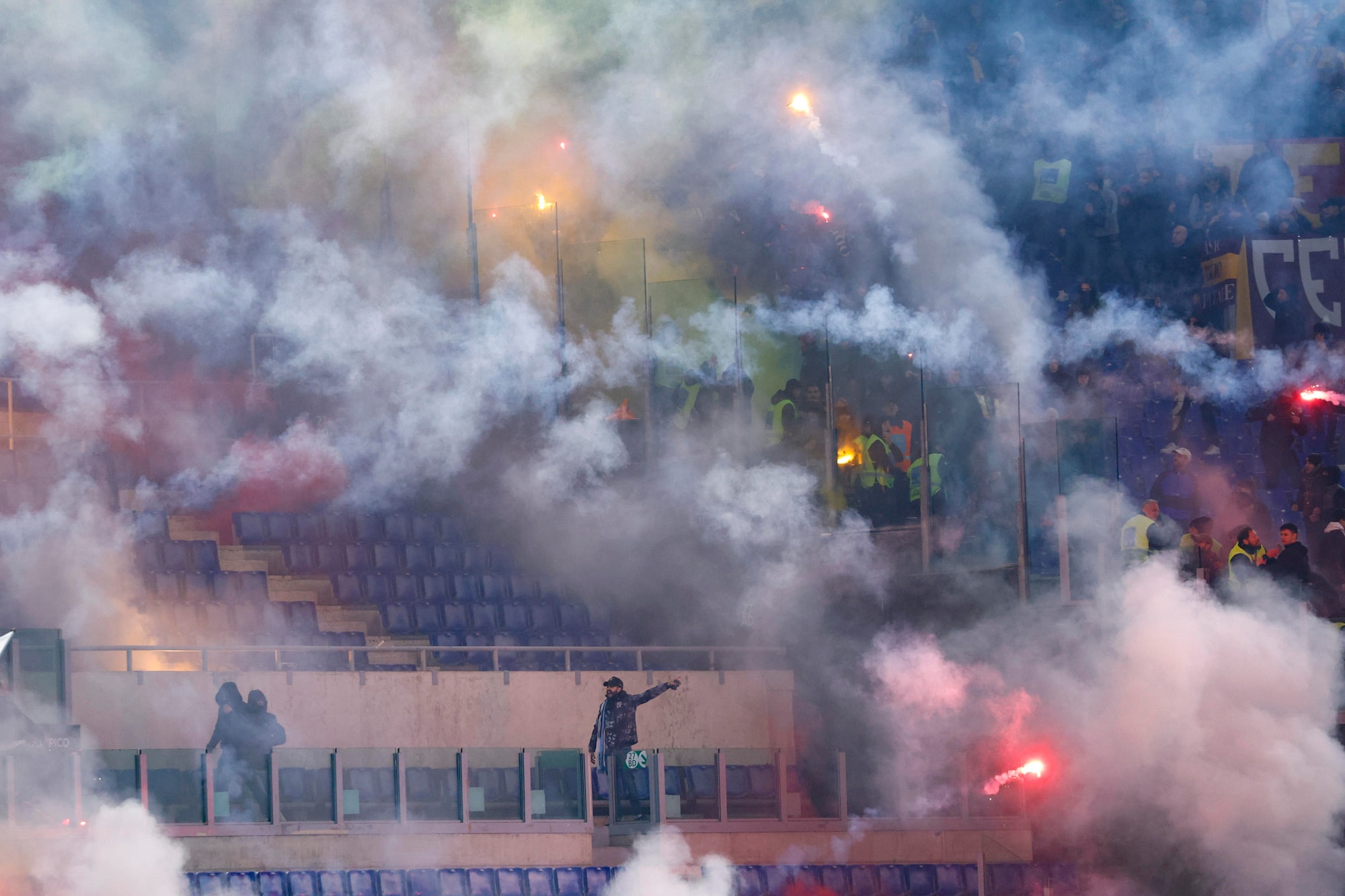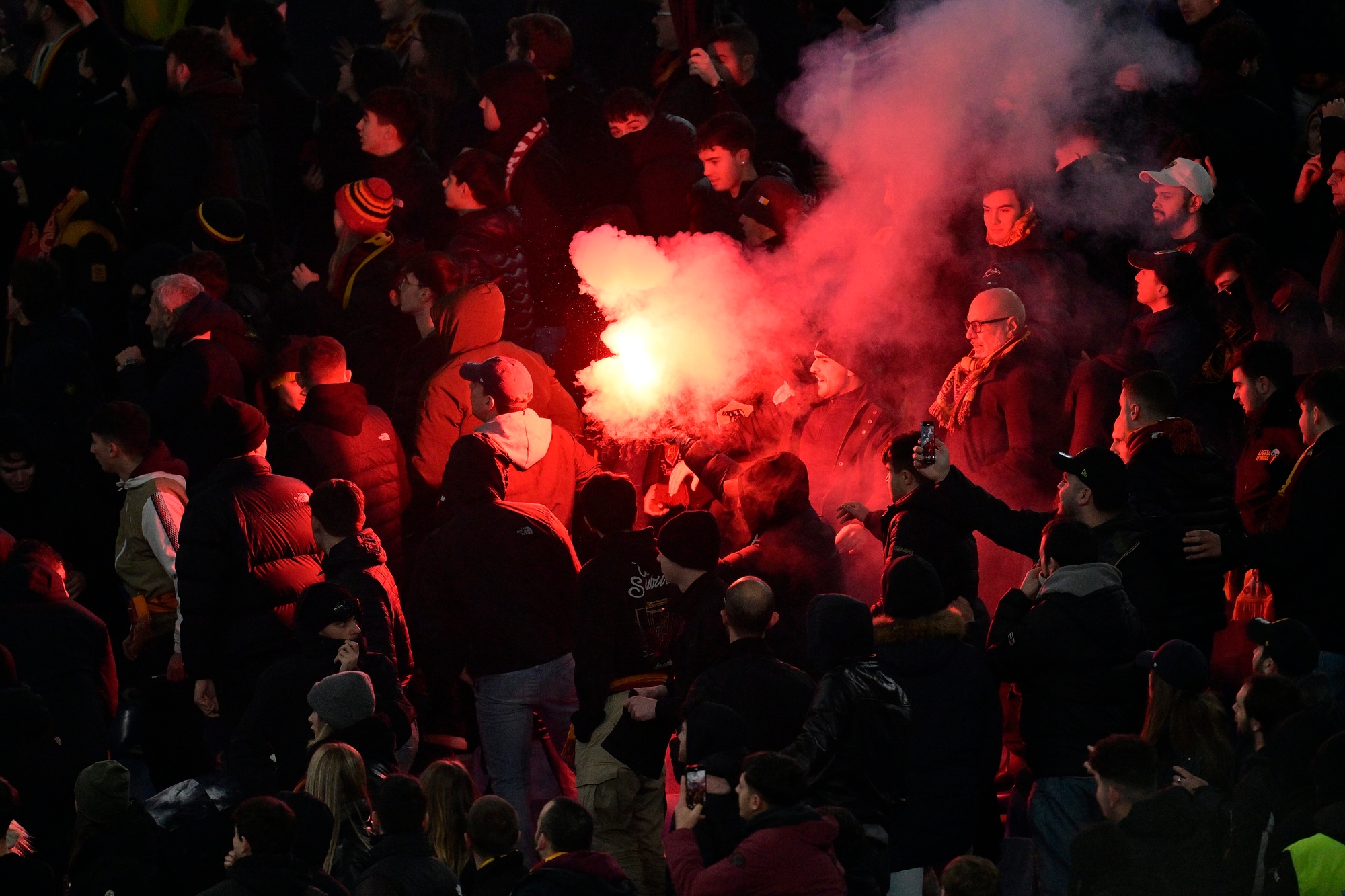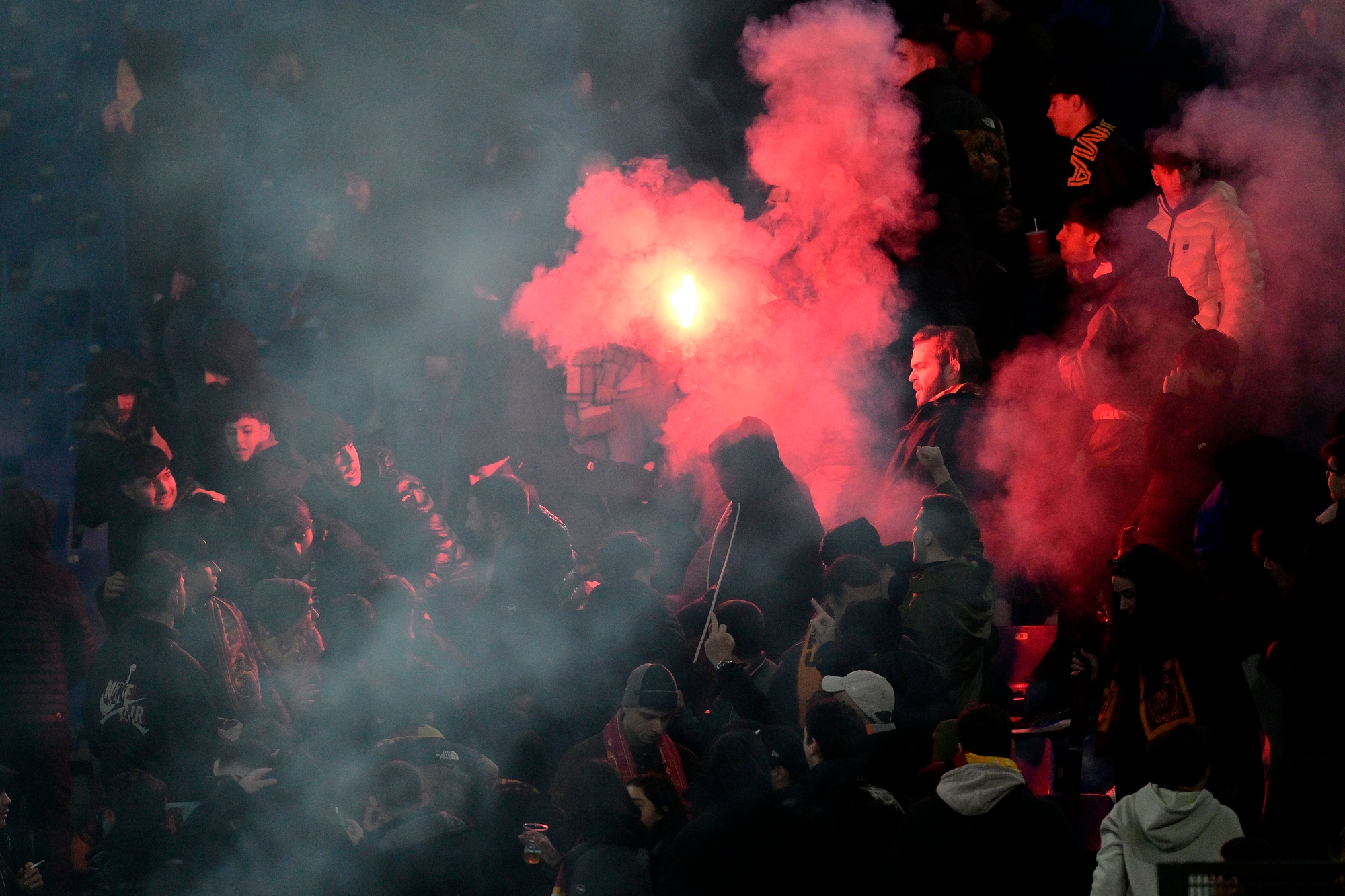 Una nube di fumo ha avvolto il campo durante il riscaldamento, poi la situazione è tornata alla normalità