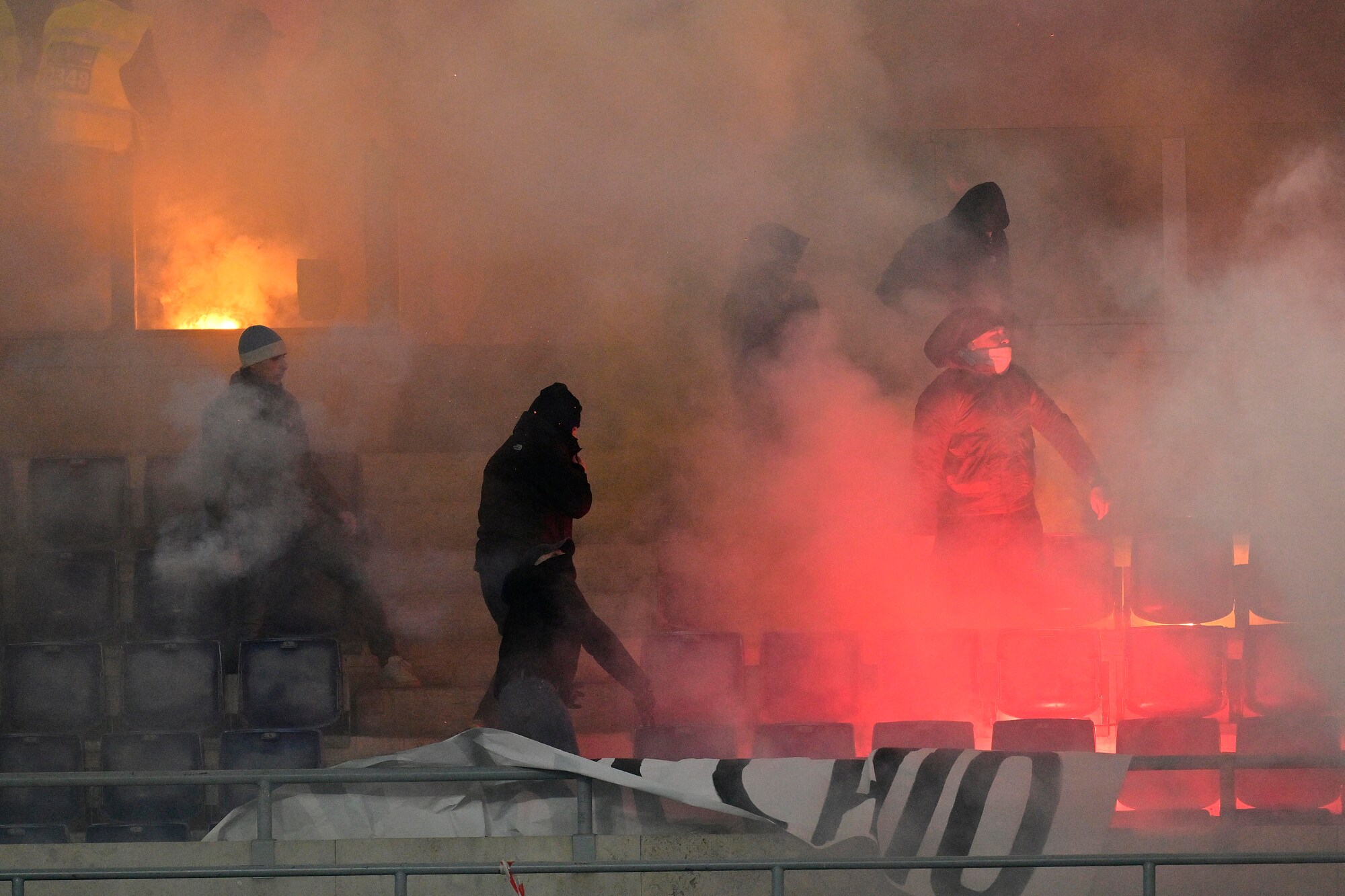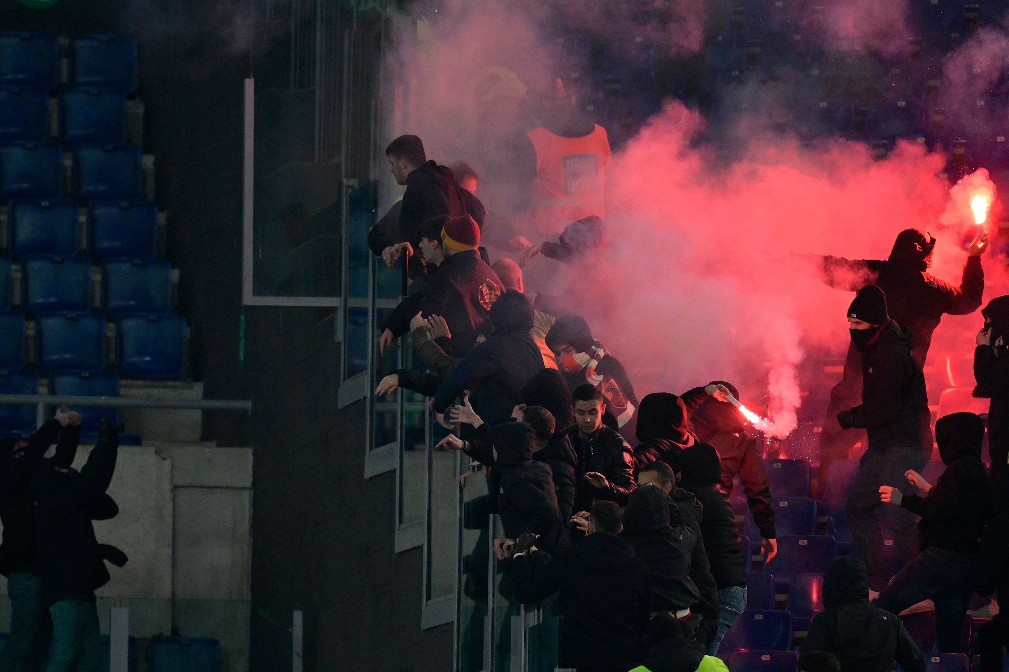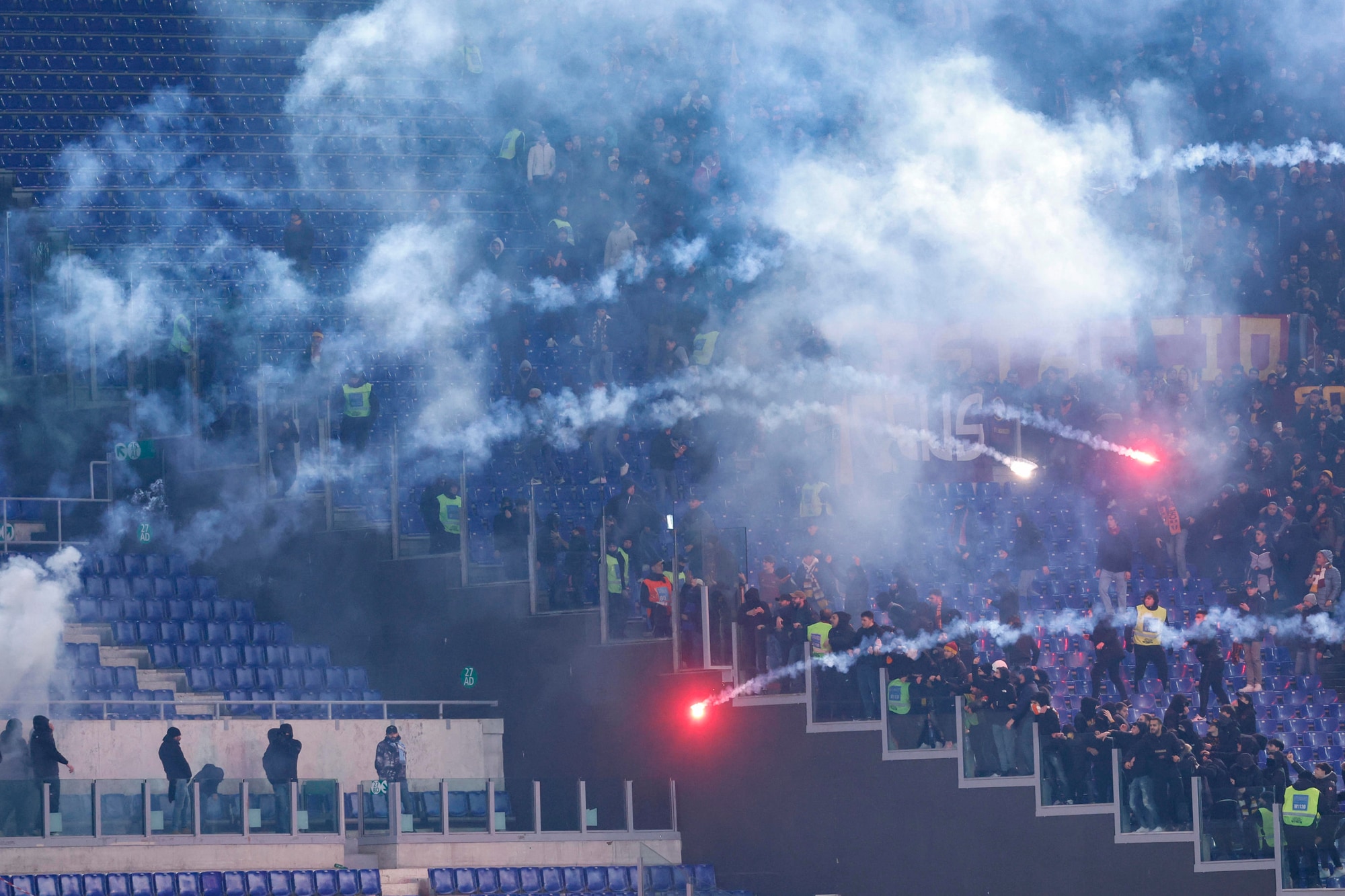 Una nube di fumo ha avvolto il campo durante il riscaldamento, poi la situazione è tornata alla normalità