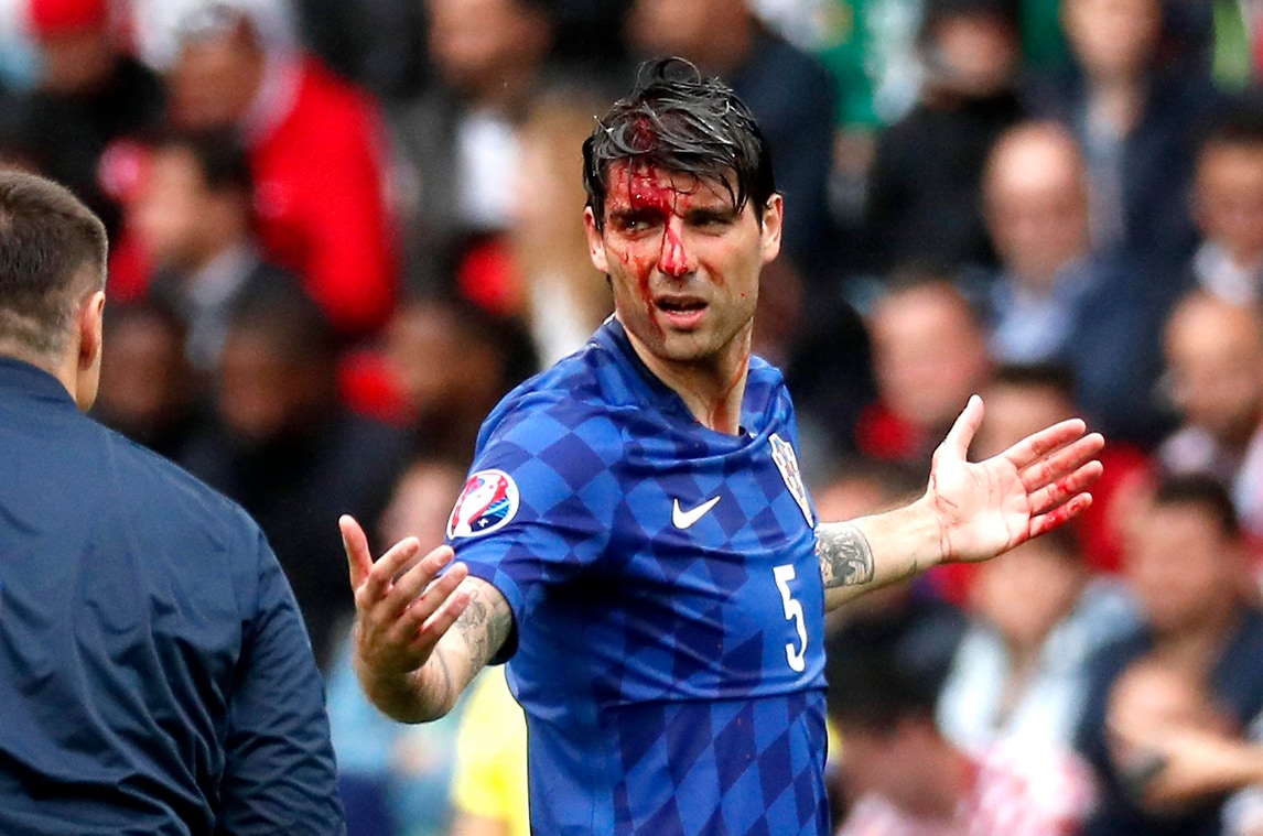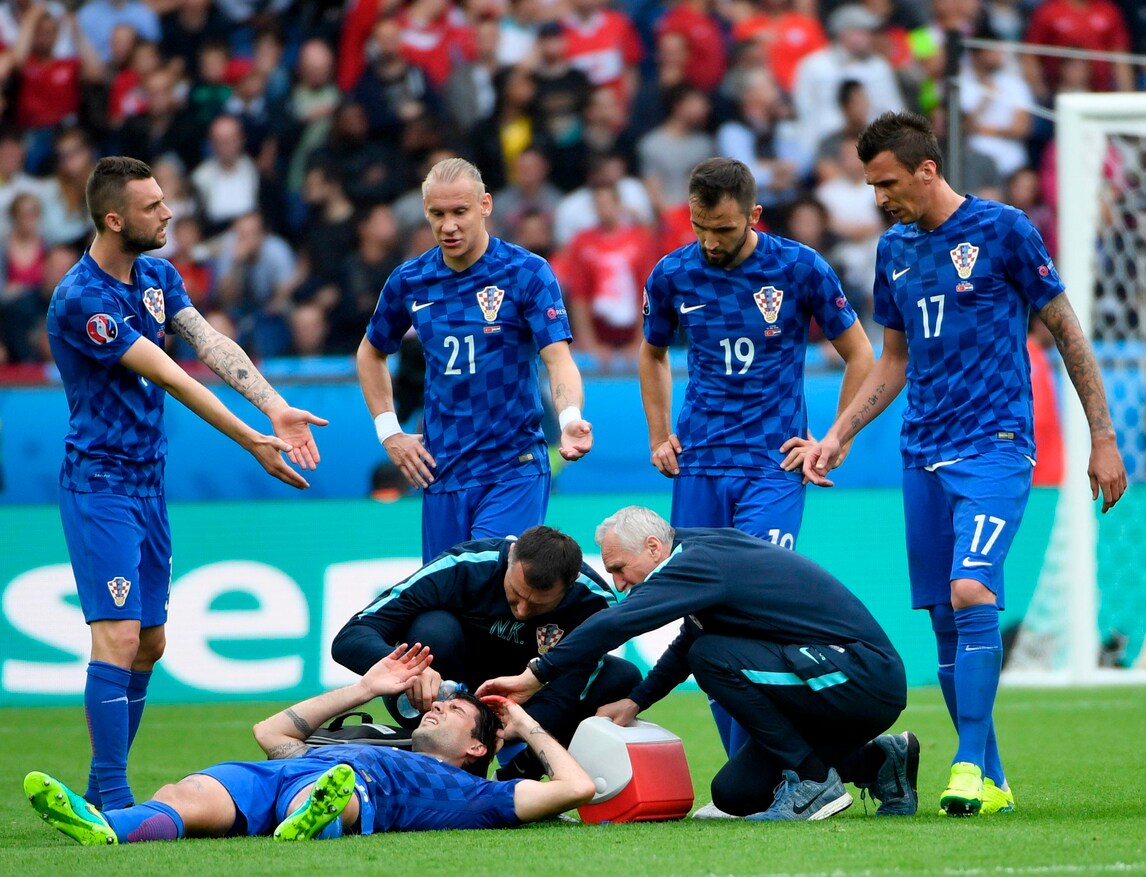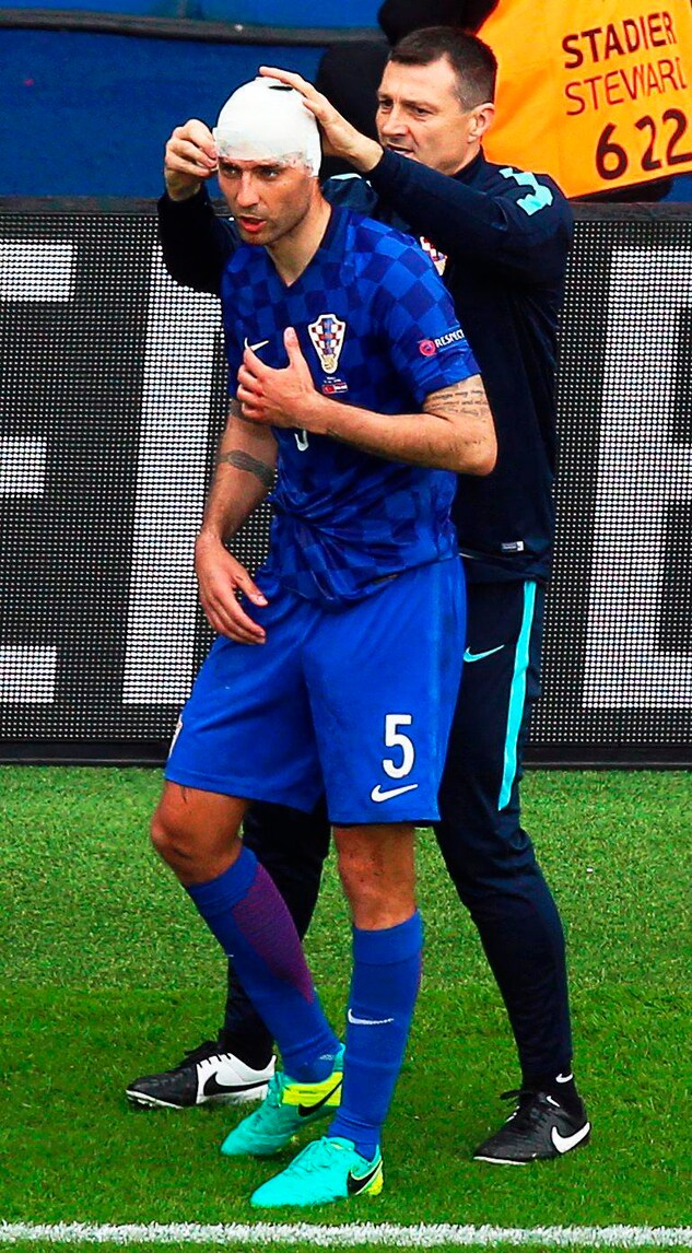 Il difensore croato si infortuna nel corso del primo tempo dopo avere subito un colpo alla testa: con il volto completamente insanguinato è costretto a uscire dal campo per farsi medicare. Rientra dopo qualche minuto con una fasciatura alla testa