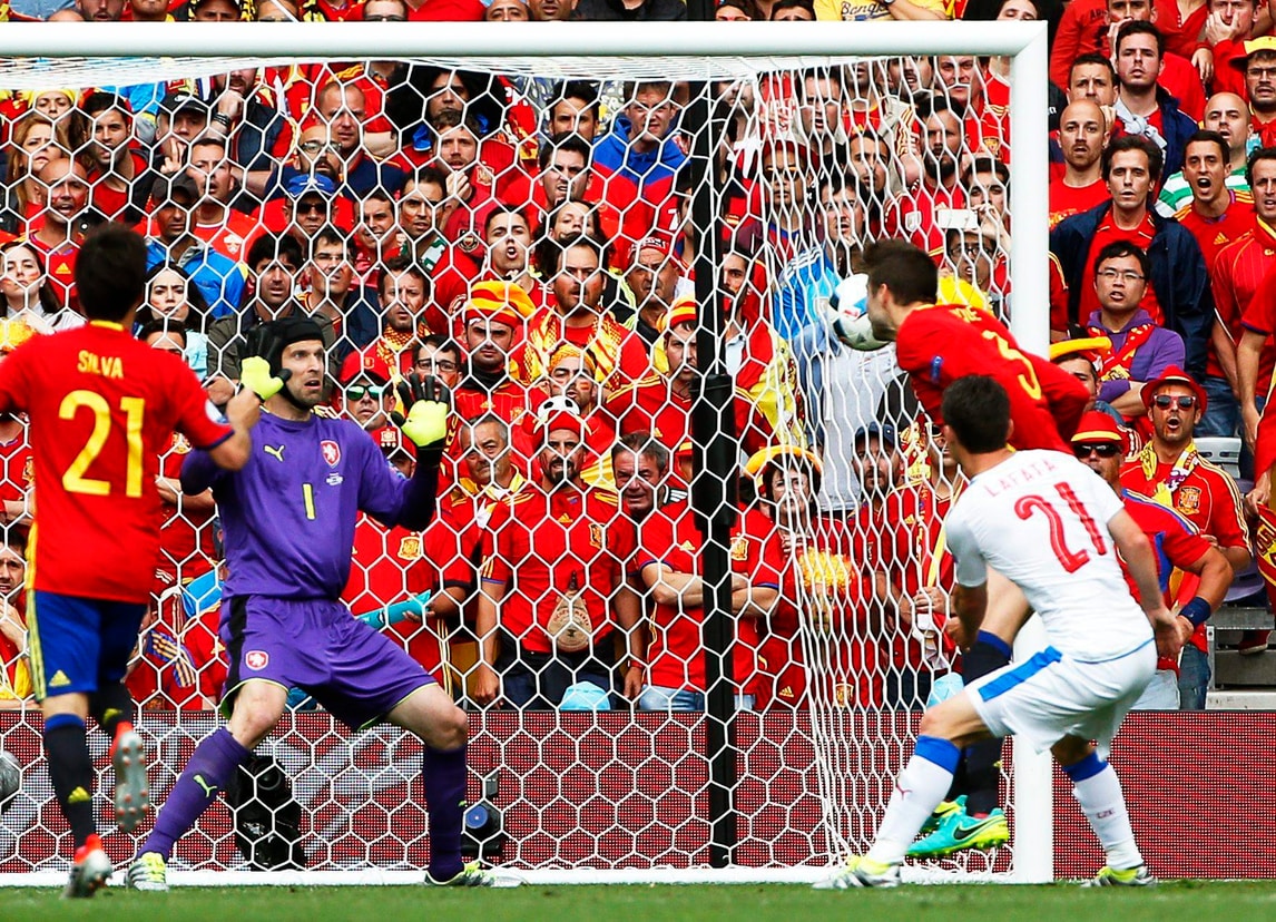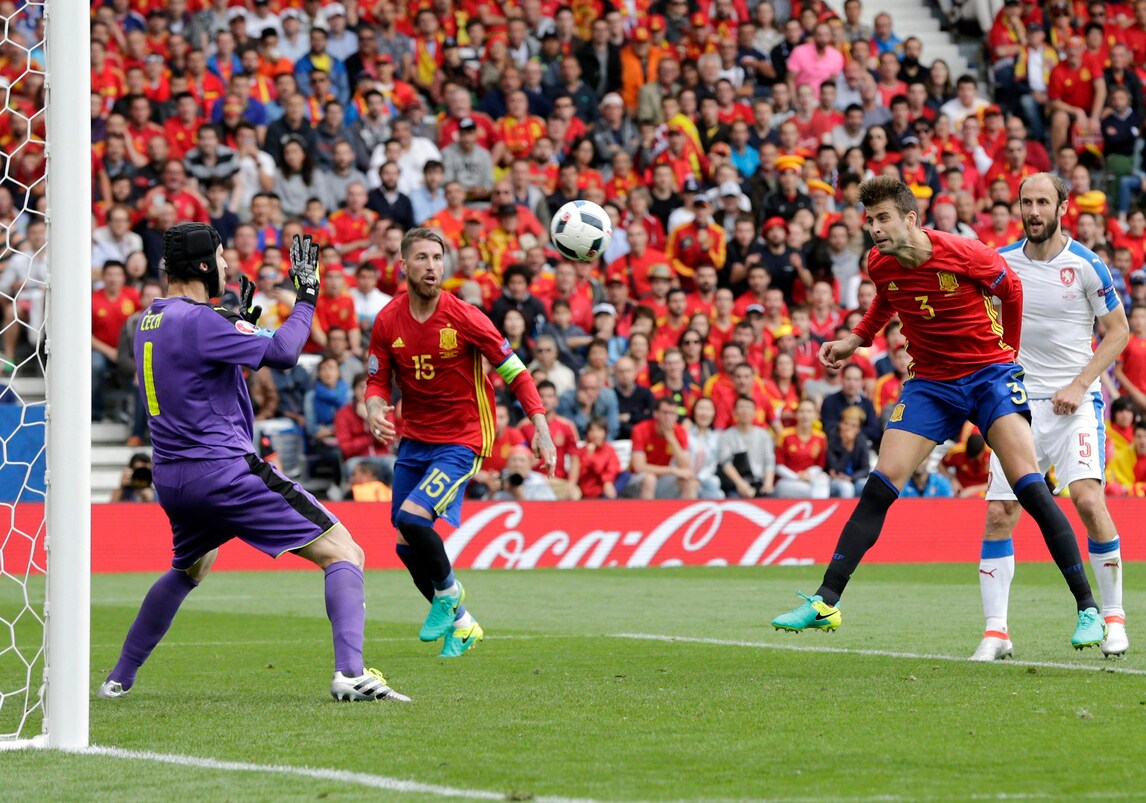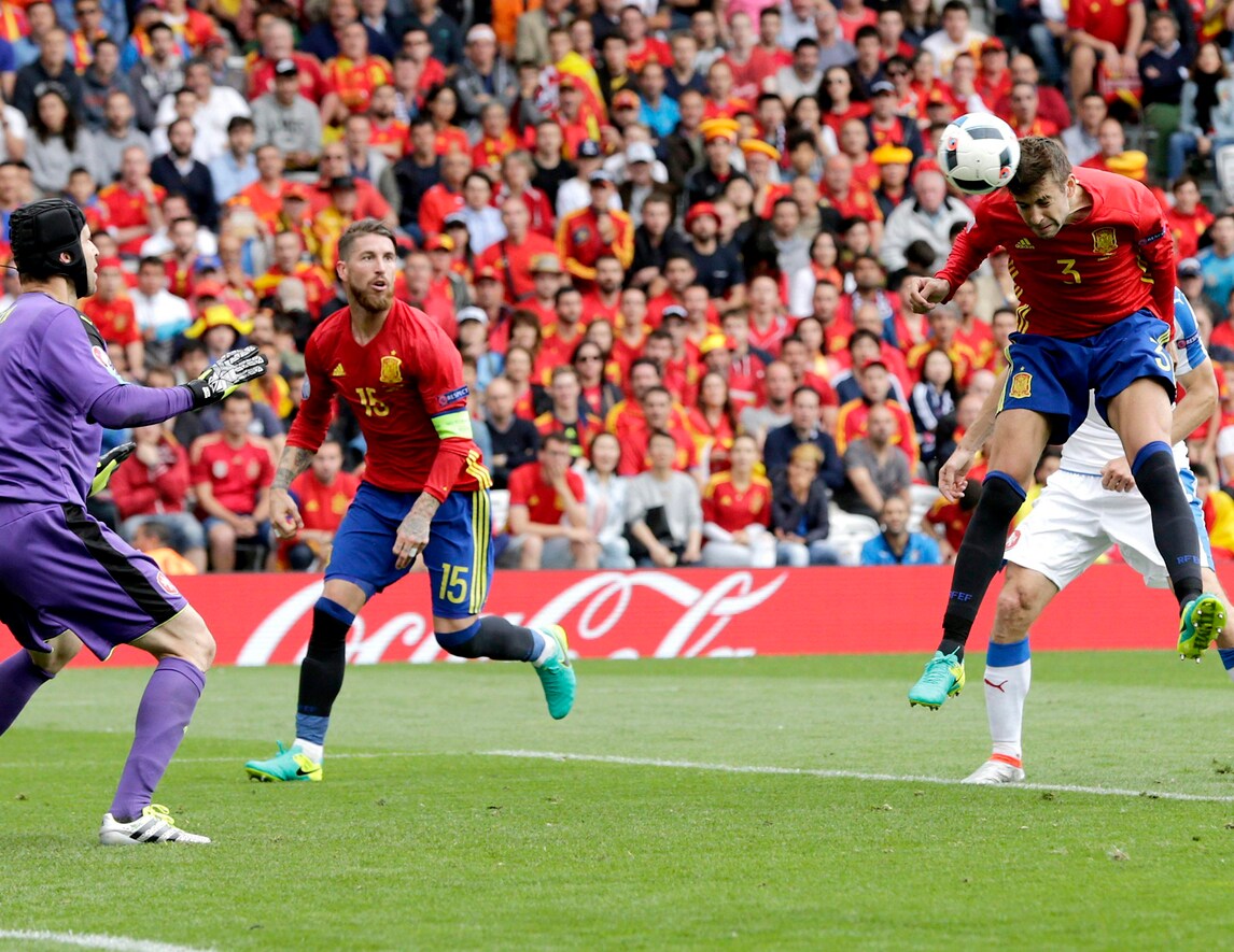 Il centrale del Barcellone va a segno all'87'. Morata ha due buone occasioni al 16' e al 29' ma Cech è bravo ad opporsi in entrambe