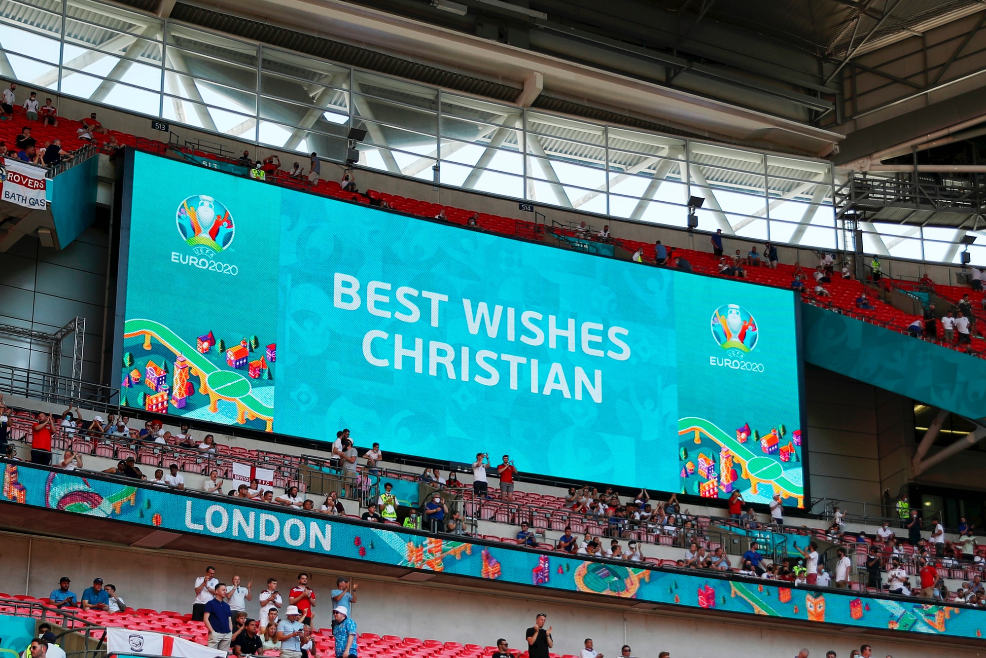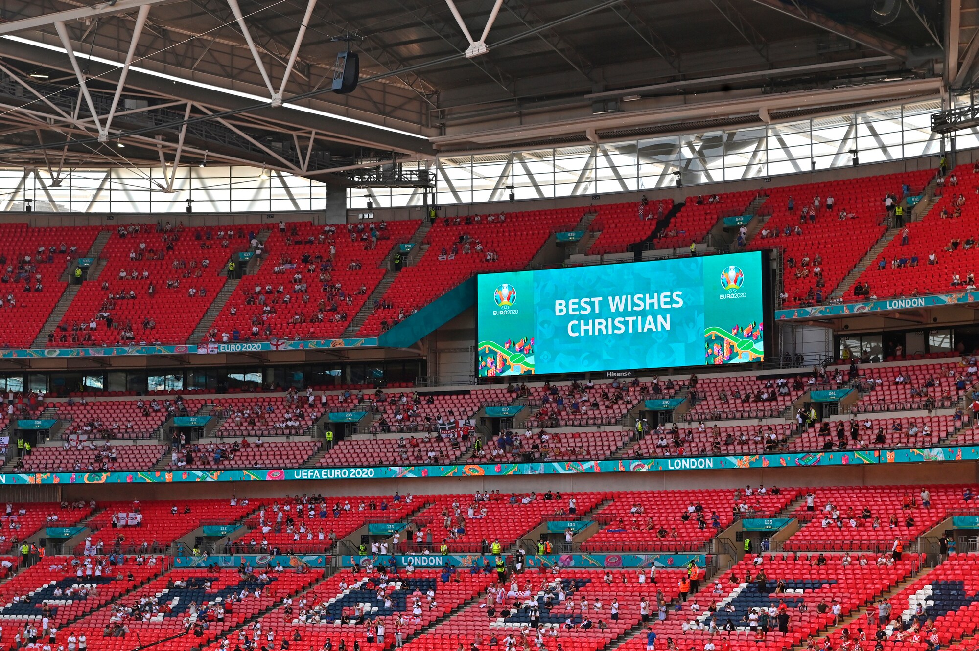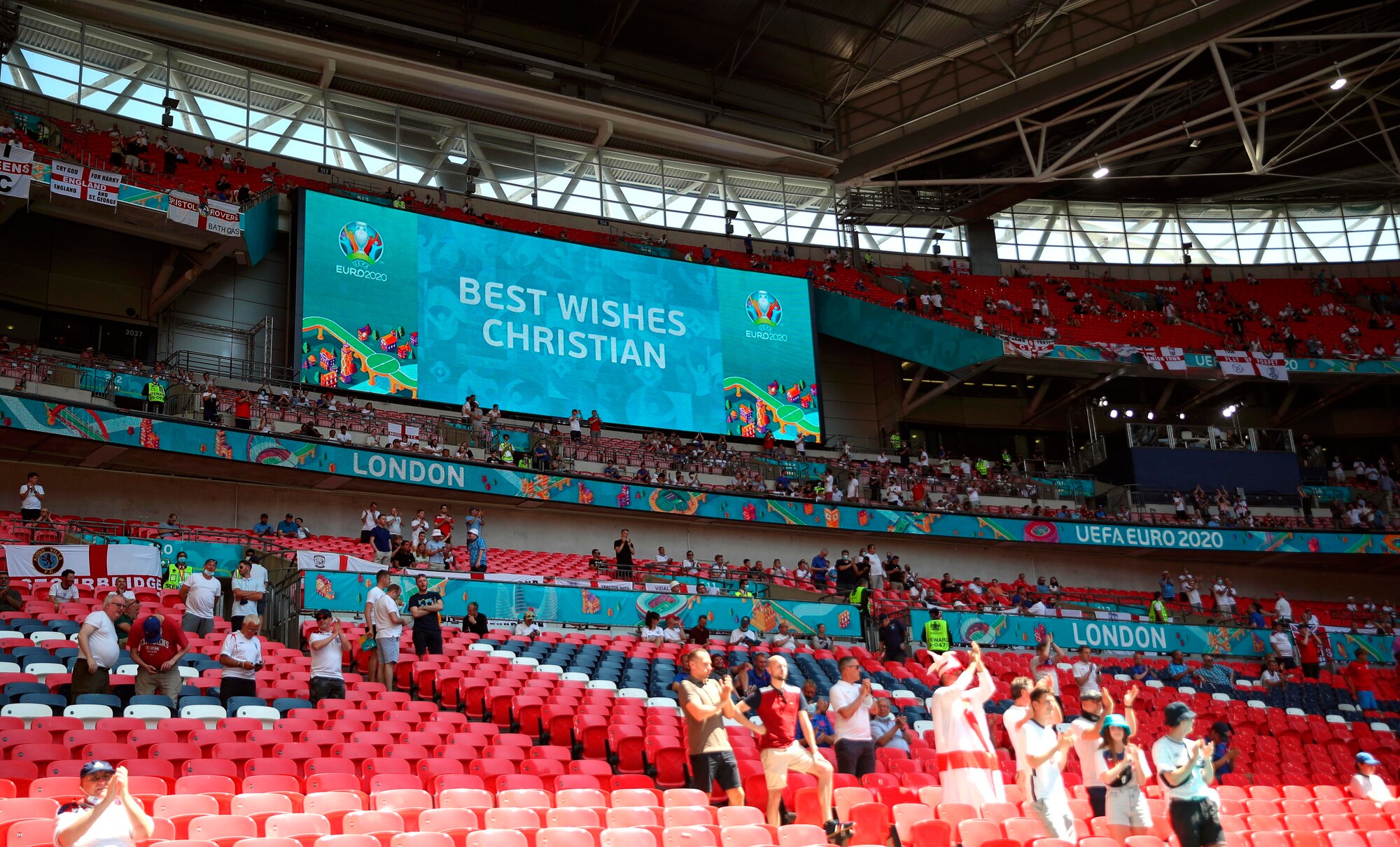 Lo stadio londinese ha omaggiato il centrocampista danese prima di Inghilterra-Turchia, prima gara del gruppo D a Euro 2020
