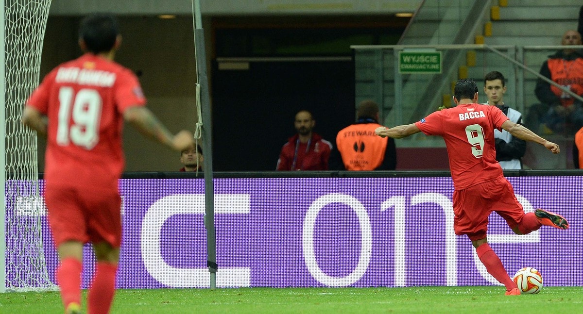 Il Siviglia trionfa a Varsavia con la rete di Krychowiak e la doppietta di Bacca. Di Kalinic e Rotan i gol ucraini.