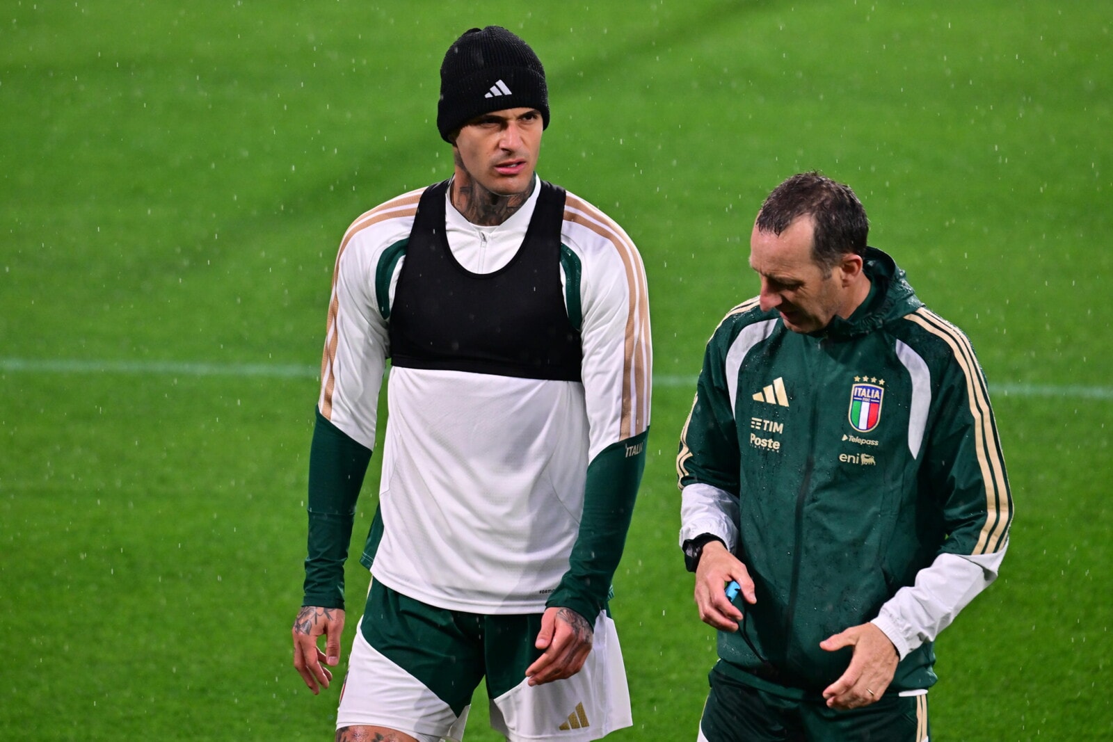 Bonucci e Gattuso caricano gli azzurri: l'allenamento Italia sotto la pioggia