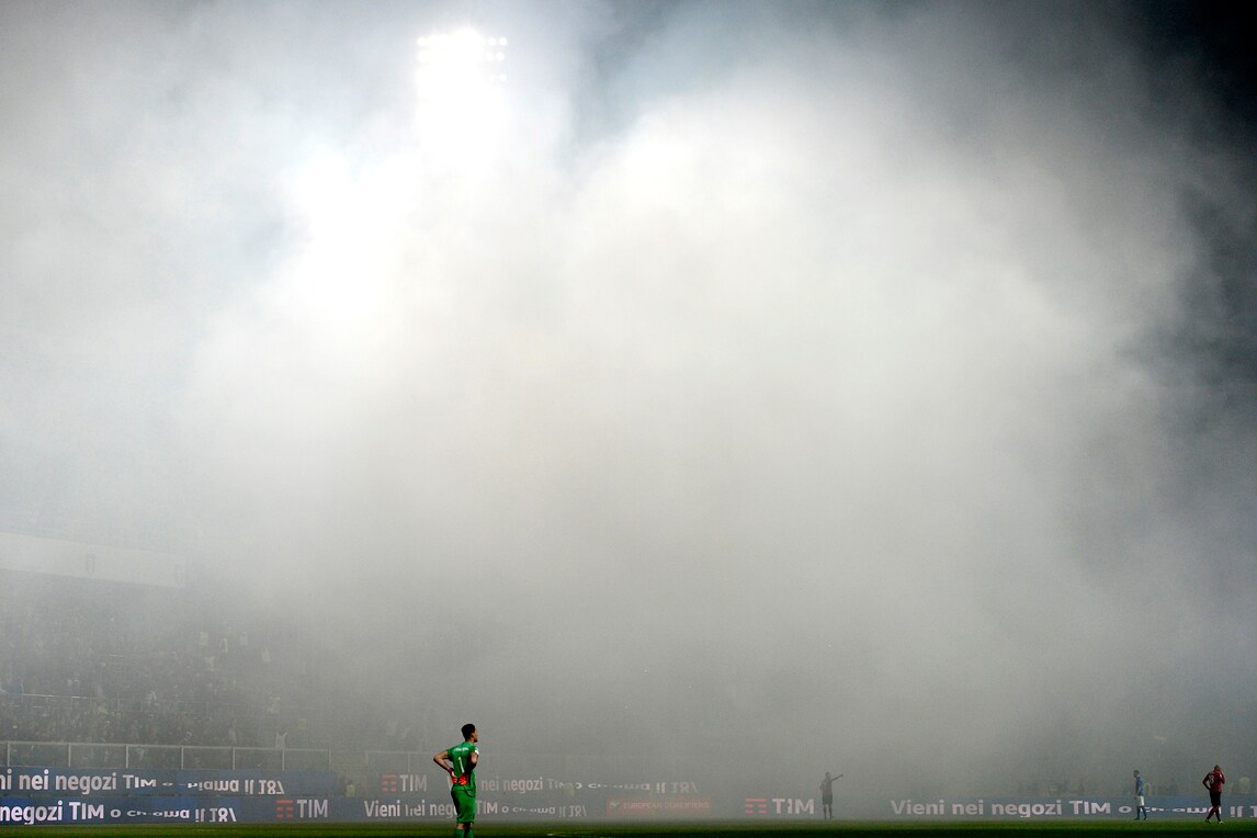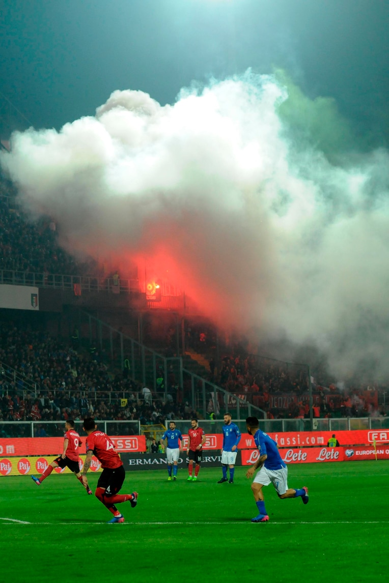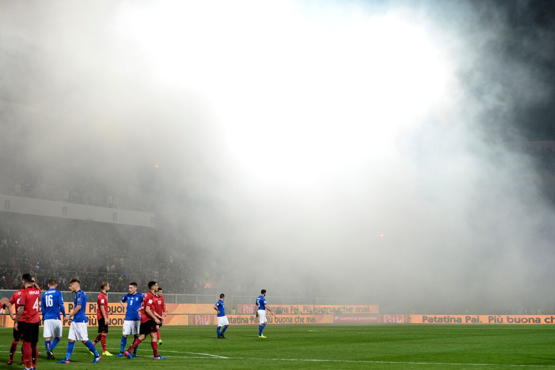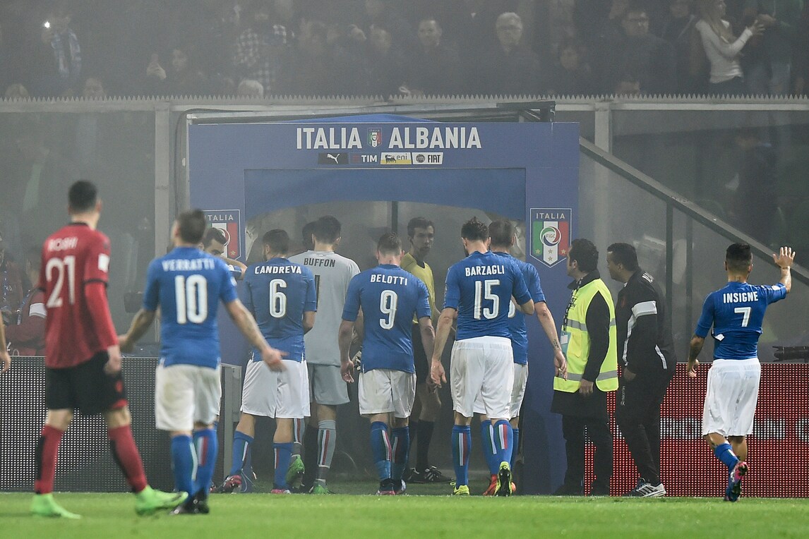 Lancio di fumogeni, Italia-Albania sospesa per 8'