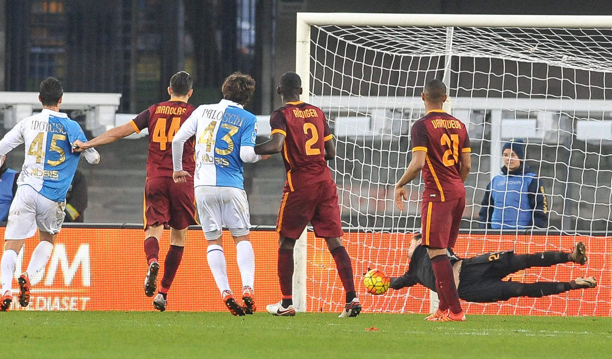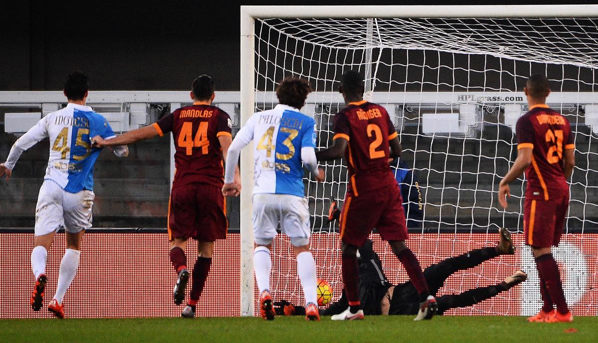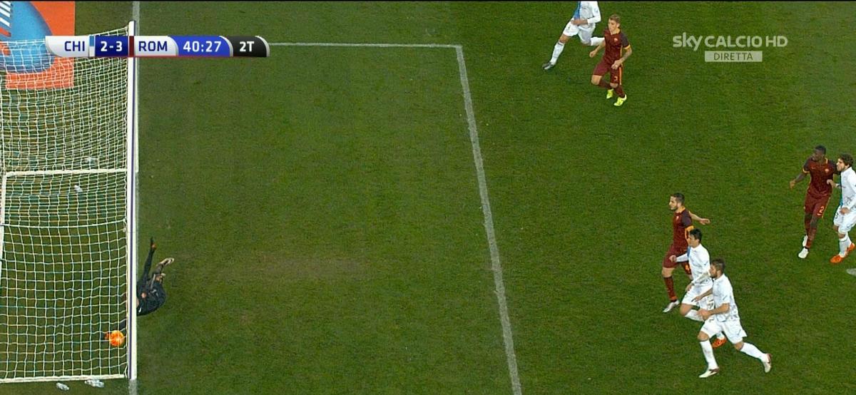 La rete del 3-3 del Chievo contro la Roma assegnata grazie alla goal-line technology