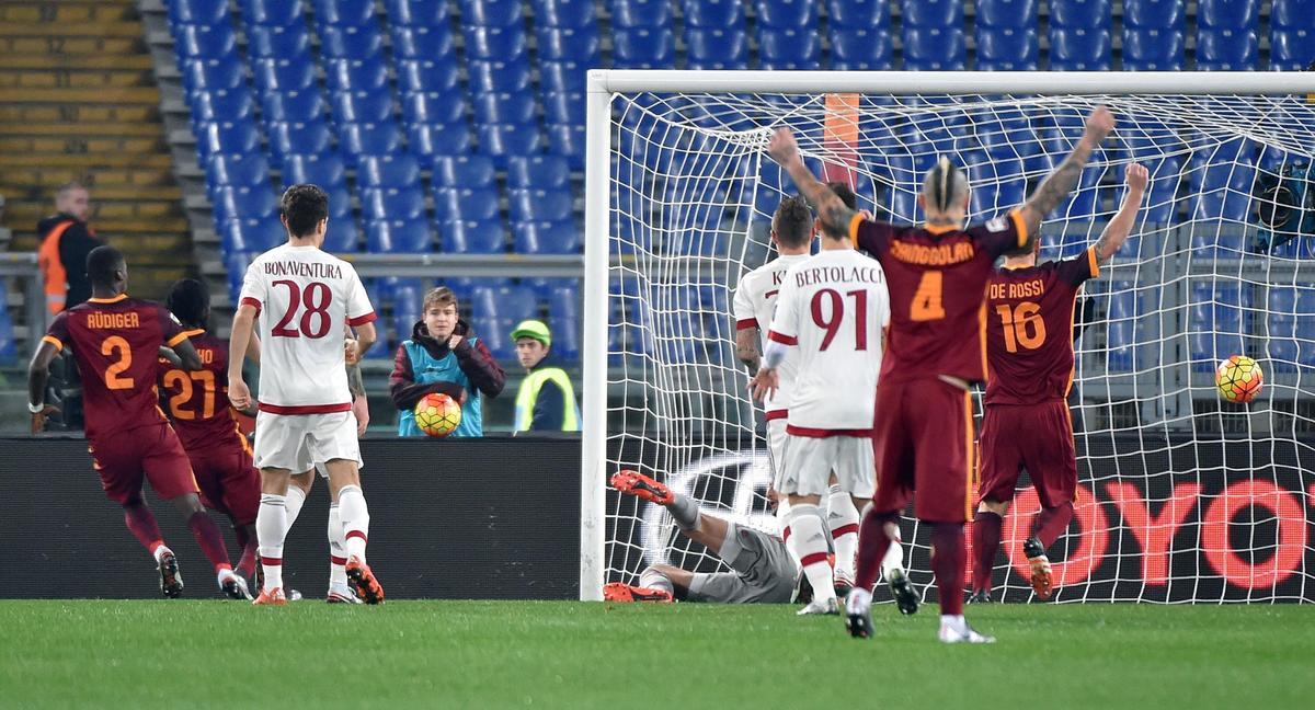 Rudiger porta in vantaggio i giallorossi, raggiunti poi da Kucka. Per la squadra di Garcia è il secondo pari consecutivo. Rossoneri lontani dalla vittoria da tre turni.