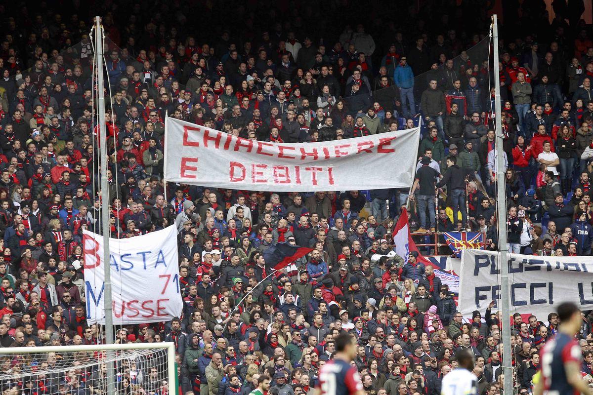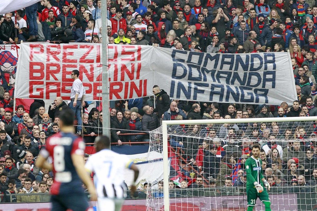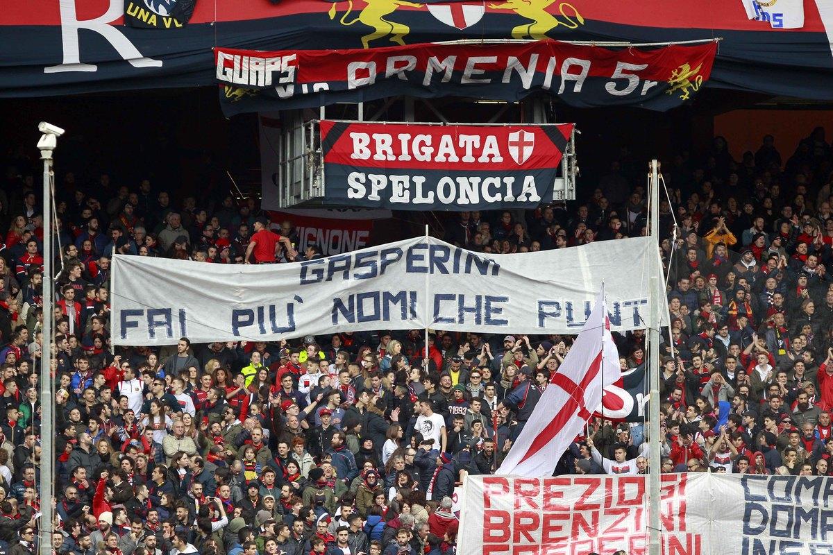 Striscioni contro allenatore e presidente a Marassi durante la sfida vinta con i gol di Cerci e Laxalt