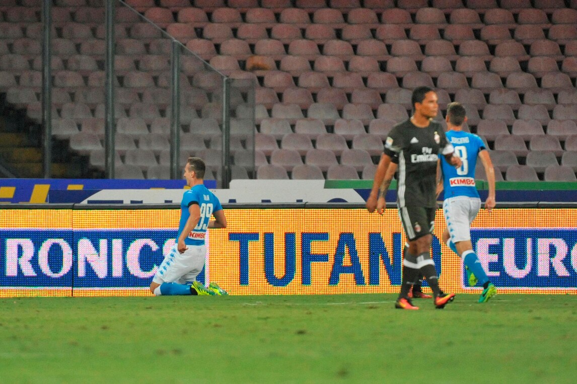 La squadra di Sarri porta a casa i tre punti contro gli uomini di Montella grazie ai gol dell'attaccante polacco al 18' e 33' e dello spagnolo al 74' e 94'