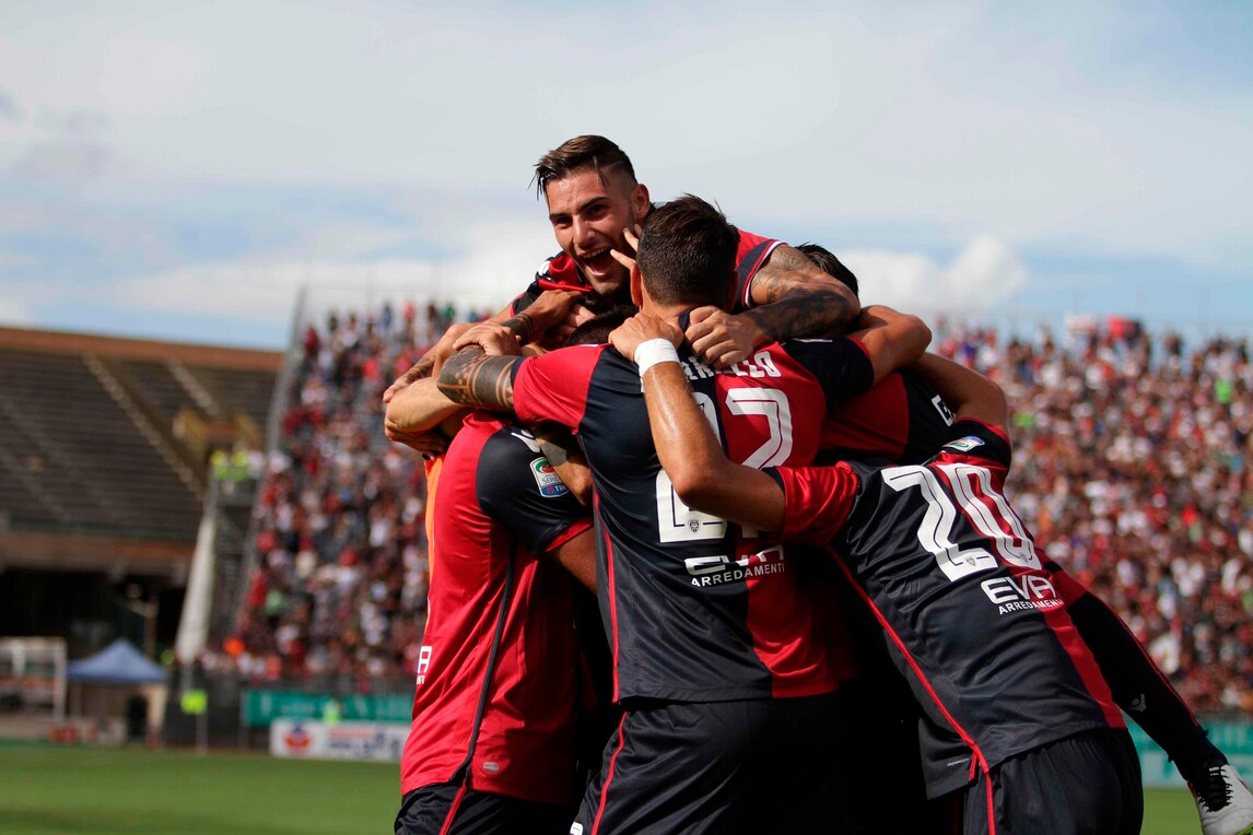 Doppietta per l' attaccante rossoblù contro la sua ex squadra. In rete anche Sau