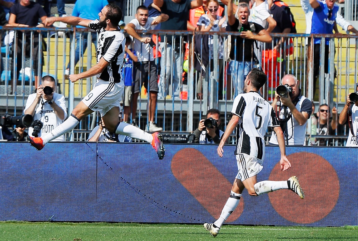 Il Pipita realizza una doppietta dopo che aveva aperto le marcature l'ex rosanero. Terza vittoria consecutiva per i bianconeri