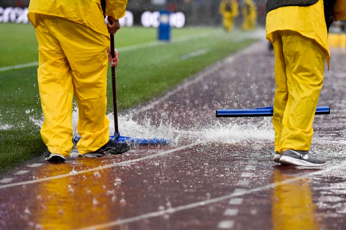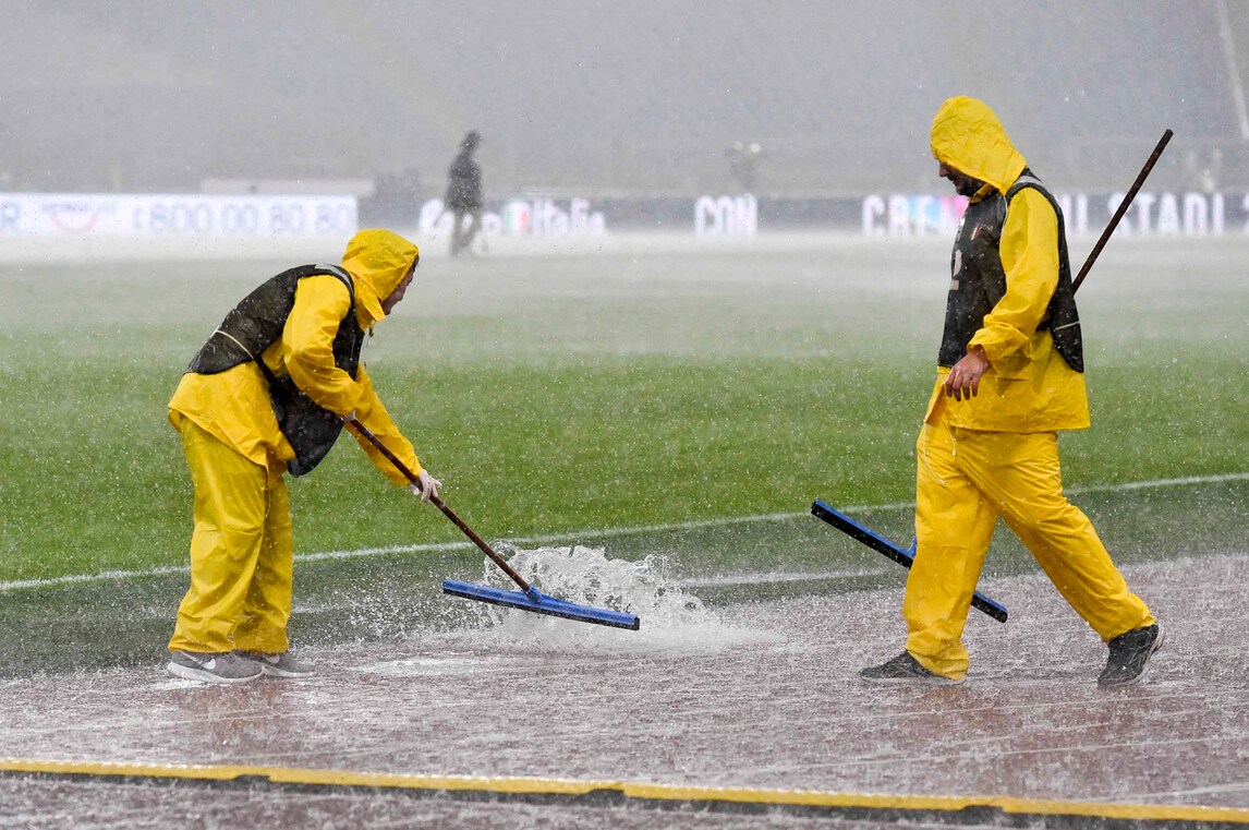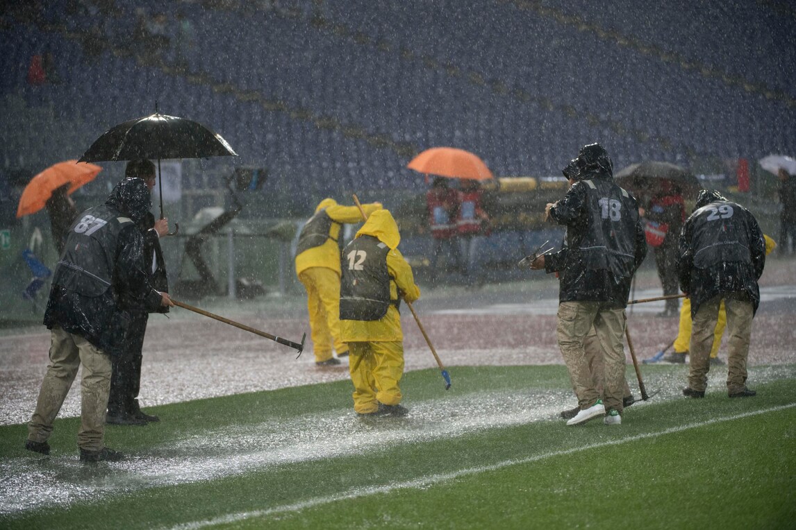 Allo stadio Olimpico il pallone non rimbalza per la pioggia incessante: la decisione è stata presa dopo due tentativi dell'arbitro Banti