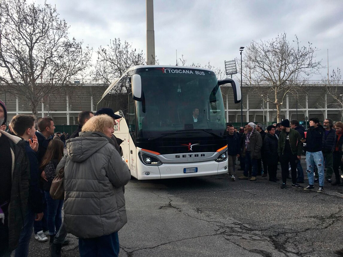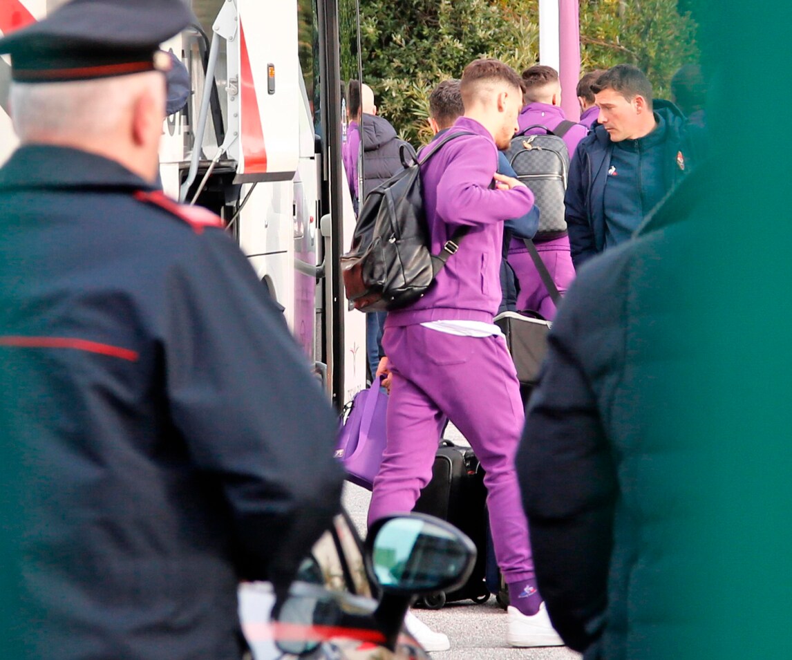 Astori, il pullman della Fiorentina lascia l'hotel