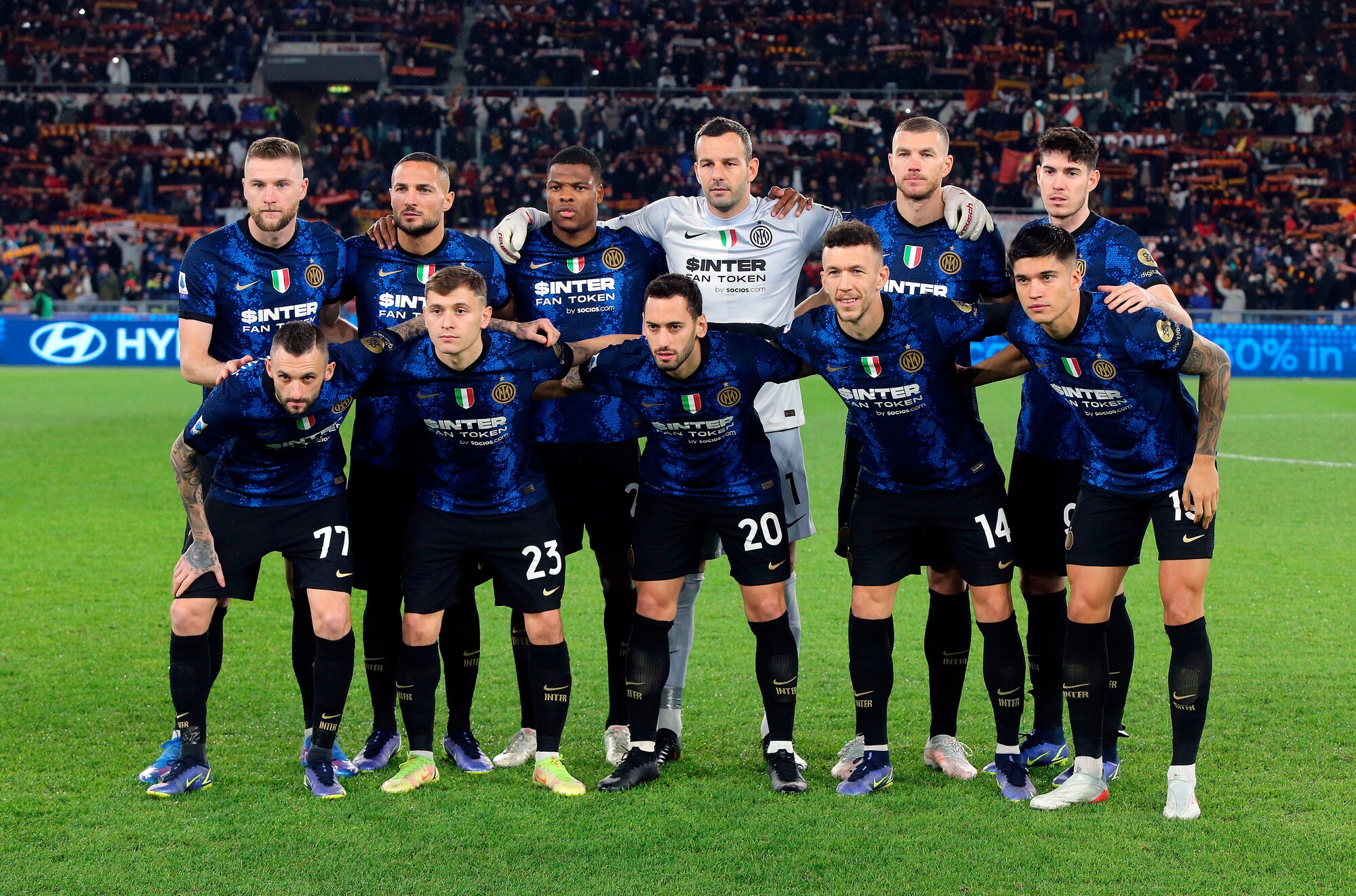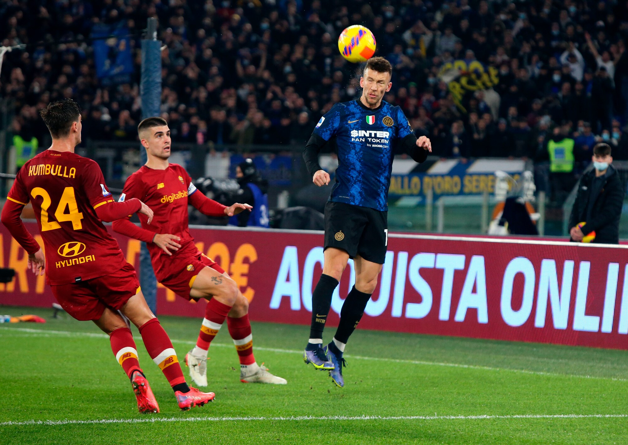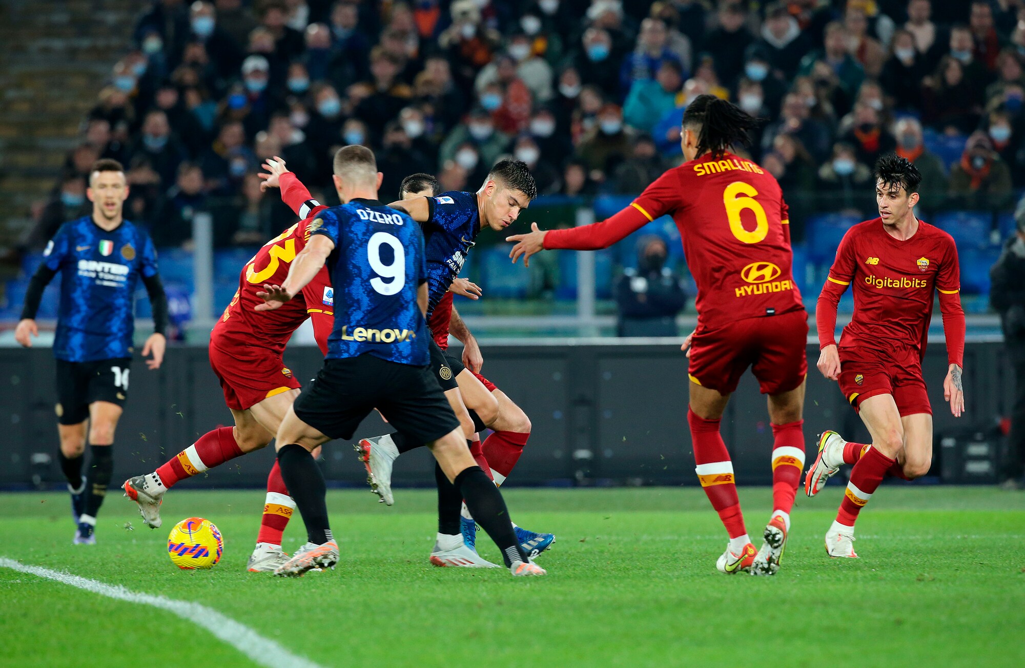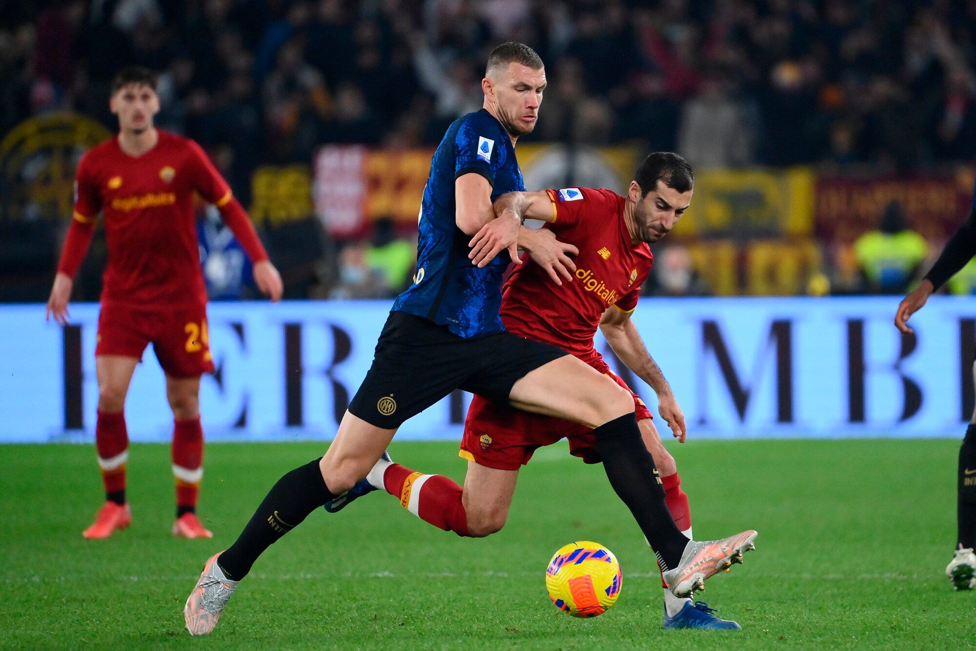 I nerazzurri vincono 3-0 in casa dei giallorossi: a segno Calhanoglu, il bosniaco e Dumfries