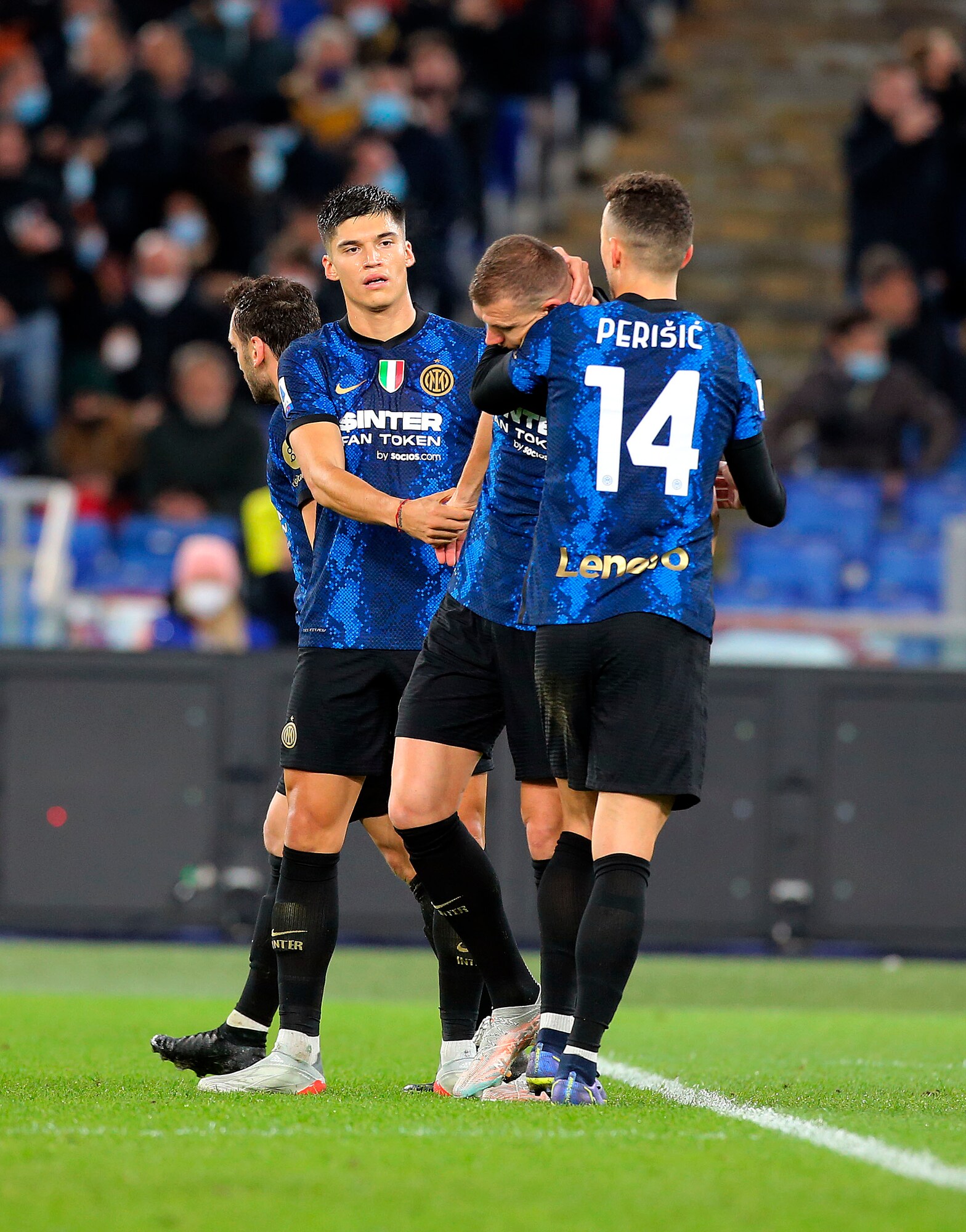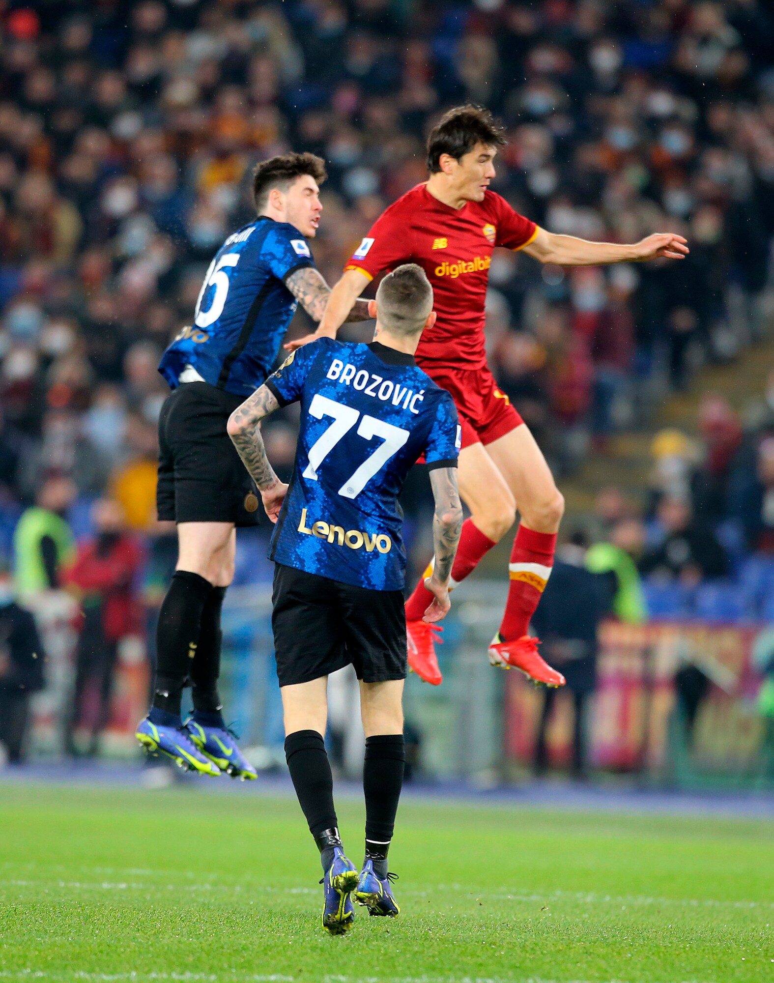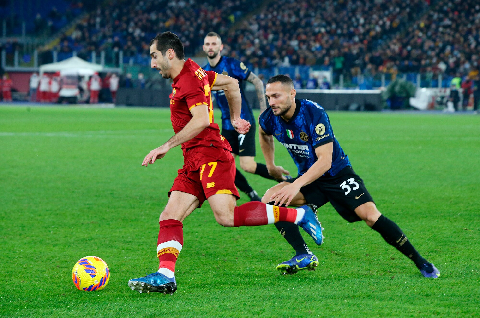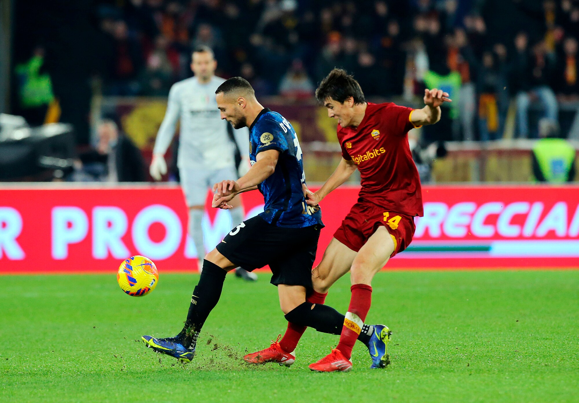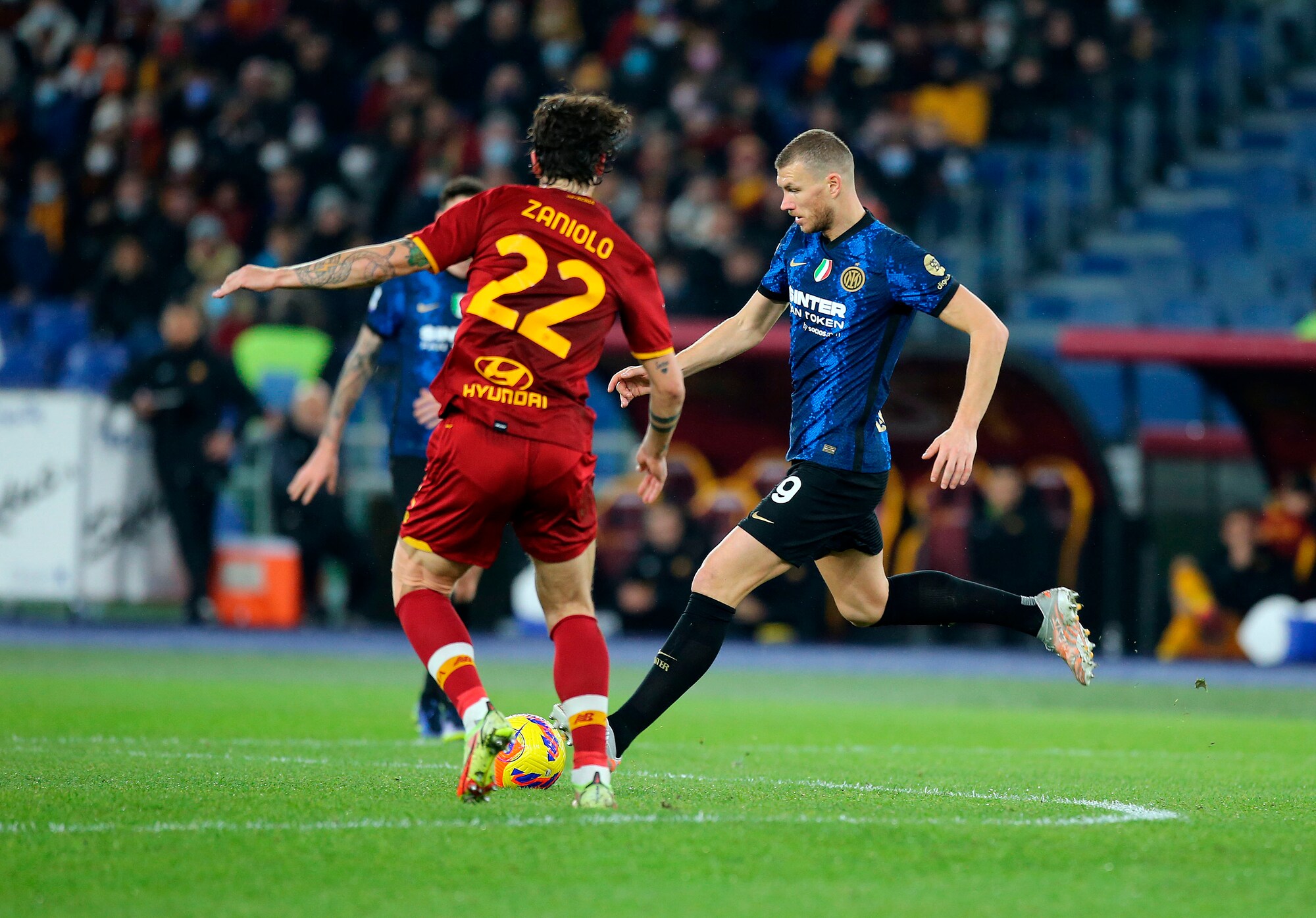 I nerazzurri vincono 3-0 in casa dei giallorossi: a segno Calhanoglu, il bosniaco e Dumfries