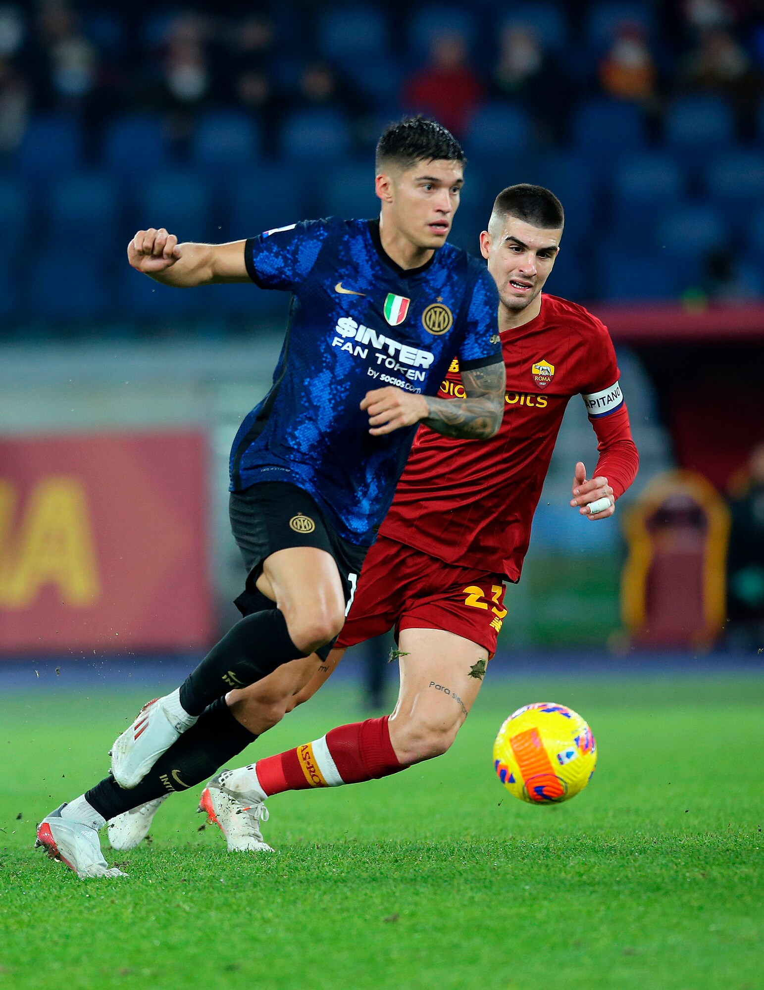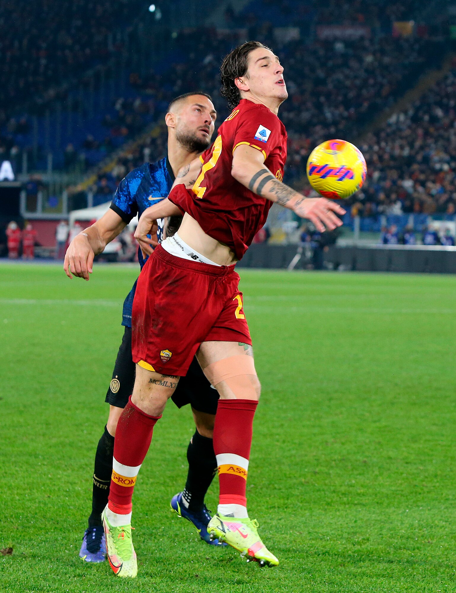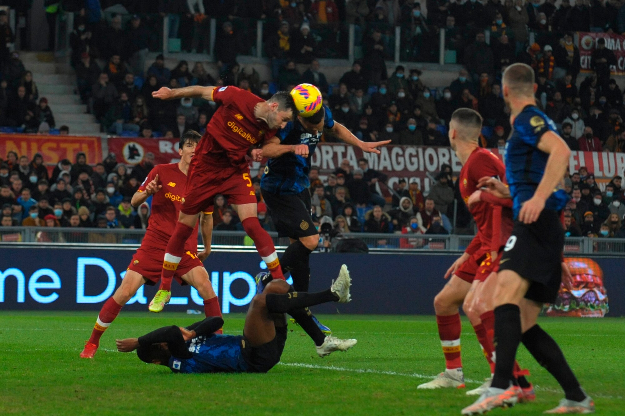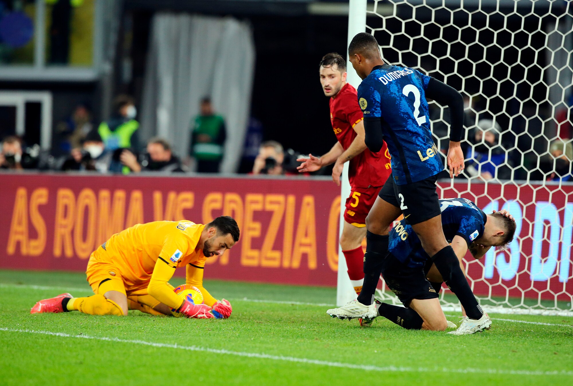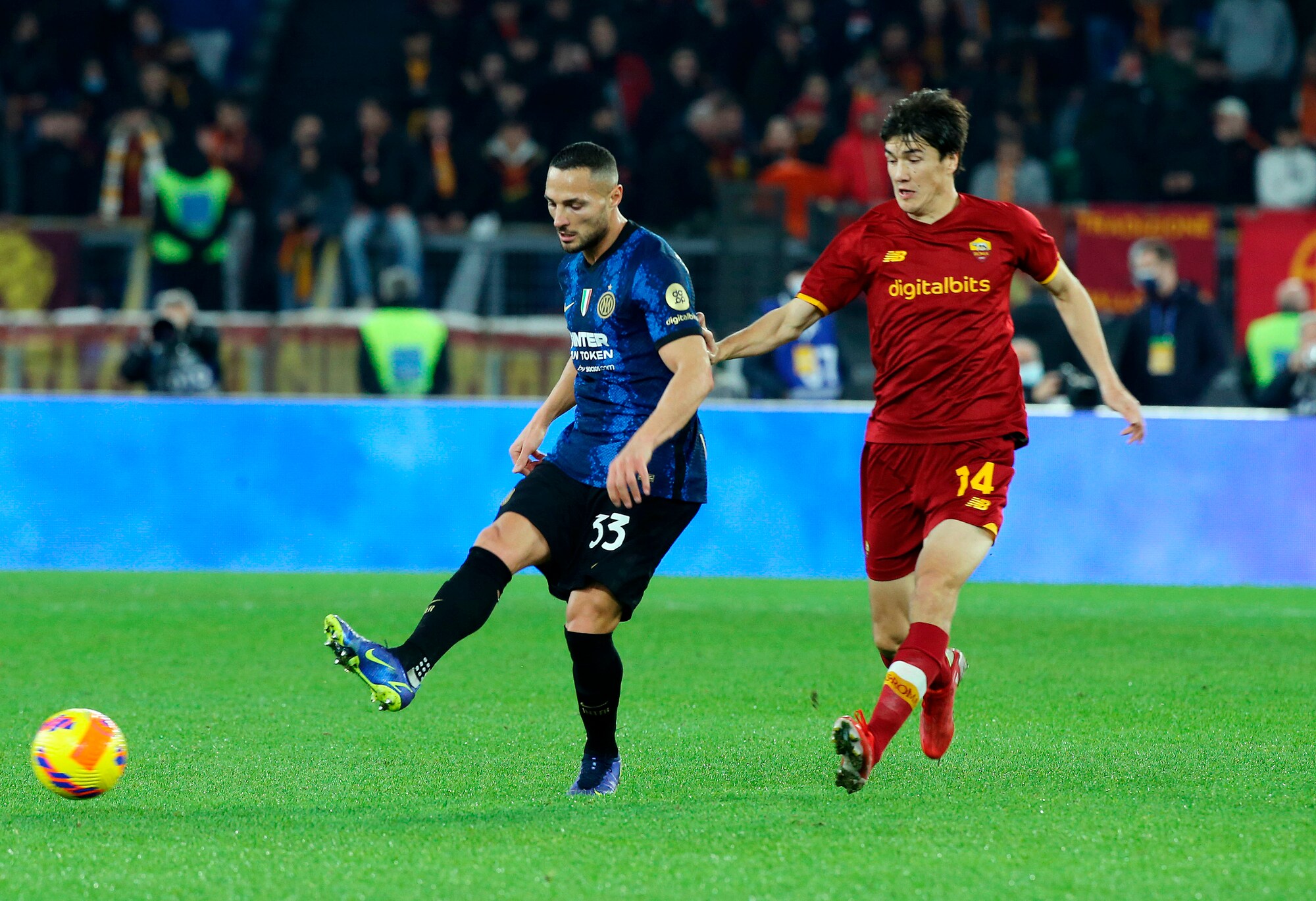 I nerazzurri vincono 3-0 in casa dei giallorossi: a segno Calhanoglu, il bosniaco e Dumfries