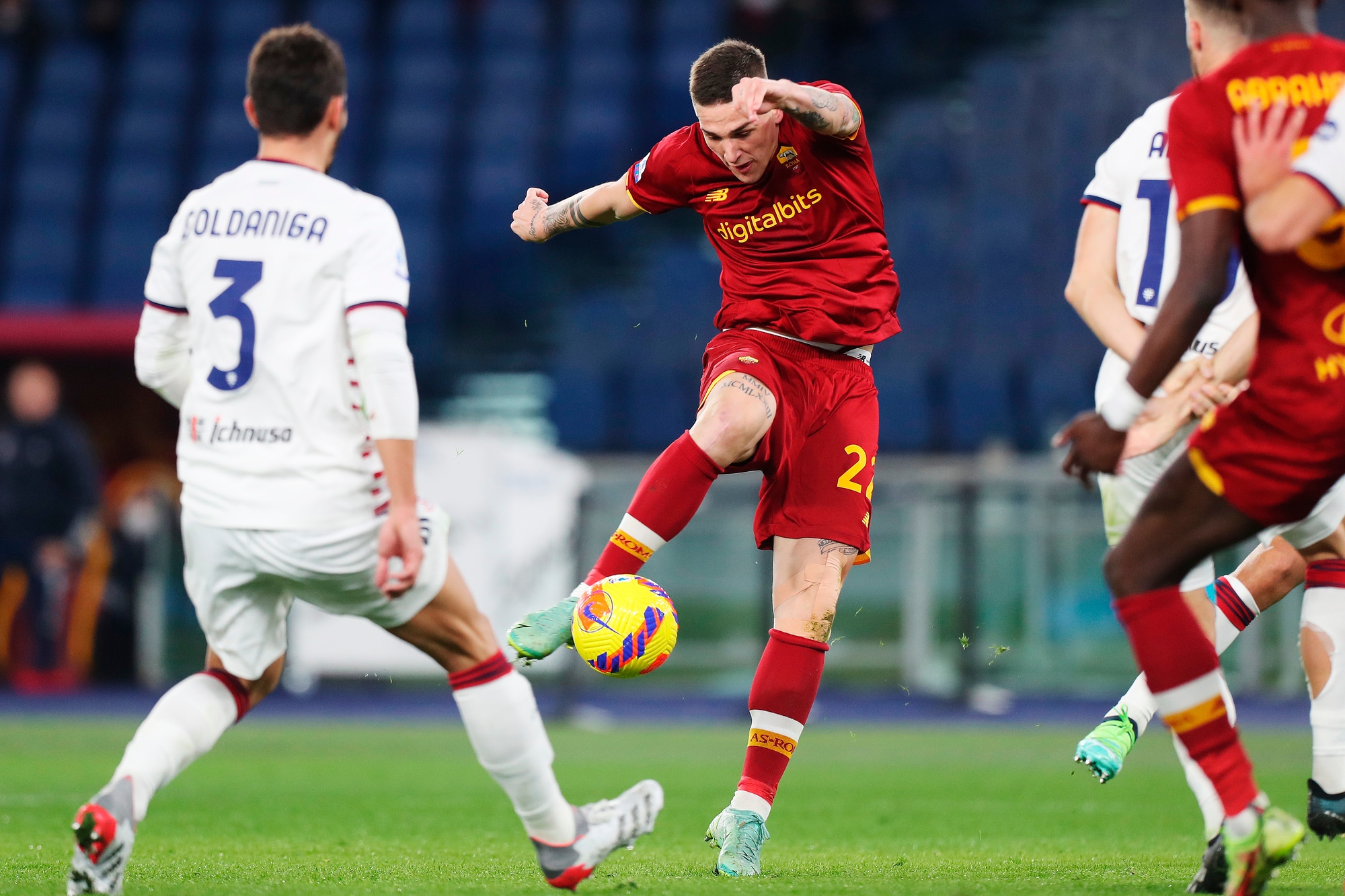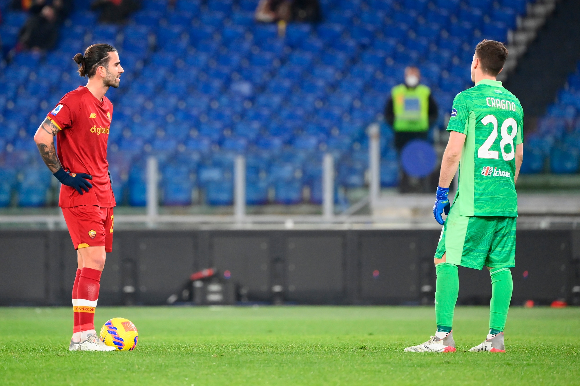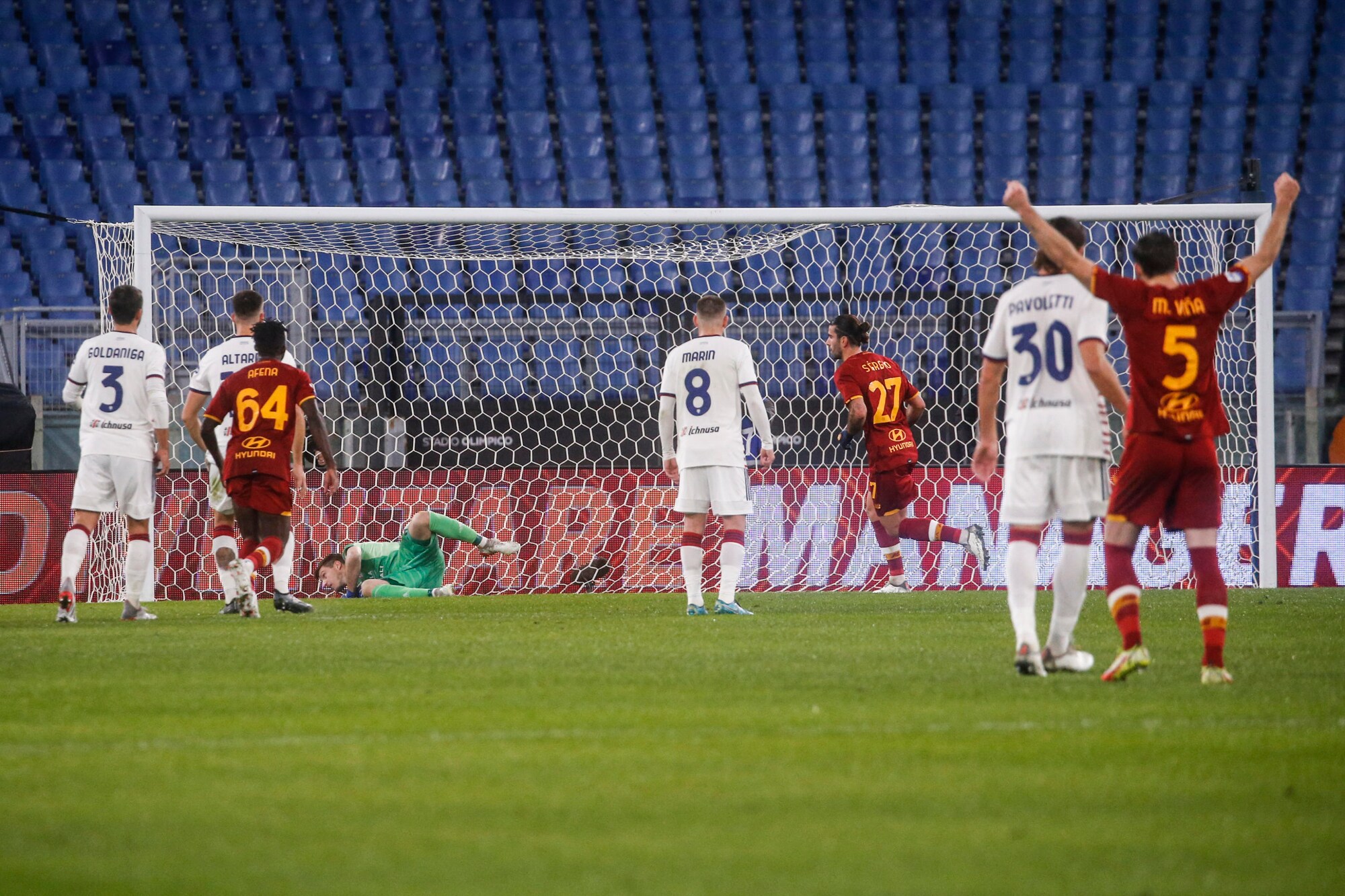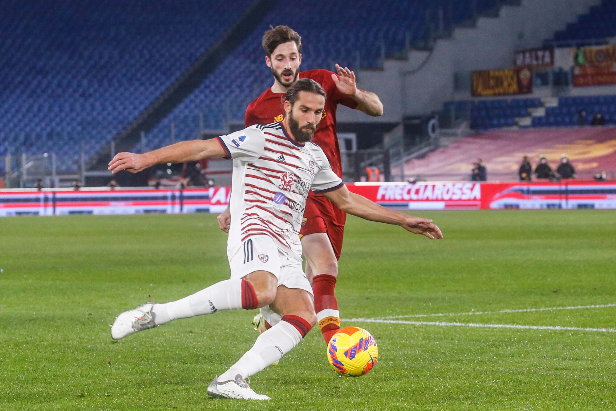 Dopo due vittorie consecutive, i rossoblù cadono nella Capitale, puniti dal calcio di rigore dell'ex Porto al 33'. Nel finale Rui Patricio e la traversa negano il pari a Joao Pedro, contro la Fiorentina out anche Carboni e Pavoletti