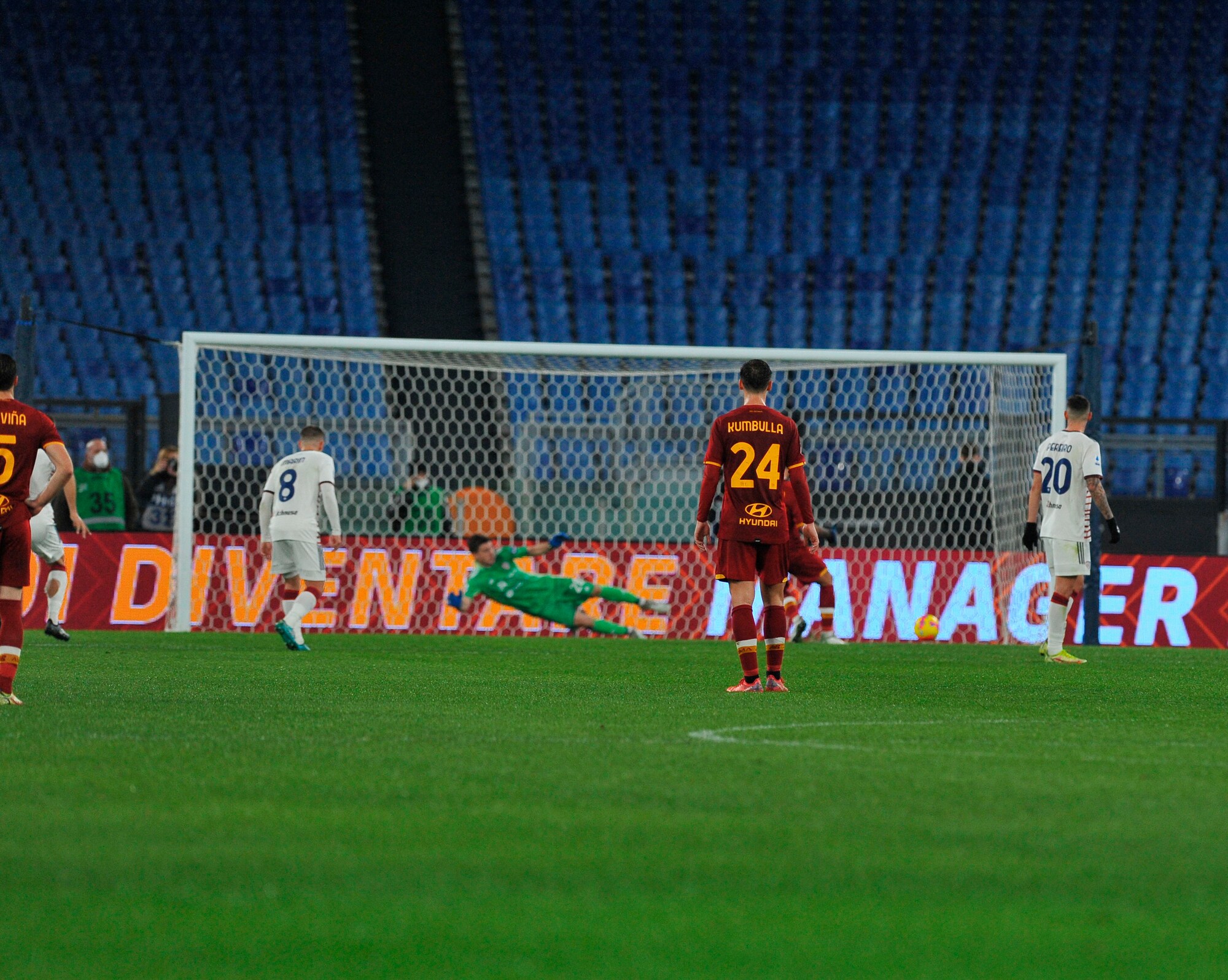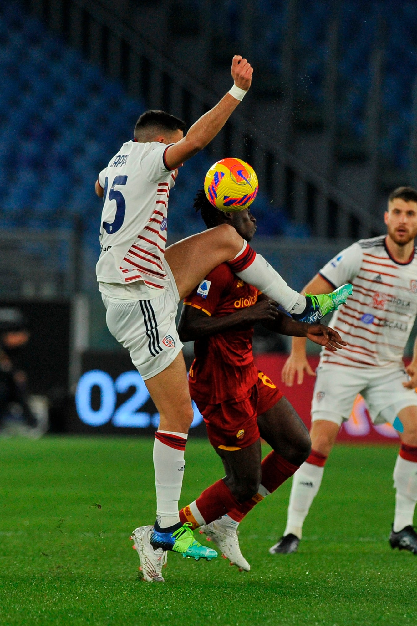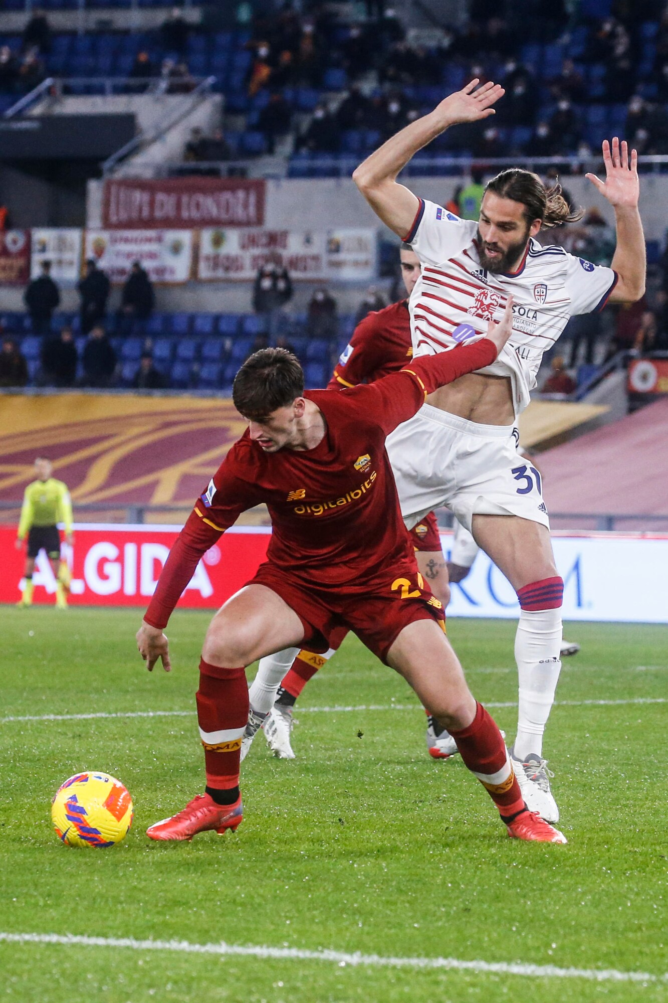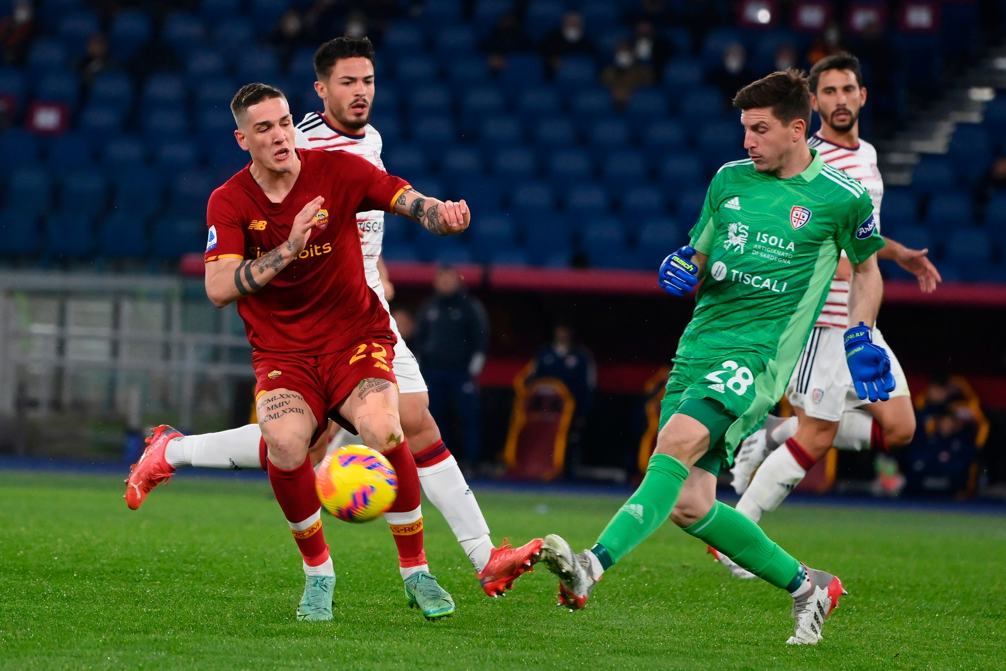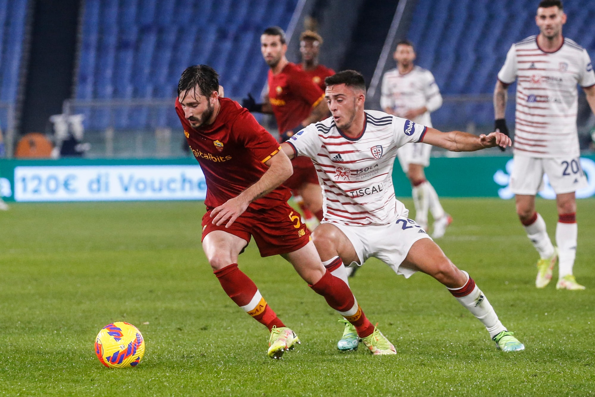 Dopo due vittorie consecutive, i rossoblù cadono nella Capitale, puniti dal calcio di rigore dell'ex Porto al 33'. Nel finale Rui Patricio e la traversa negano il pari a Joao Pedro, contro la Fiorentina out anche Carboni e Pavoletti