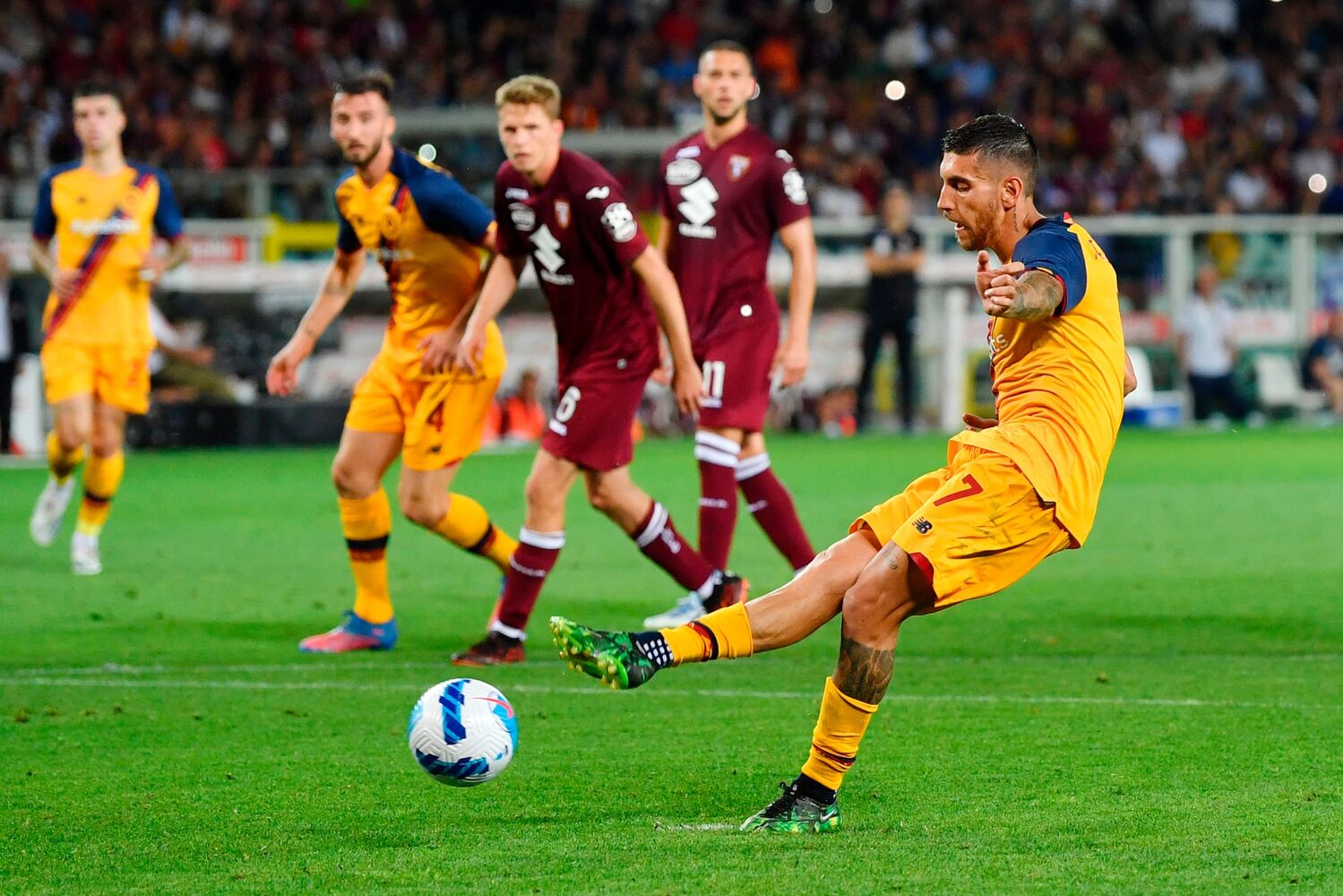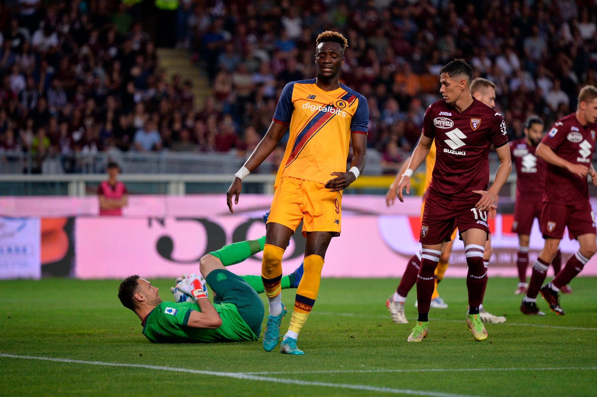 Due errori in fase di costruzione dei granata spalancano le porte del gol ai giallorossi, che vincono 3-0 con doppietta di Abraham e rete di Pellegrini