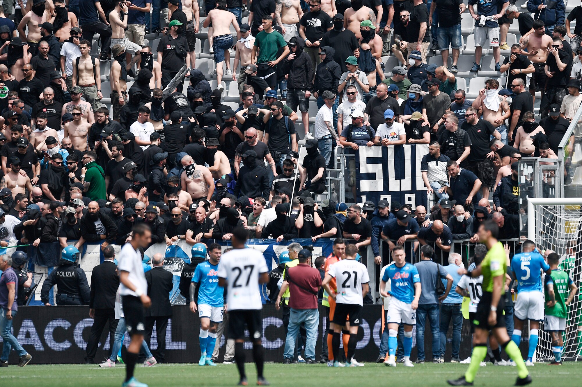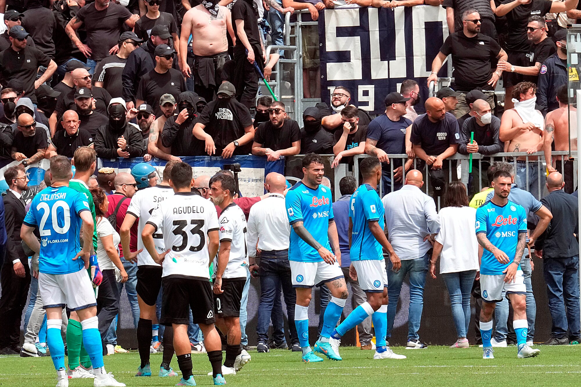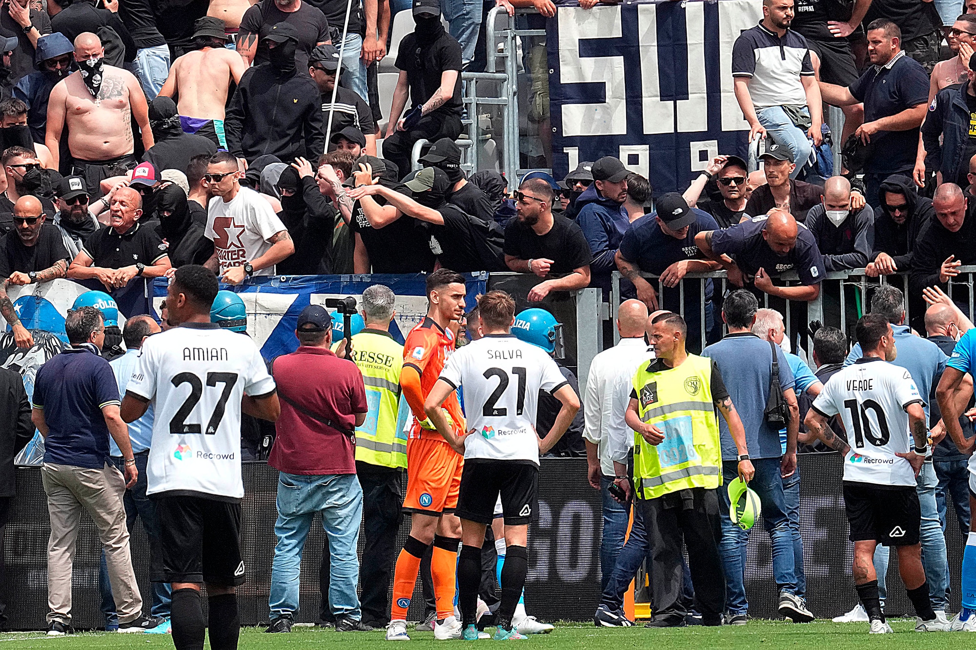 Spezia-Napoli, scontri tra tifosi al Picco: match sospeso per oltre 10'