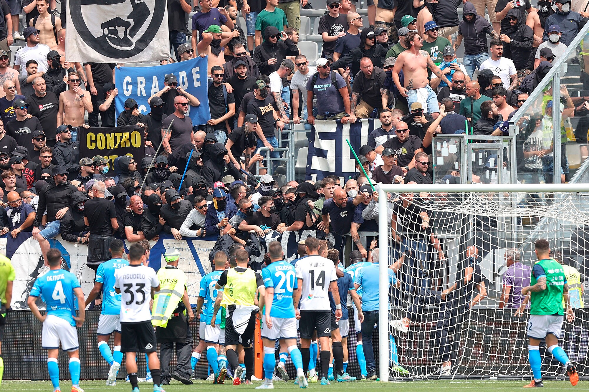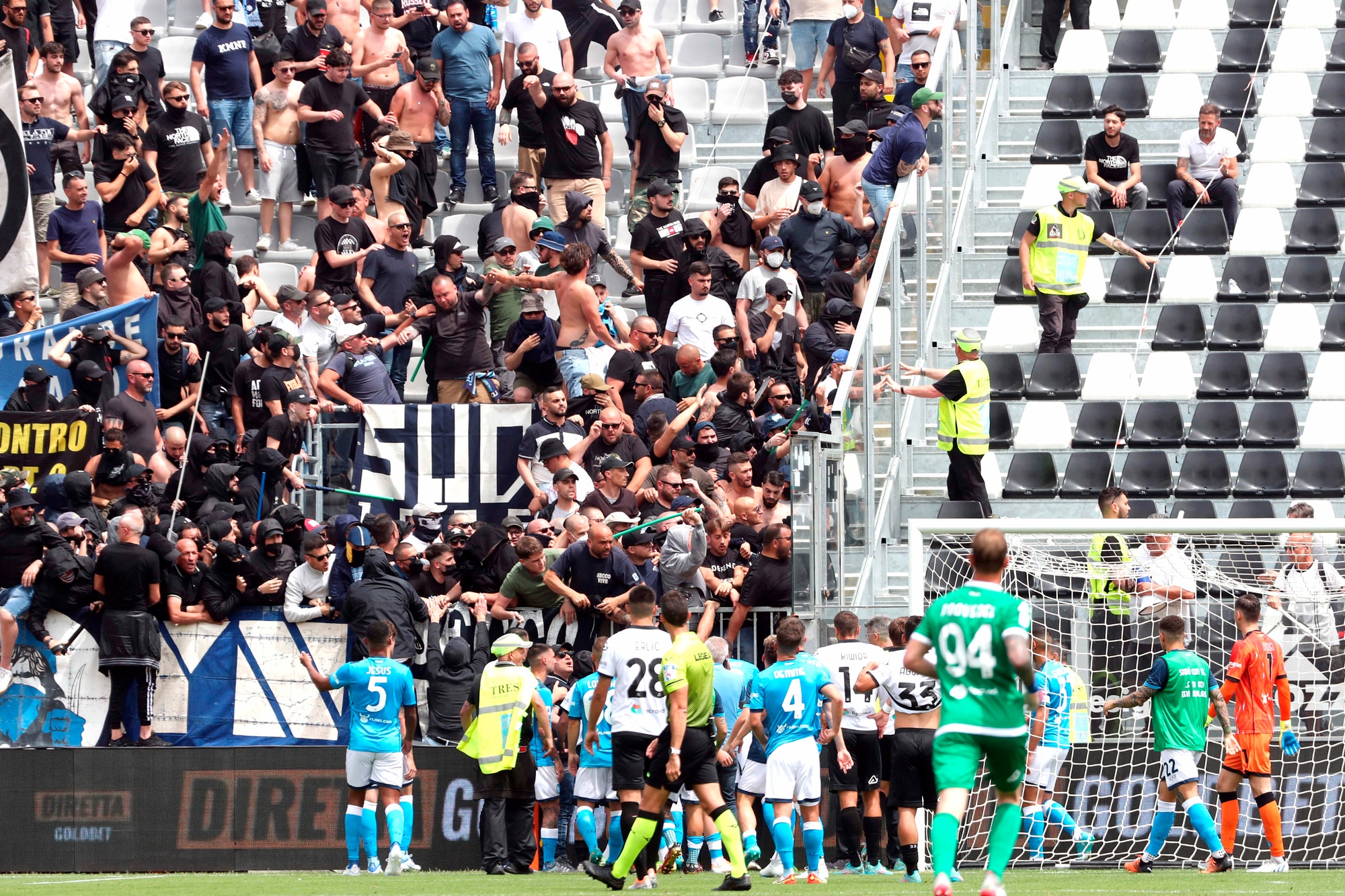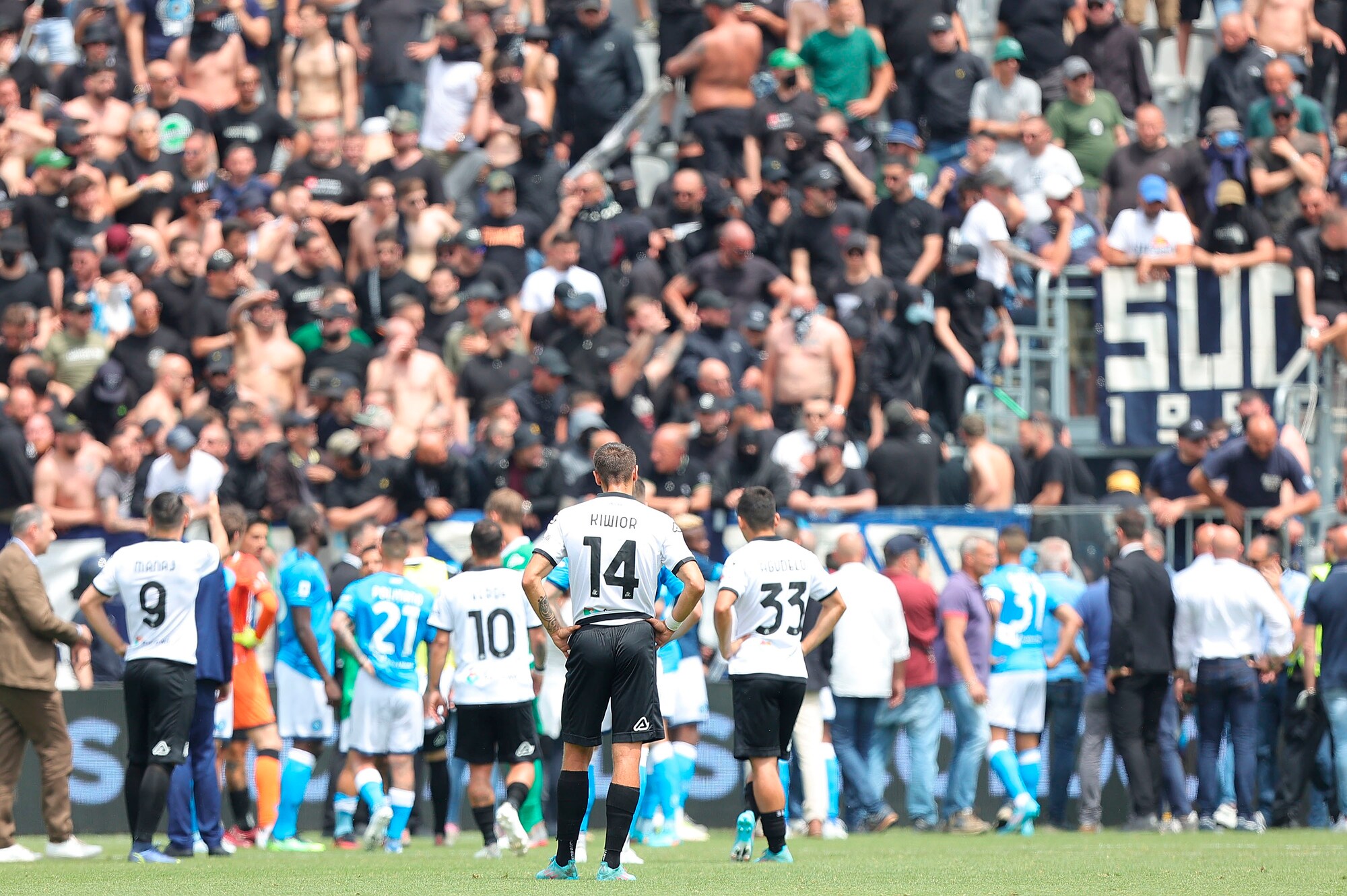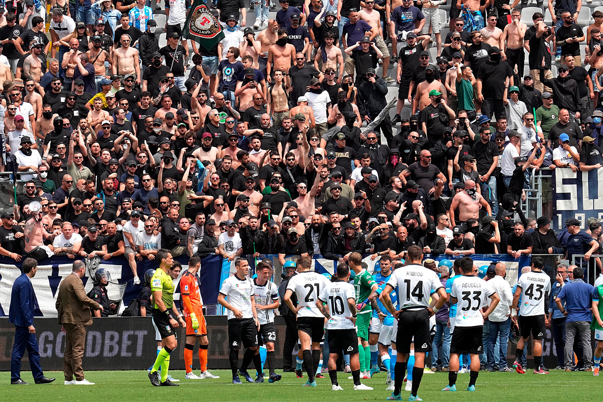 Spezia-Napoli, scontri tra tifosi al Picco: match sospeso per oltre 10'