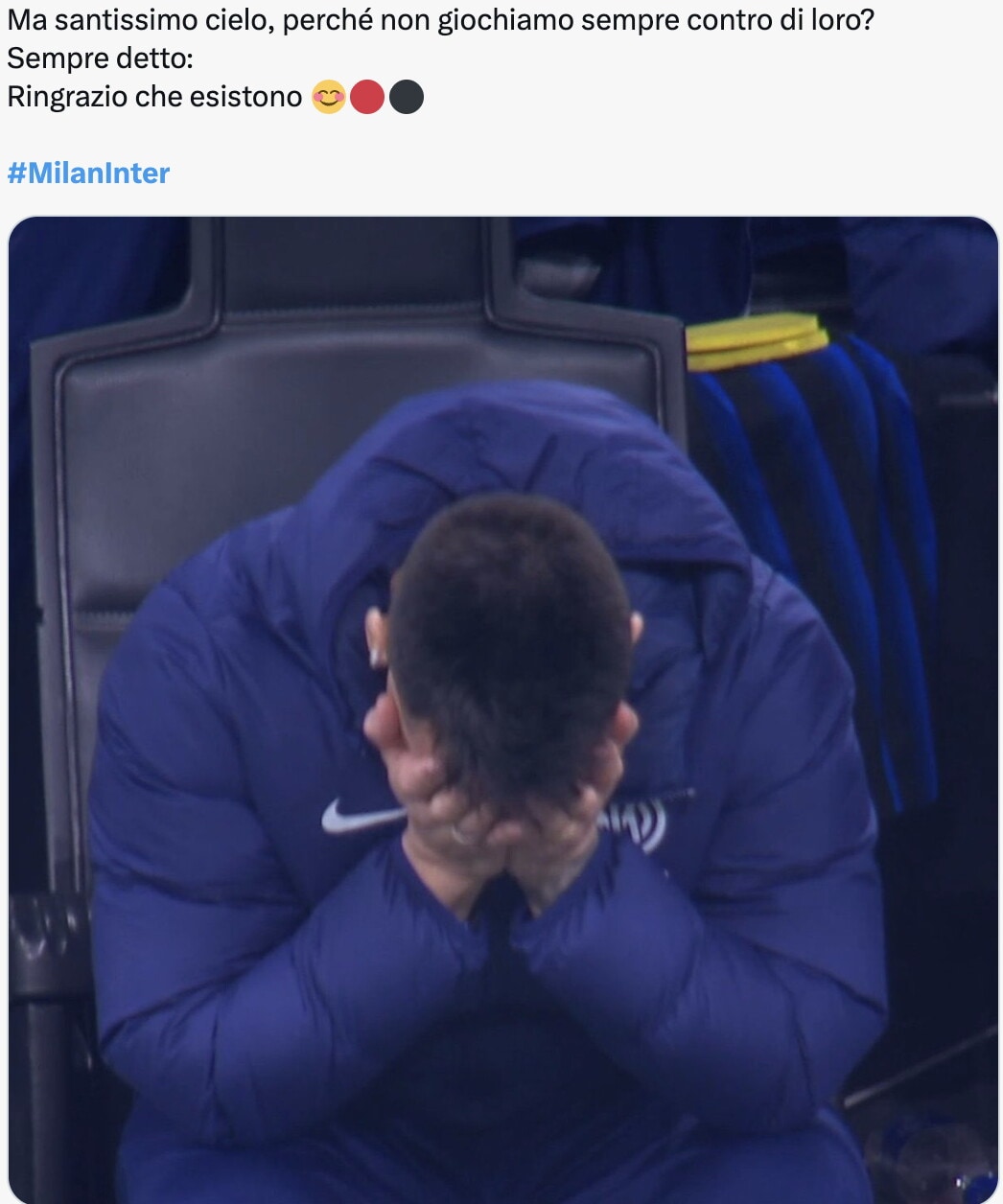 "Ora piango io", "Bastoni esulta adesso": Milan-Inter, le ironie social non si fermano