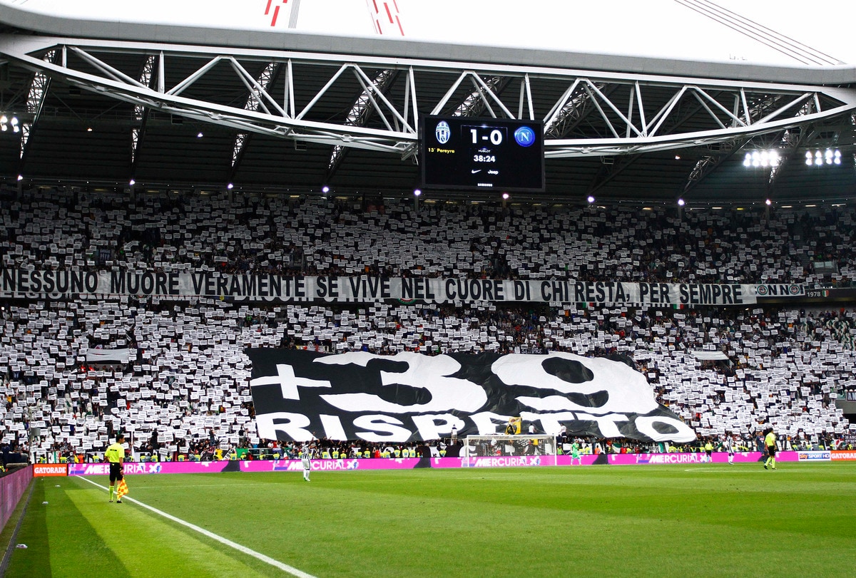 Il ricordo, esposto al 39', per le 39 vittime dell'Heysel, di cui il 29 maggio ricorre il trentennale