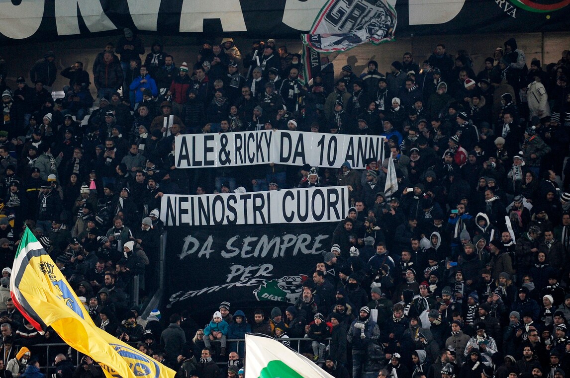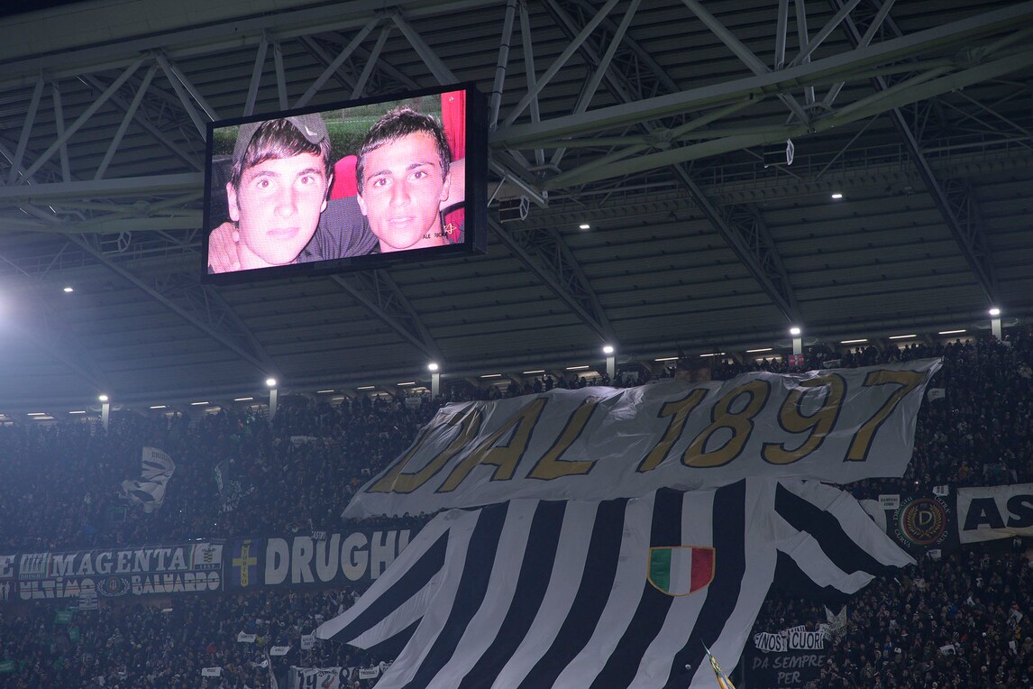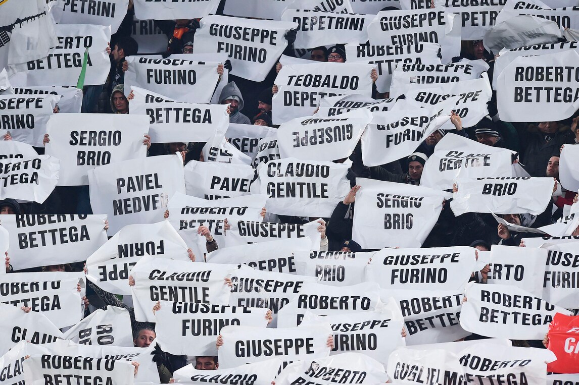 La maglia bianconera con lo scudetto cucito sul petto e la scritta 1897: sui cartoncini i nomi di chi ha fatto la storia del club. C'è anche il ricordo di Ale&Ricky: «Da dieci anni nei nostri cuori»