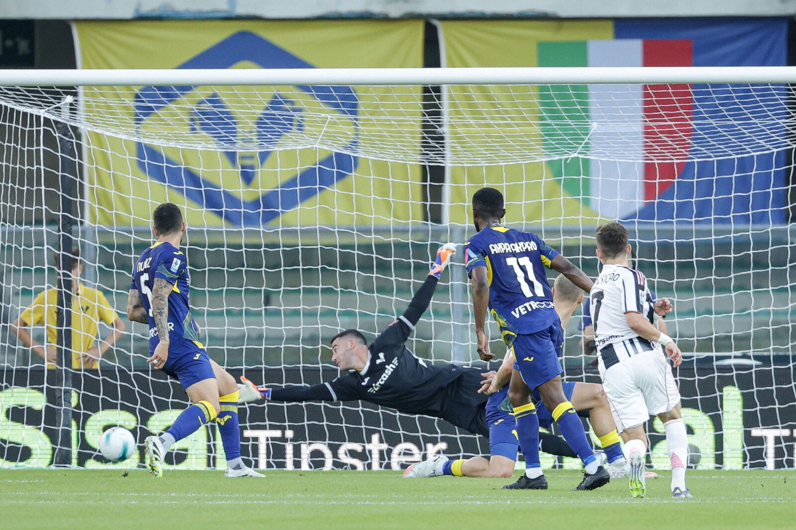 La rete del portoghese che sblocca il match al Bentegodi, con il momentaneo 1-0 in favore dei bianconeri
