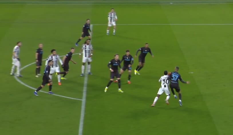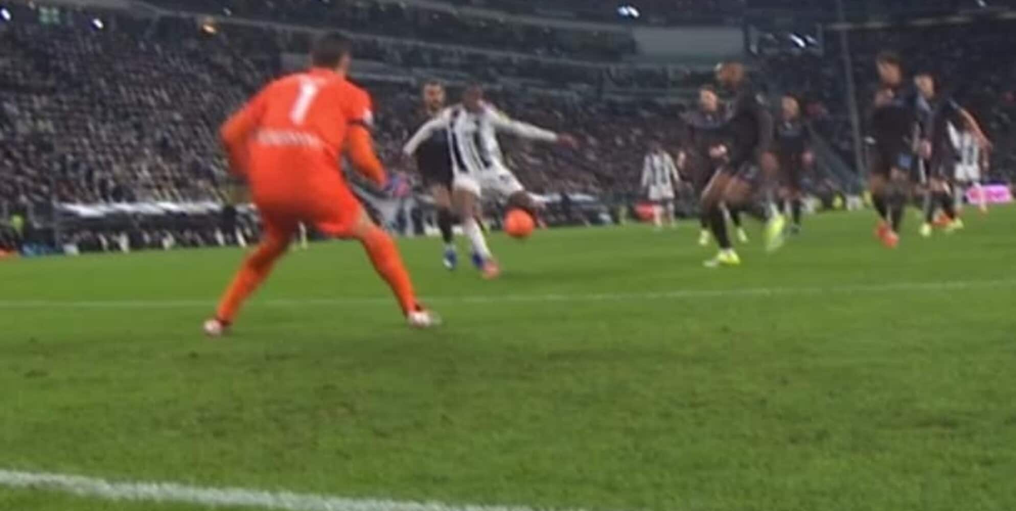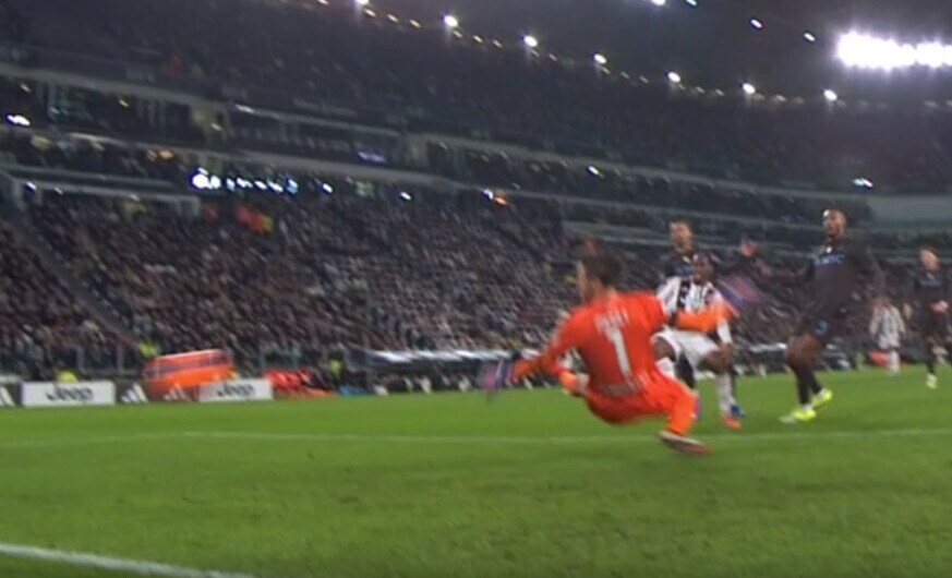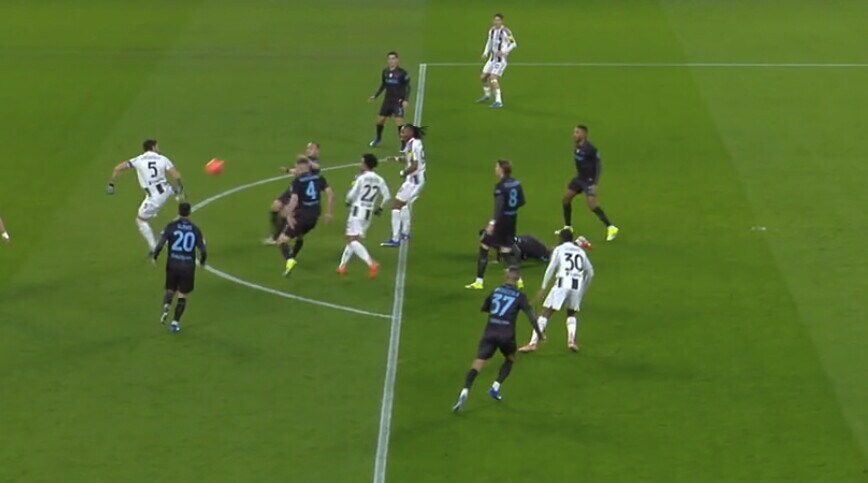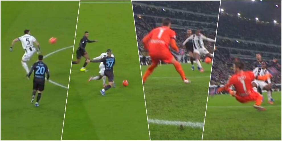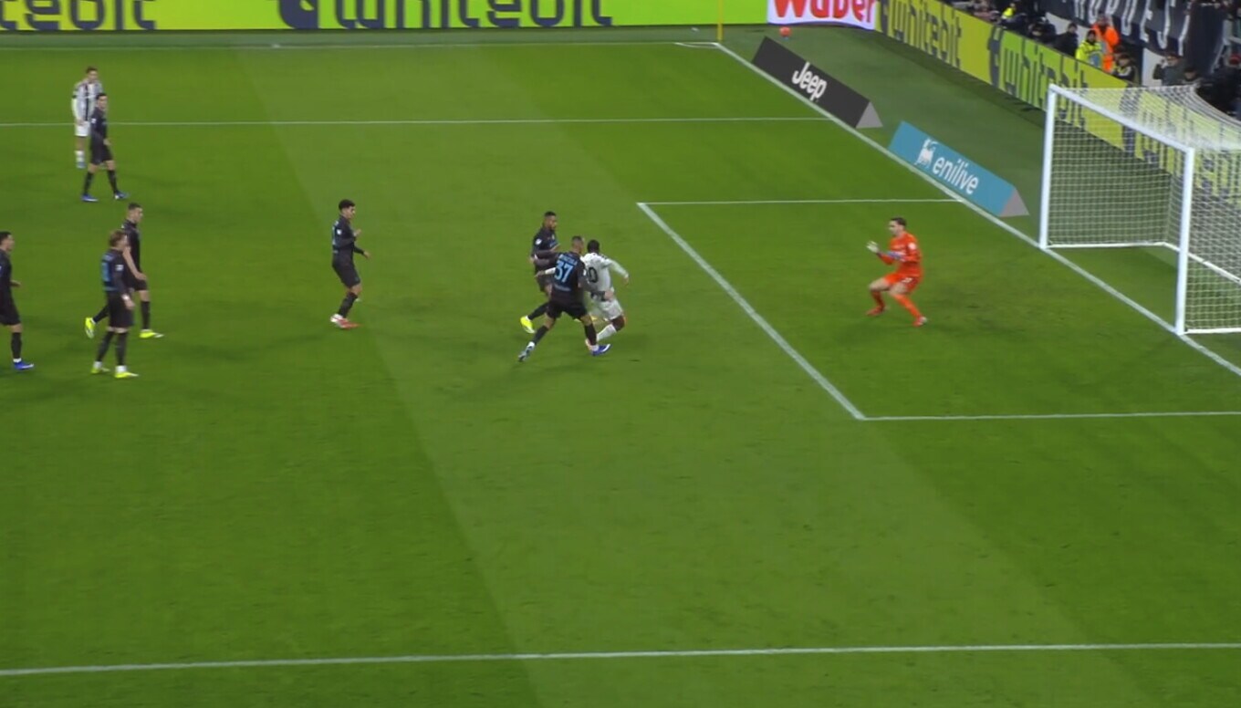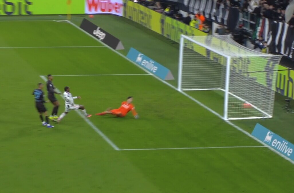 Il centravanti bianconero apre le marcature sfruttando l'assist pennellato d'esterno al volo del compagno di squadra