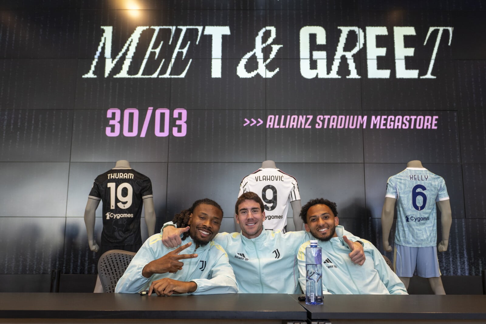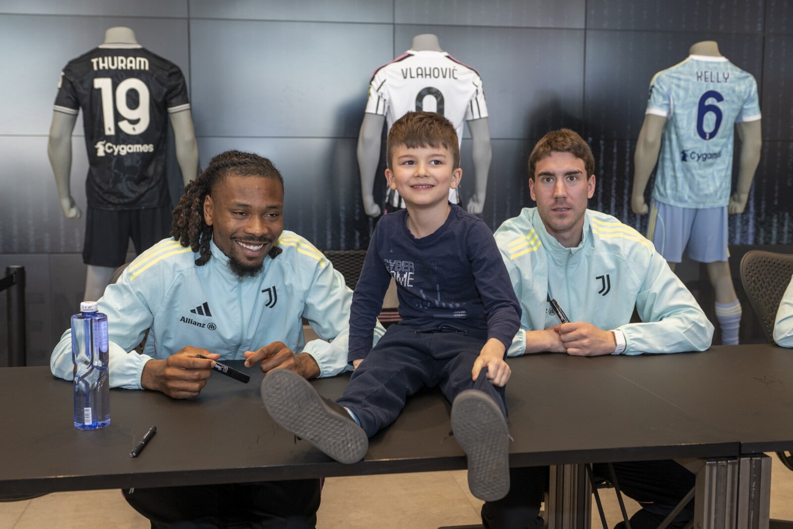 Vlahovic, Thuram e Kelly incontrano i piccoli tifosi Juve