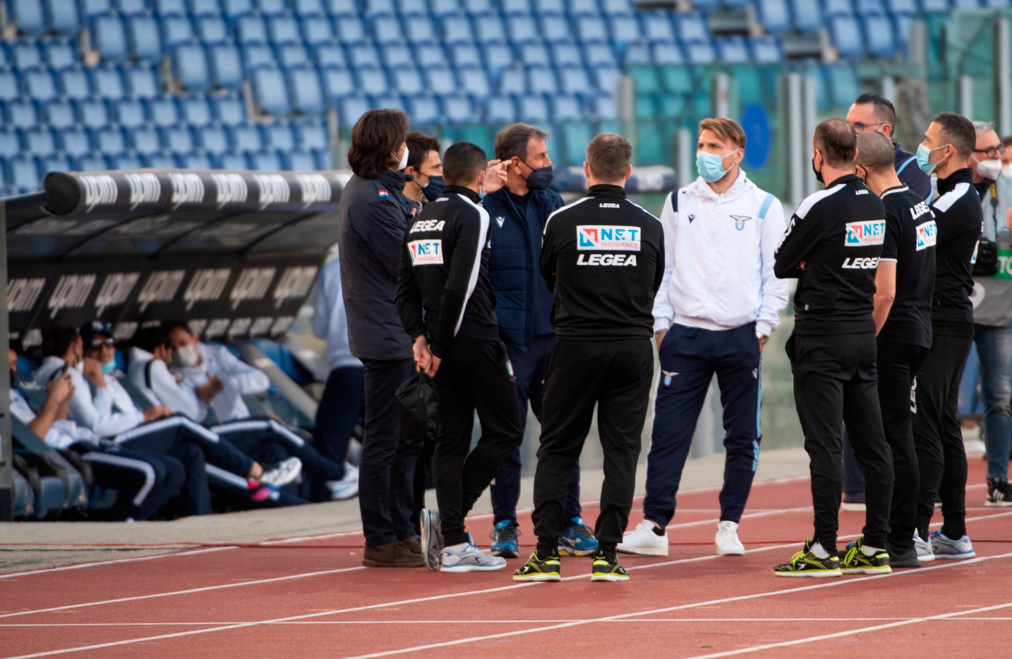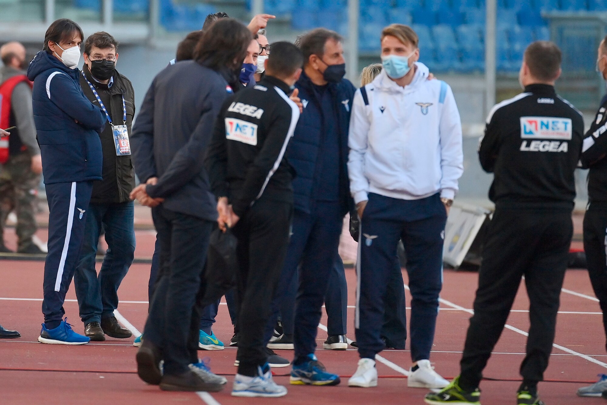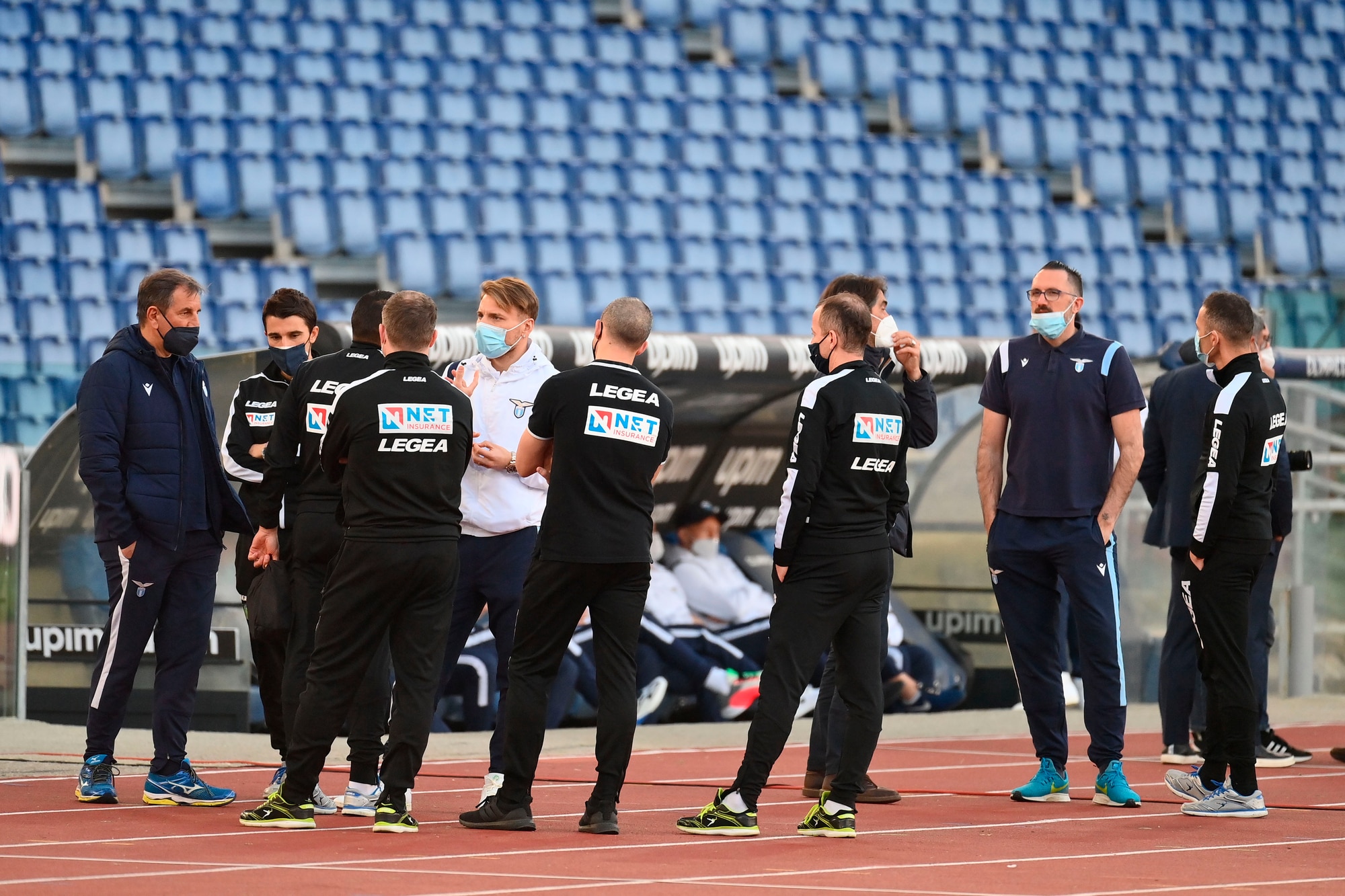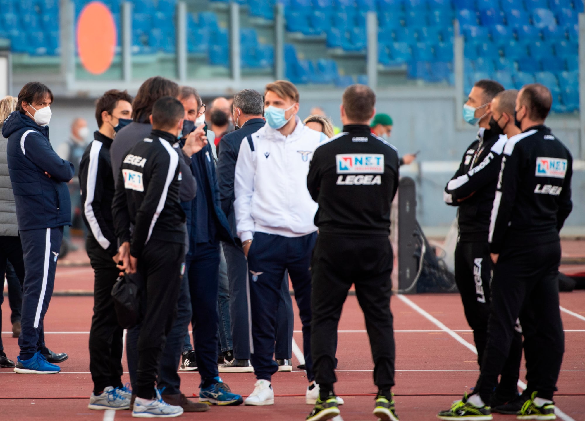 L'attesa dei biancocelesti e degli arbitri all'Olimpico prima di decretare ufficialmente non giocata la partita con i granata