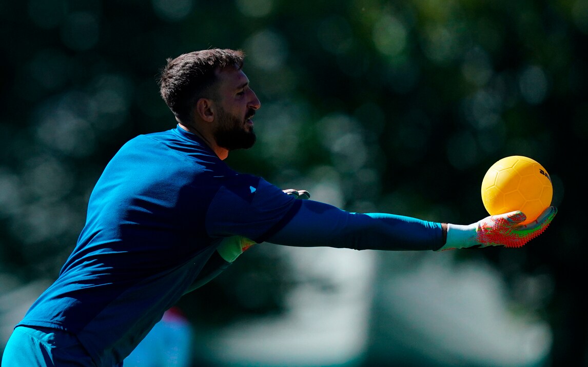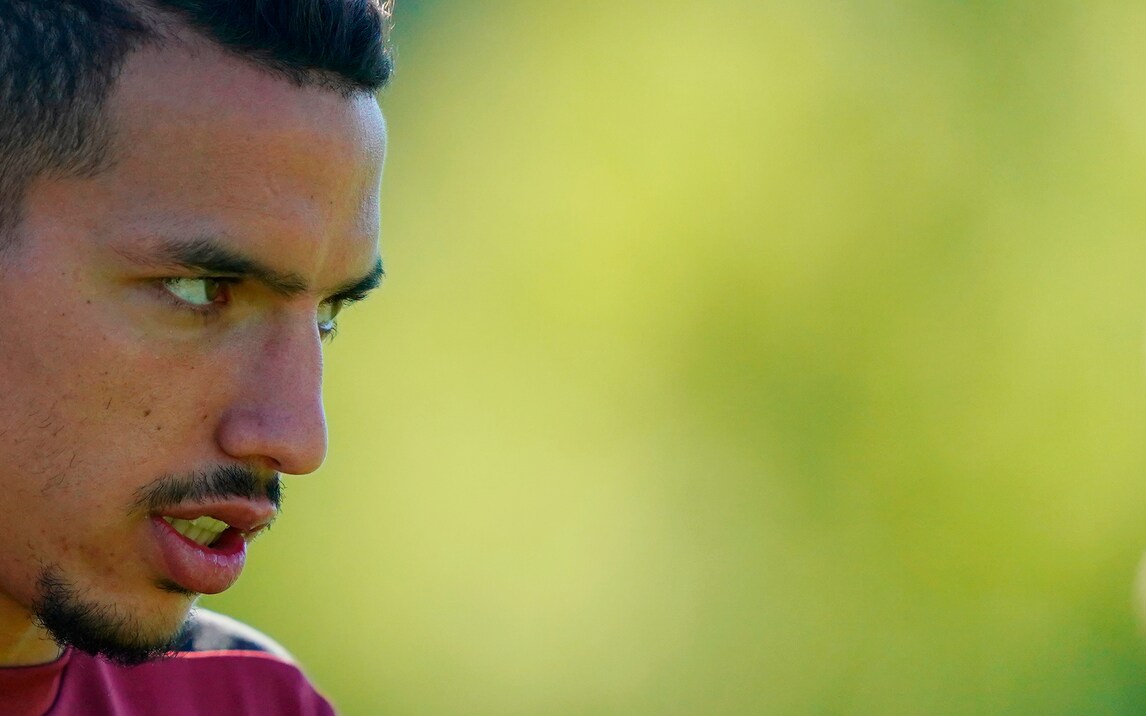 La concentrazione dell'attaccante svedese mentre si allena in vista dell'inizio del campionato