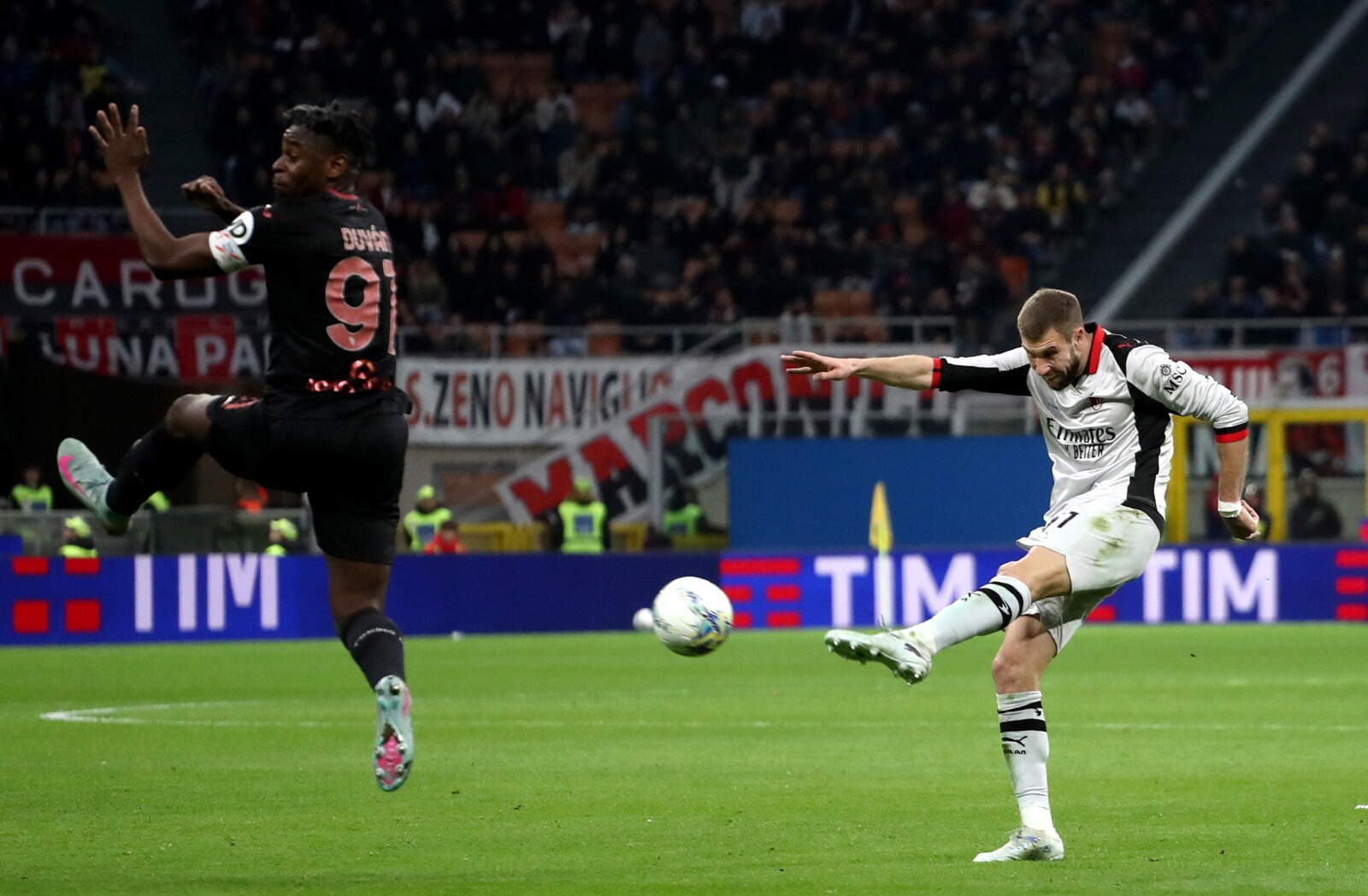 Il serbo calcia al volo dai 30 metri, trovando una traiettoria incredibile che porta avanti i rossoneri