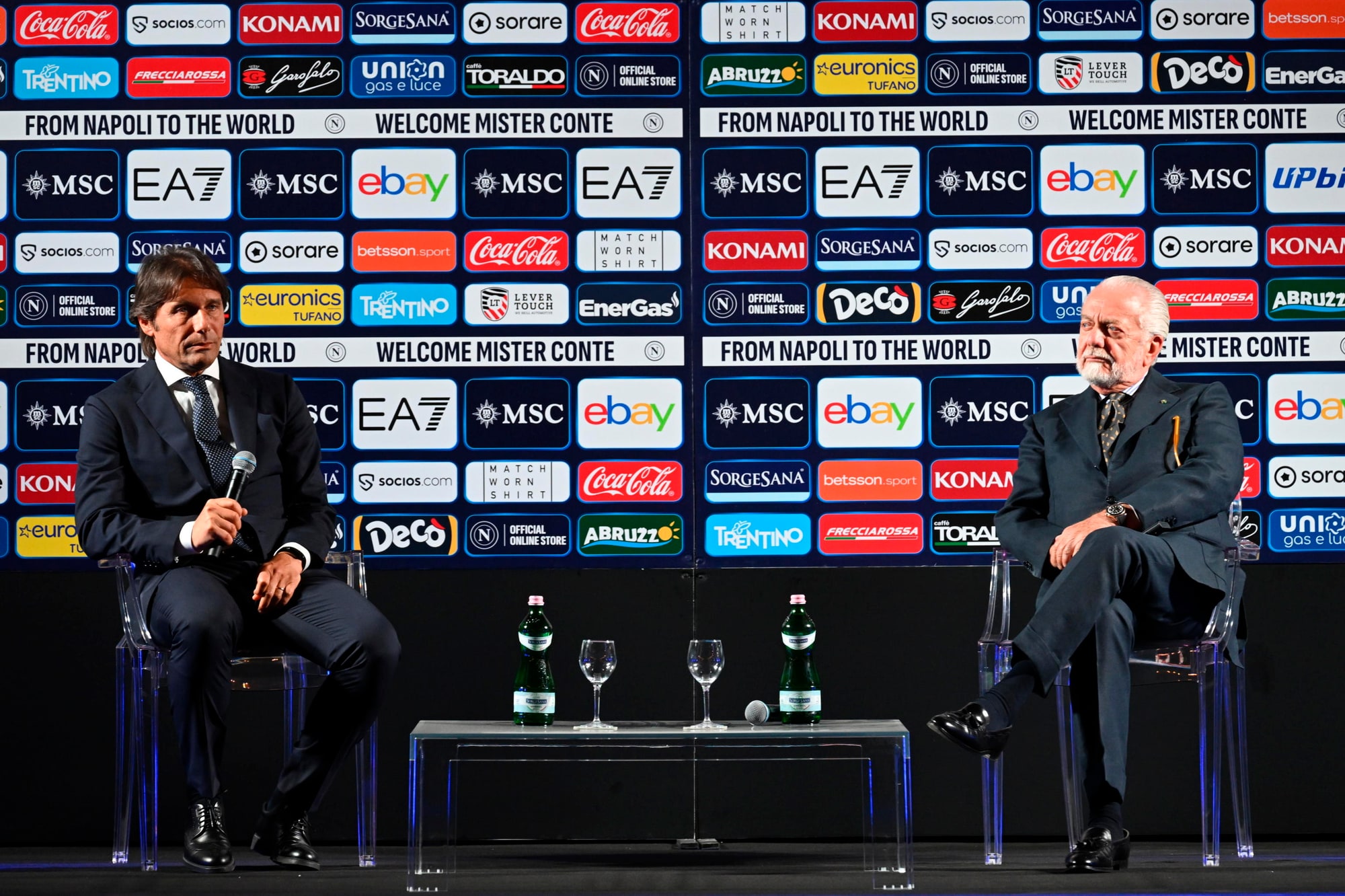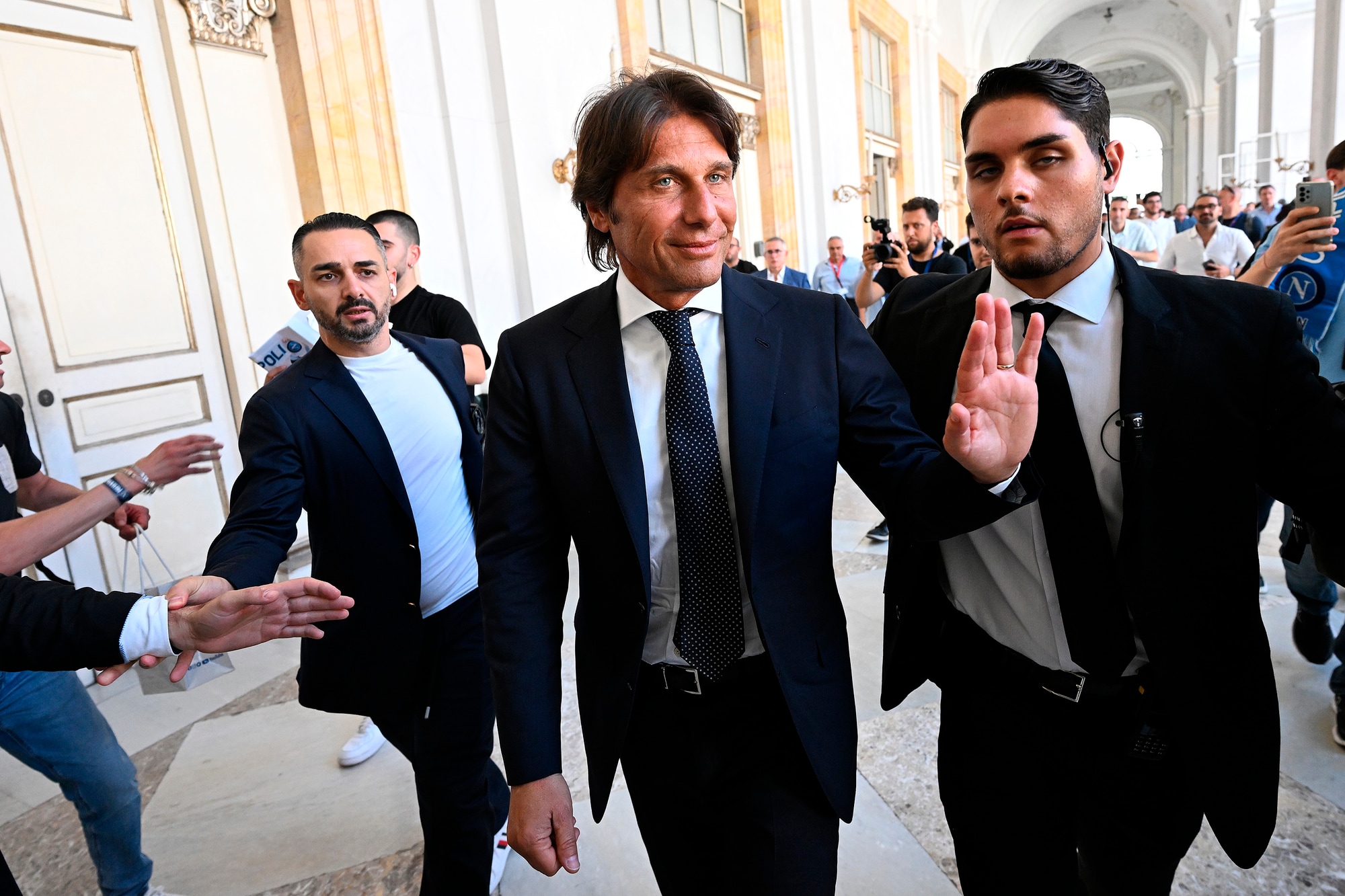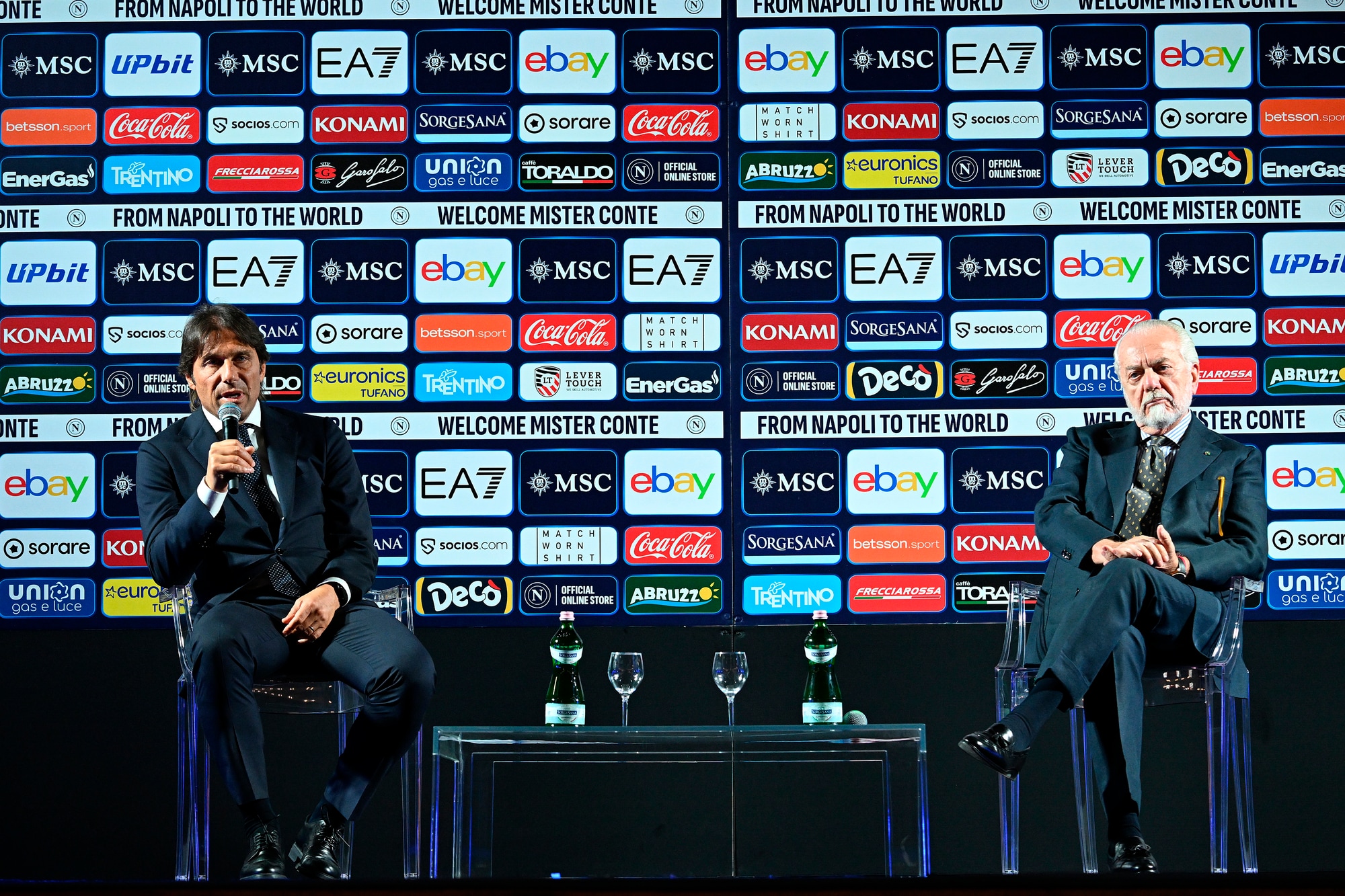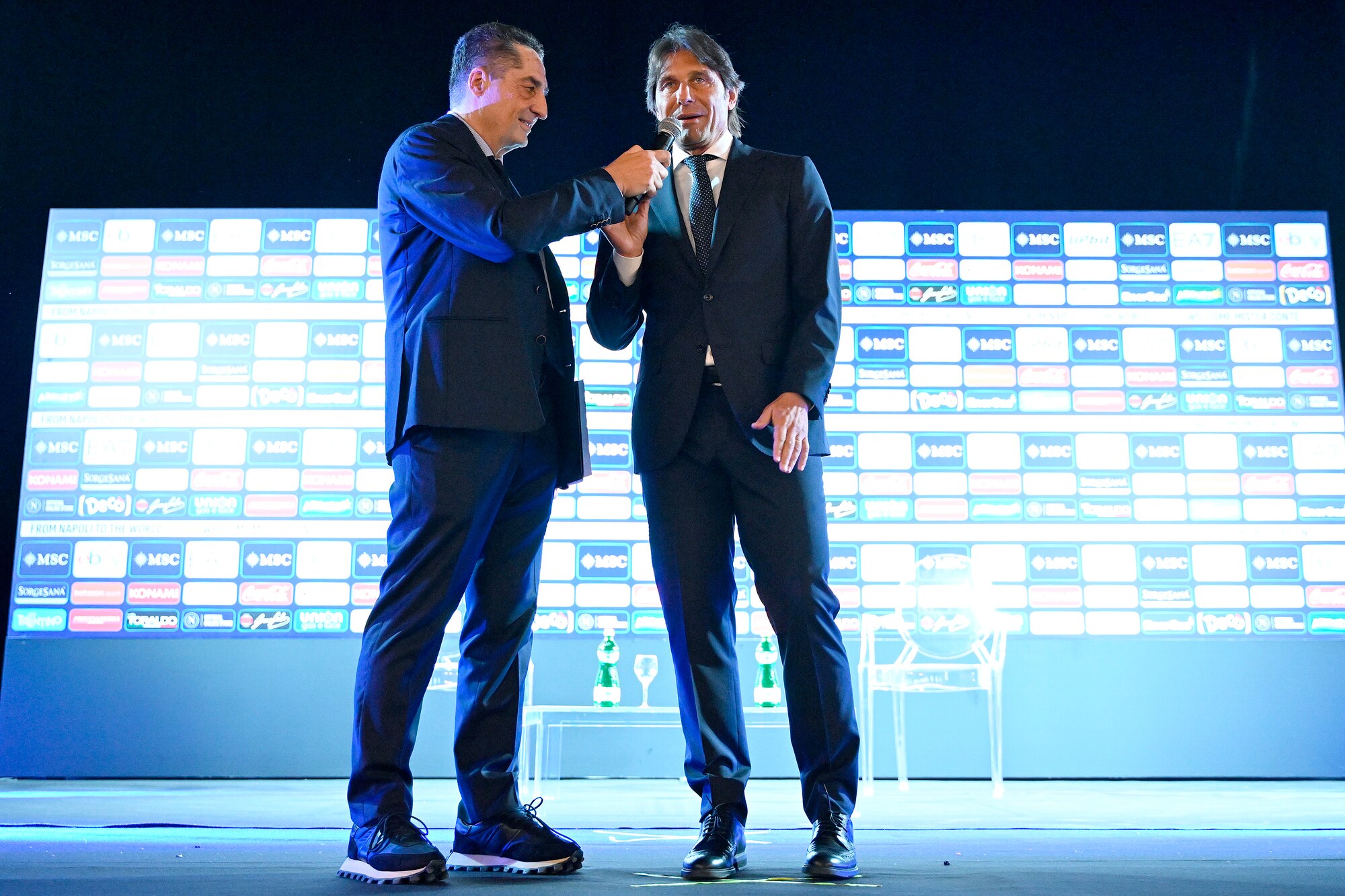 Il neo allenatore azzurro insieme al presidente del club al Palazzo Reale per la prima conferenza stampa ufficiale